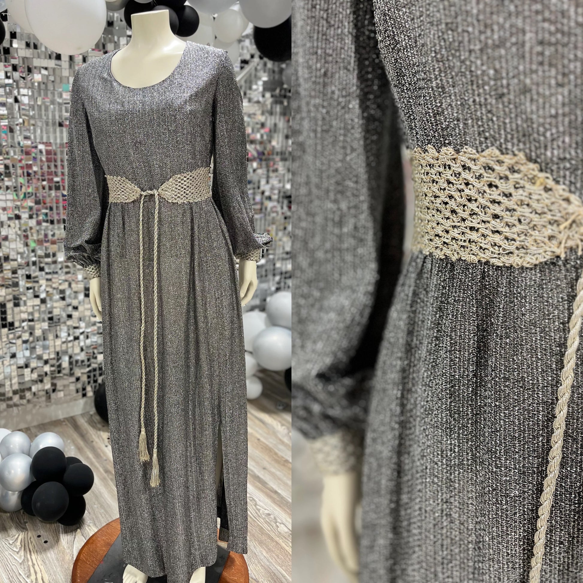 60s Vintage Mod Silver Metallic Maxi Evening Party Maxi Dress