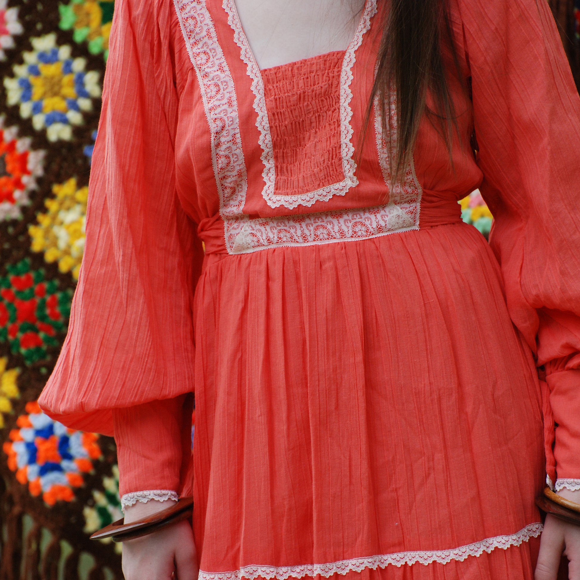 70s Gunne Sax Style Gauzy Jody T Lace Hippie Maxi Dress S