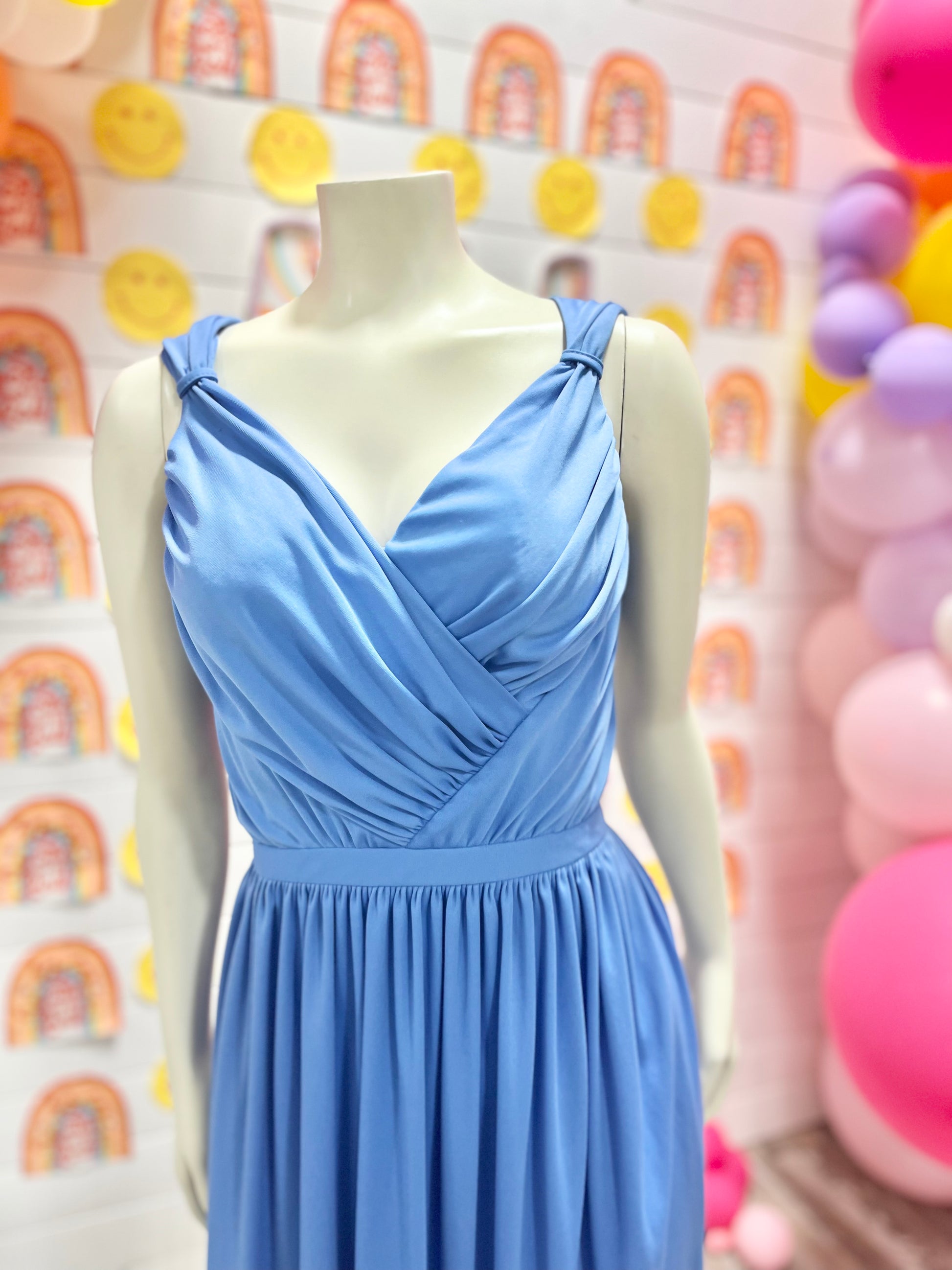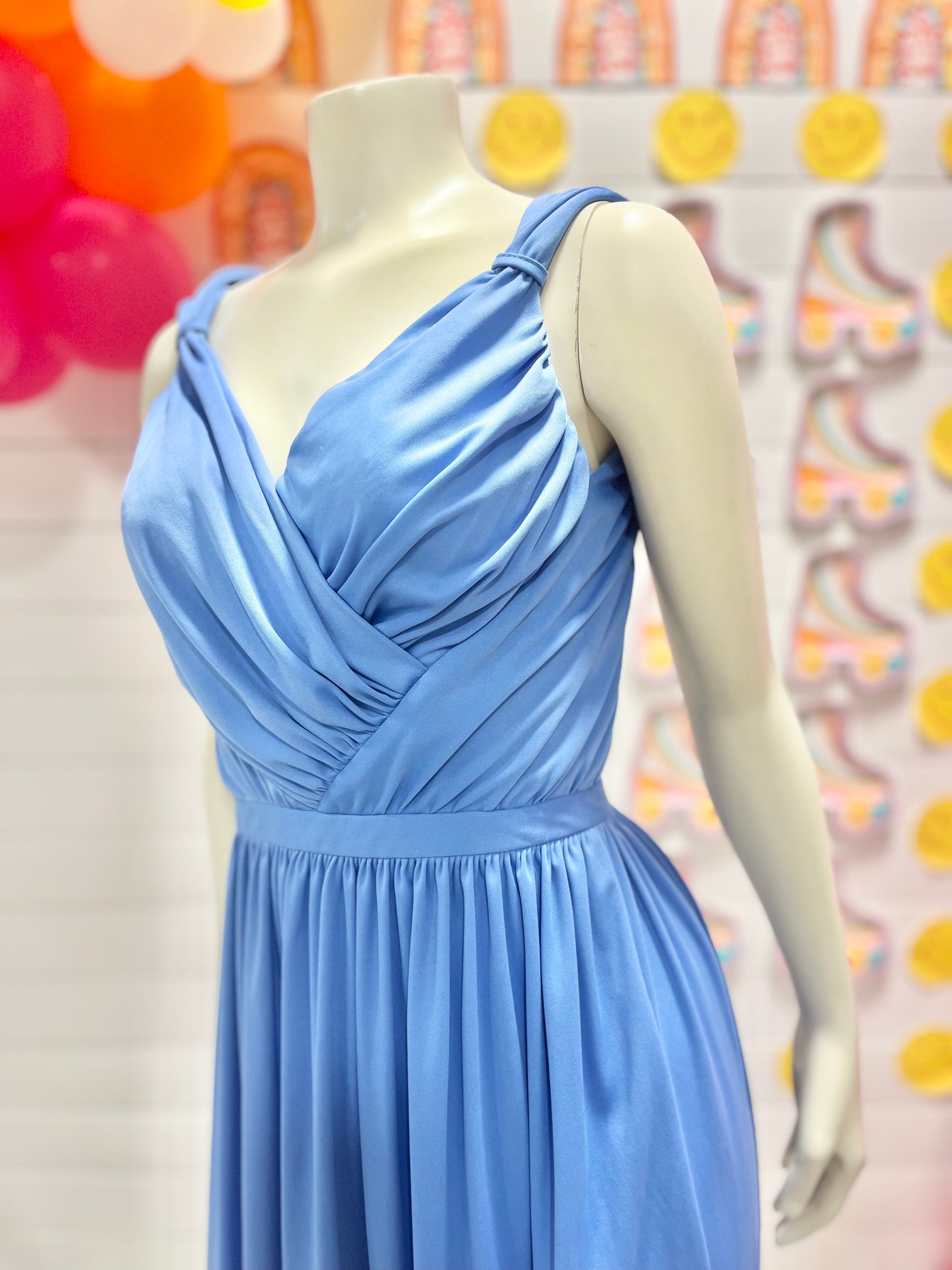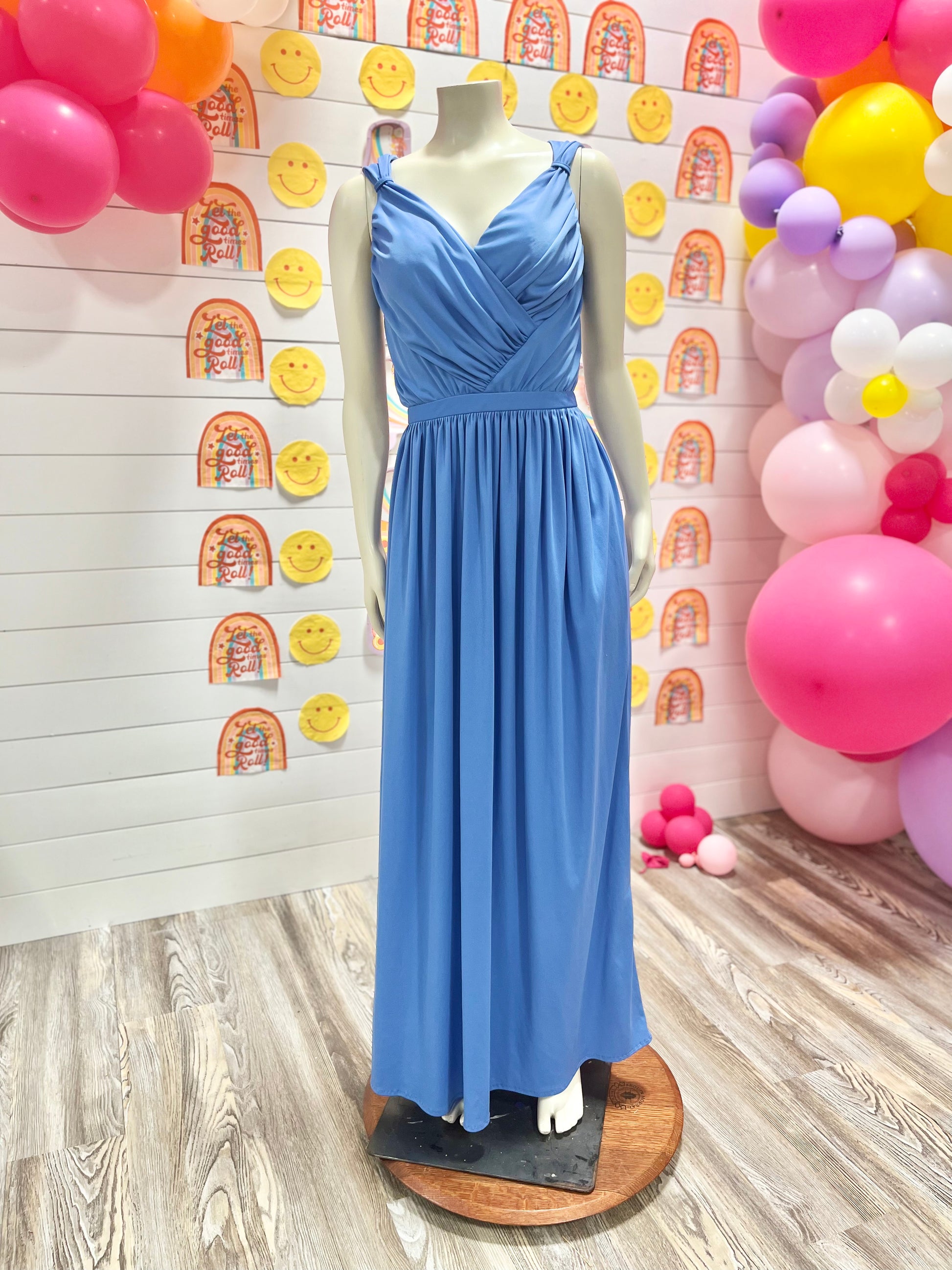 70s Blue Jack Hartley Evening Draped Vintage Open Back Maxi Dress XS