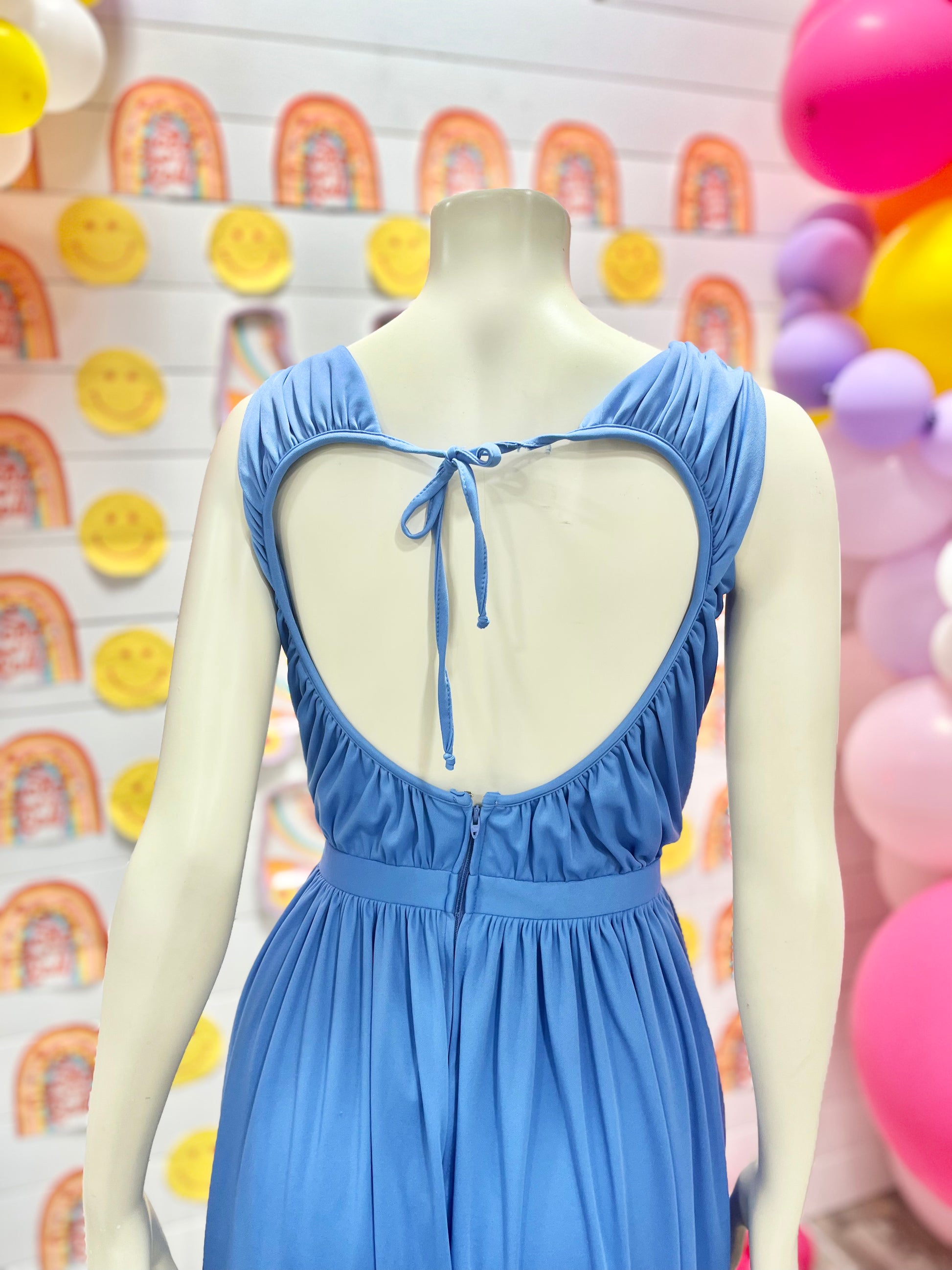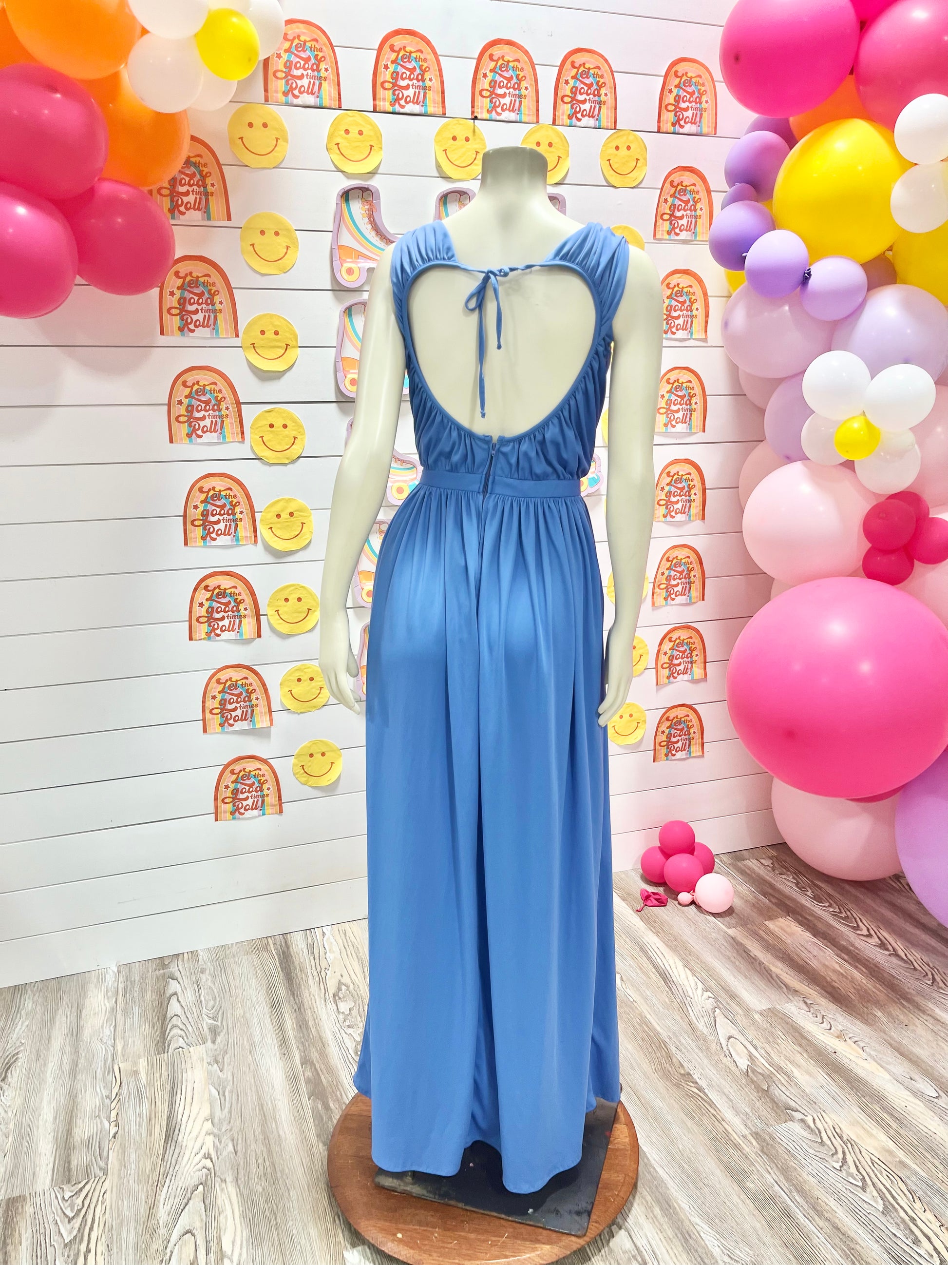 70s Blue Jack Hartley Evening Draped Vintage Open Back Maxi Dress
