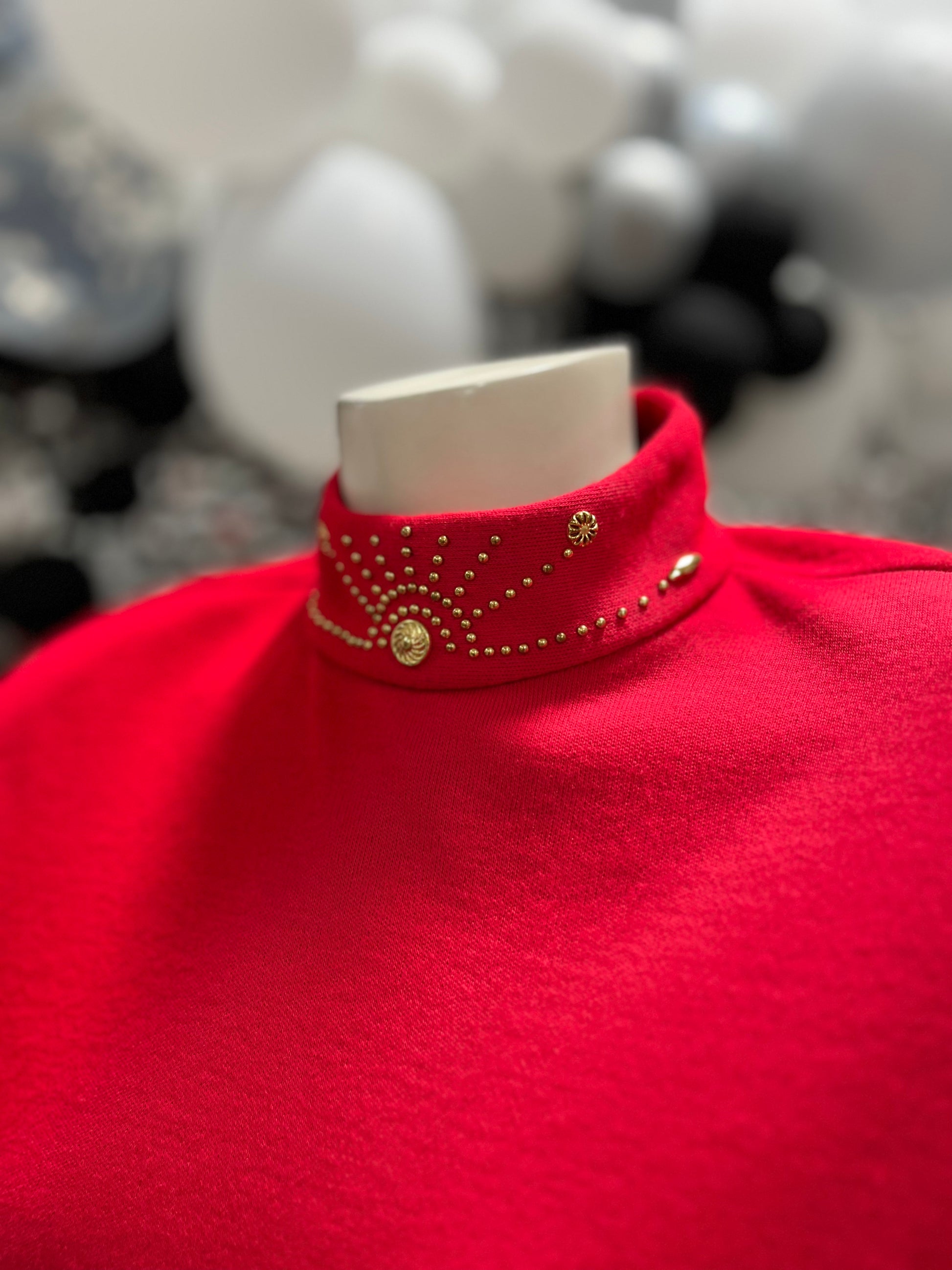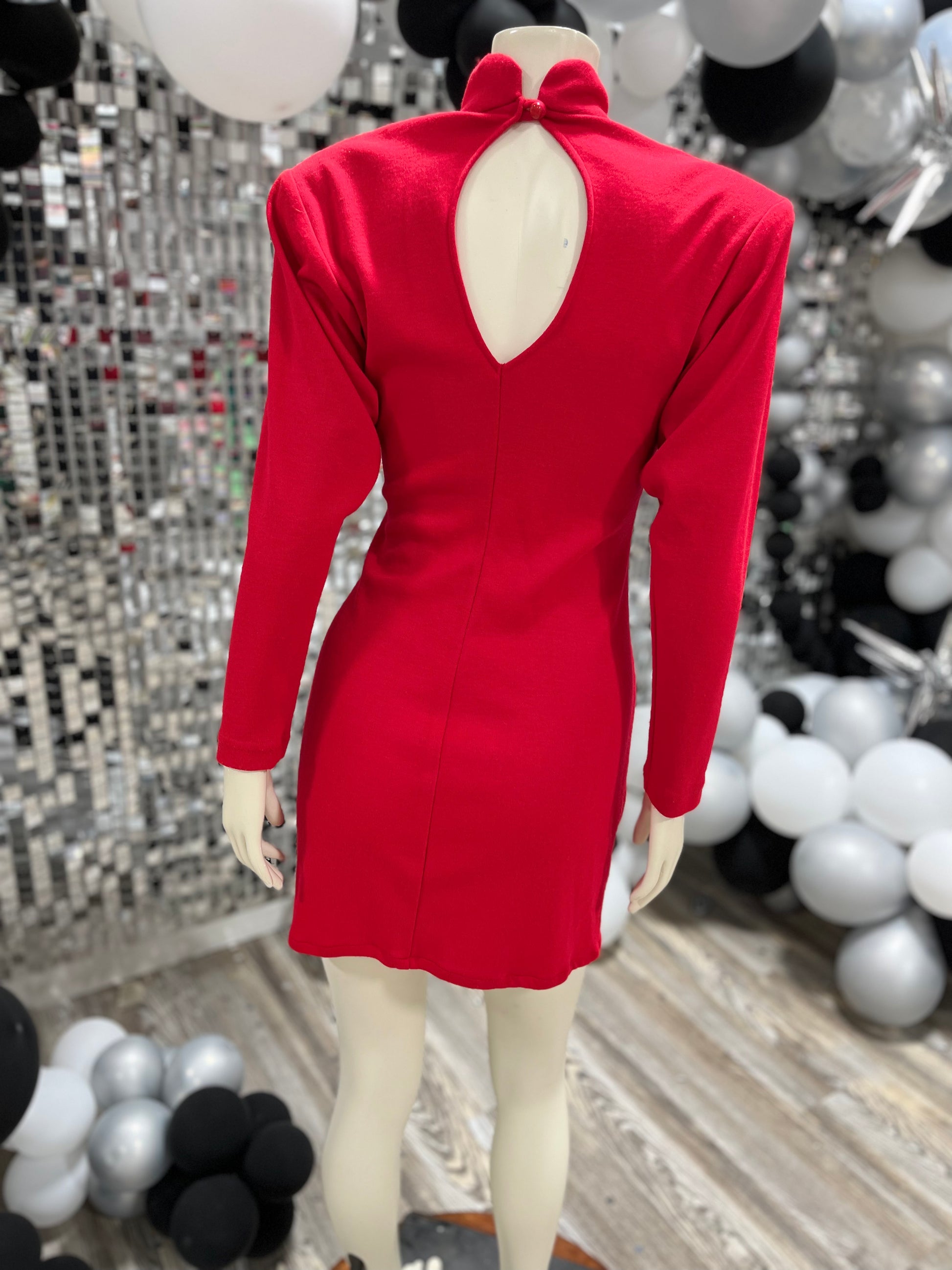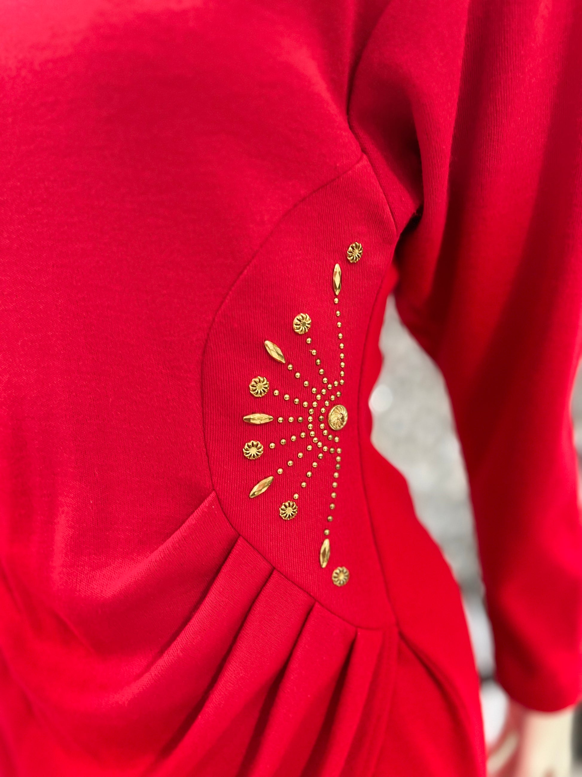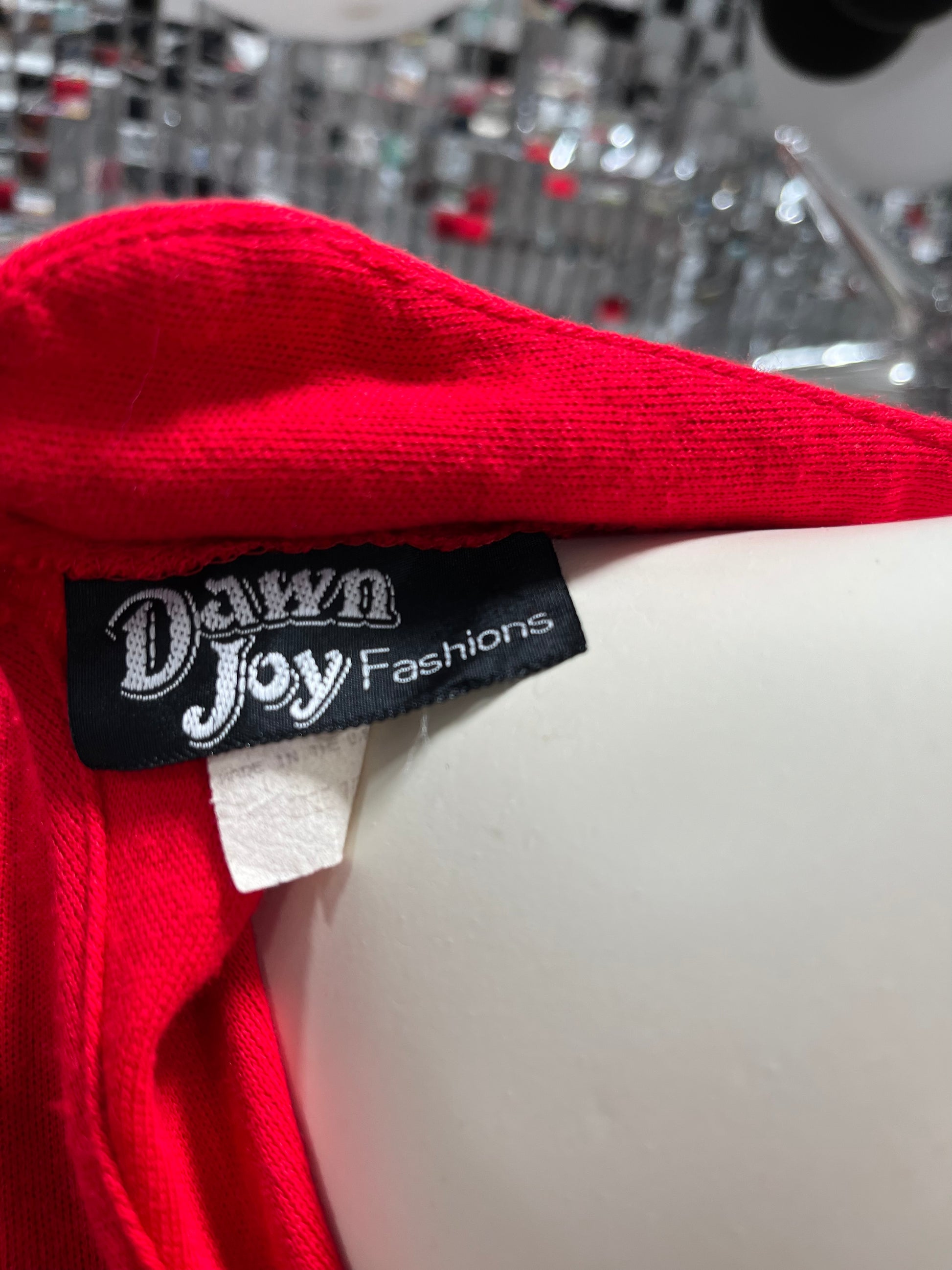 Vintage 80s Gold Studded Red Pleated Dawn Joy Mini Party Dress M
