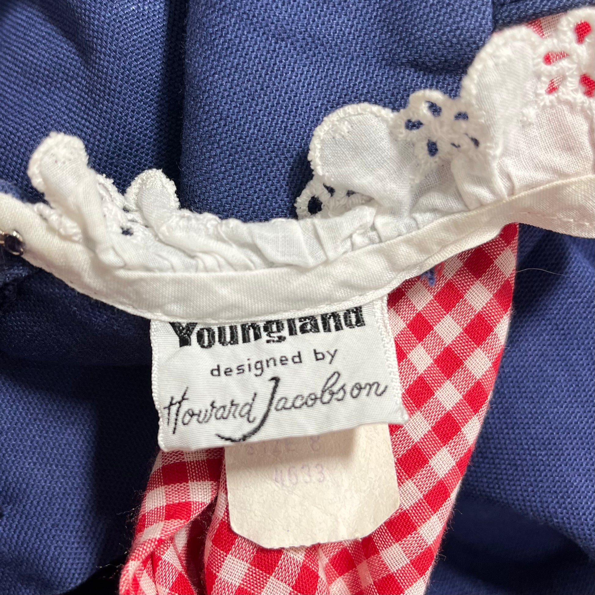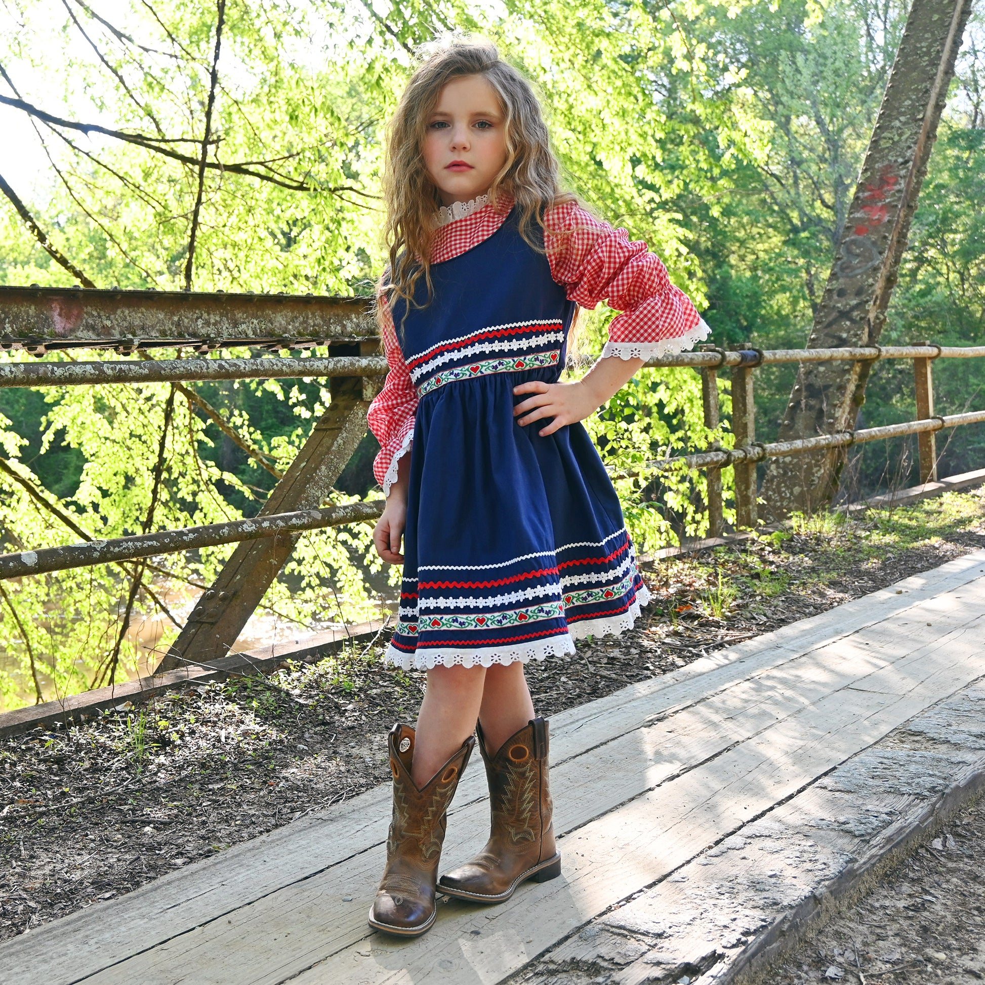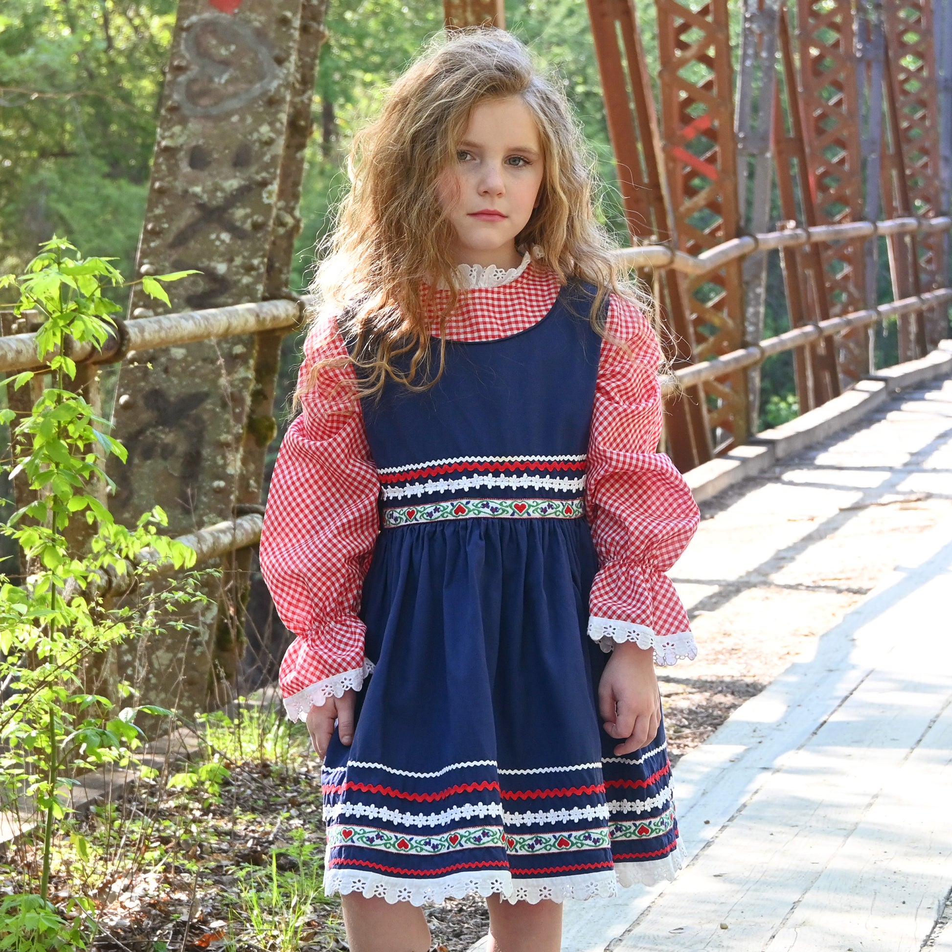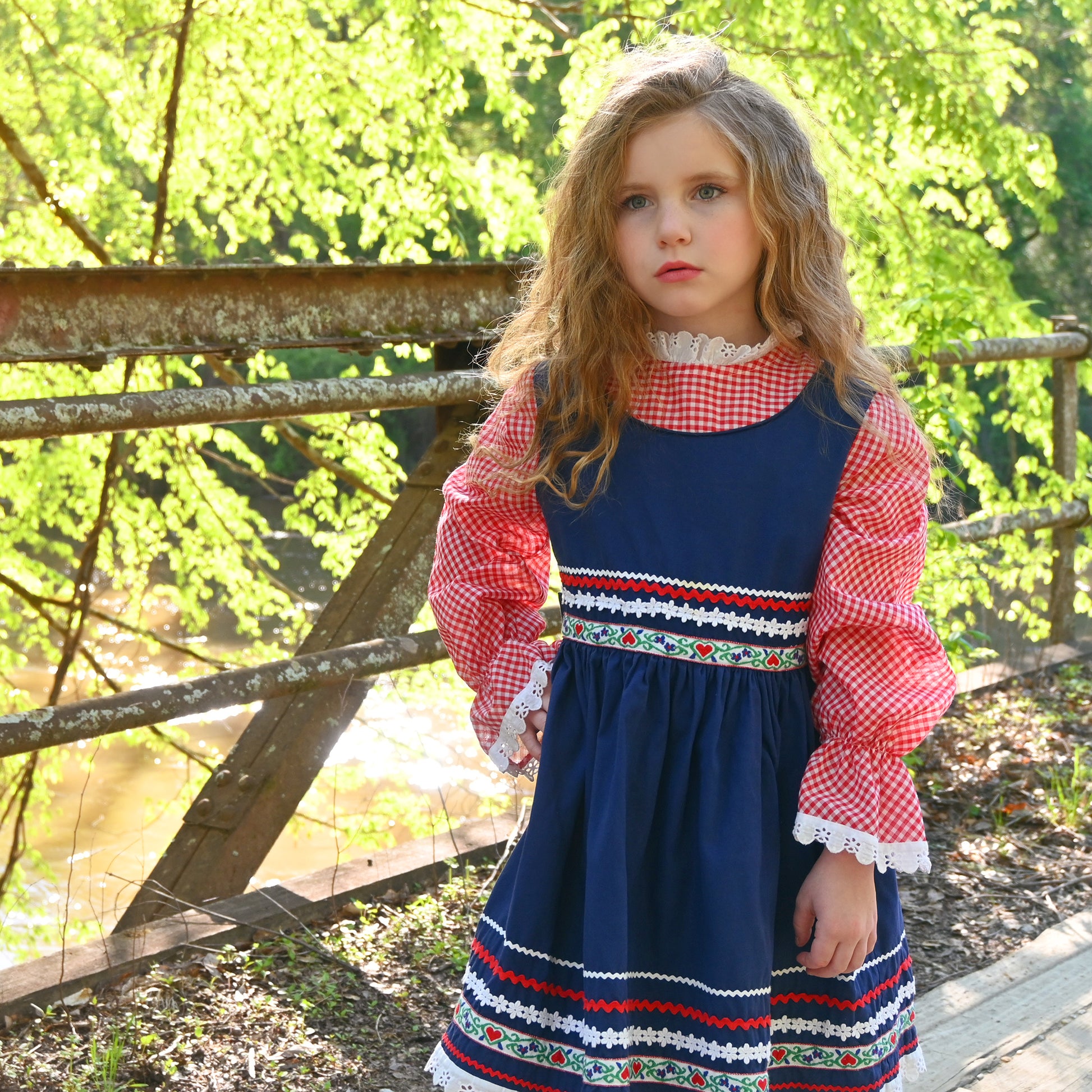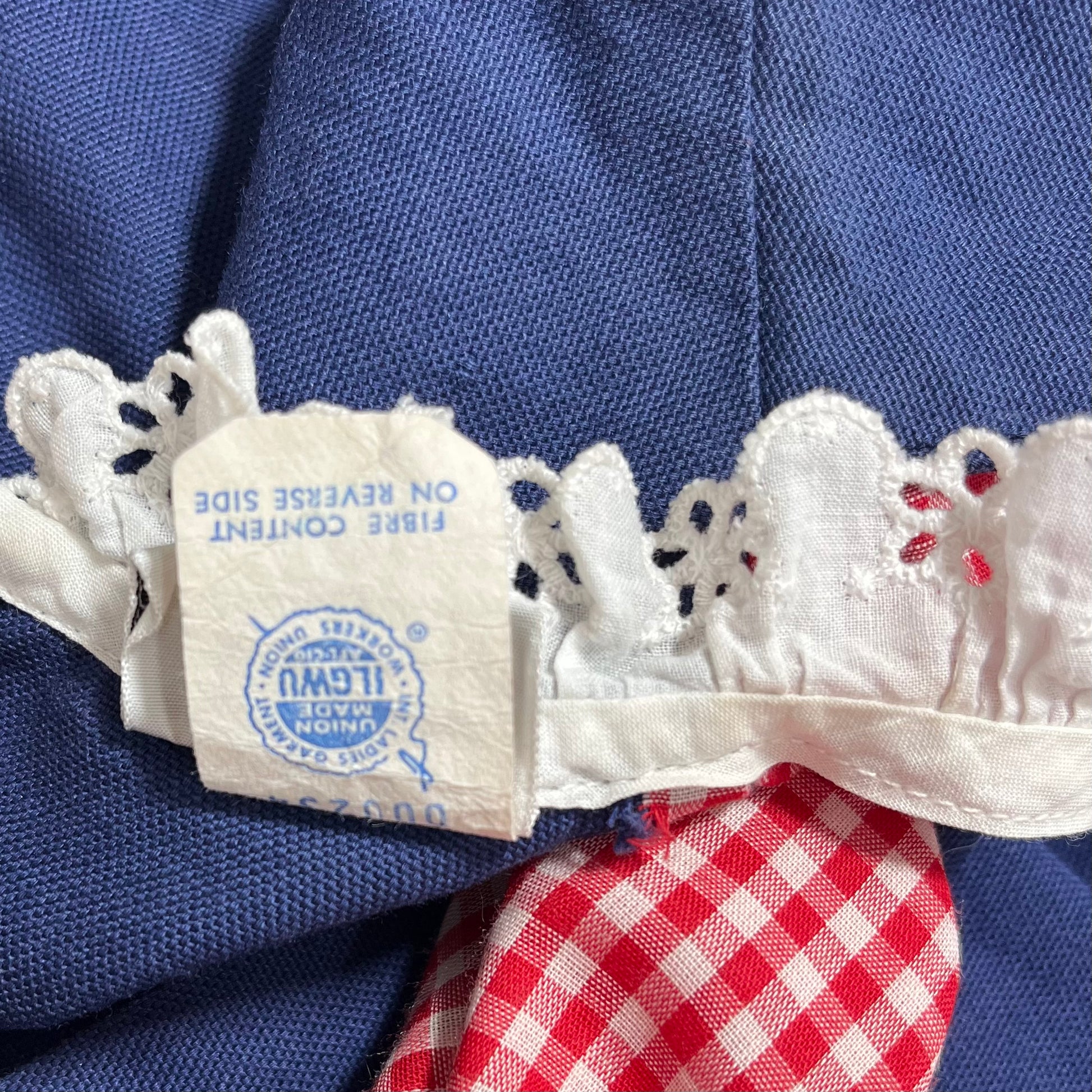 70s Lace and Floral Navy Blue Hippie Gingham Girls Vintage Dress