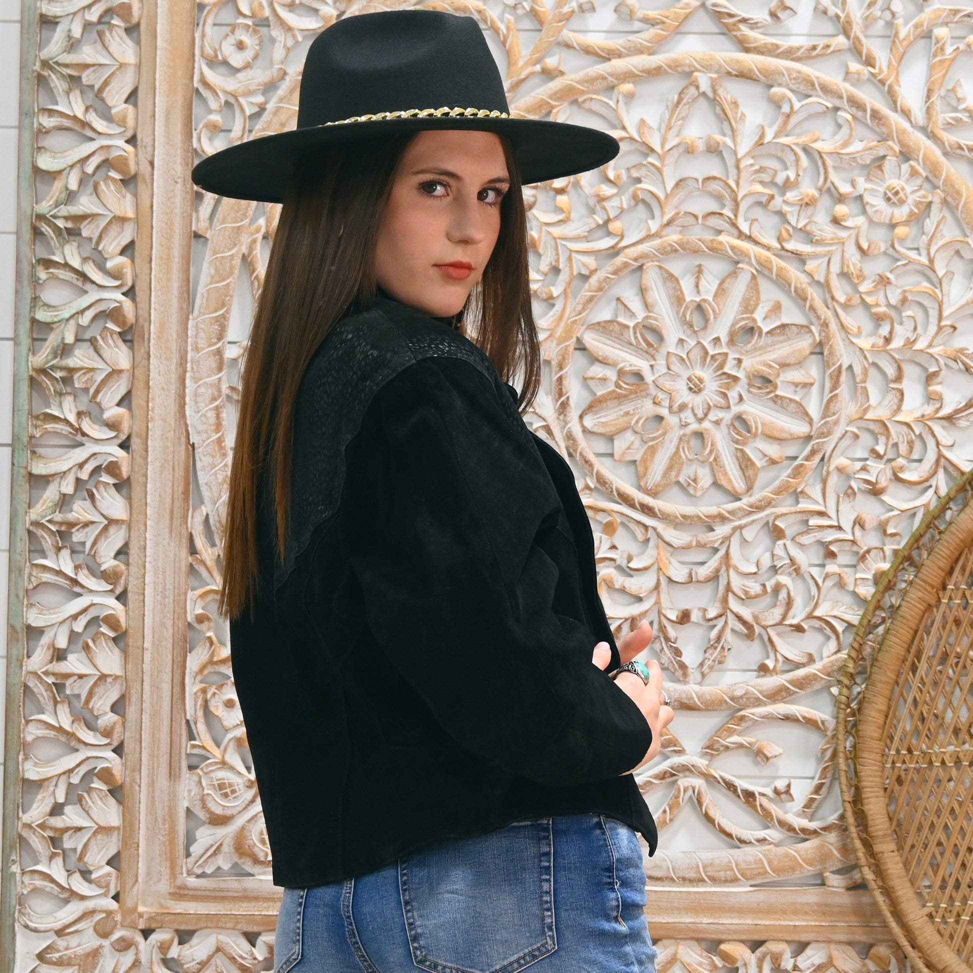 Totally 80s Leather Black Suede Animal Print Crop Jacket Vintage Coat