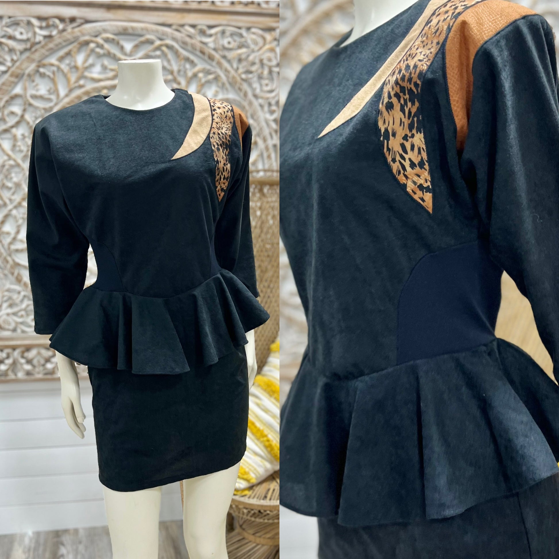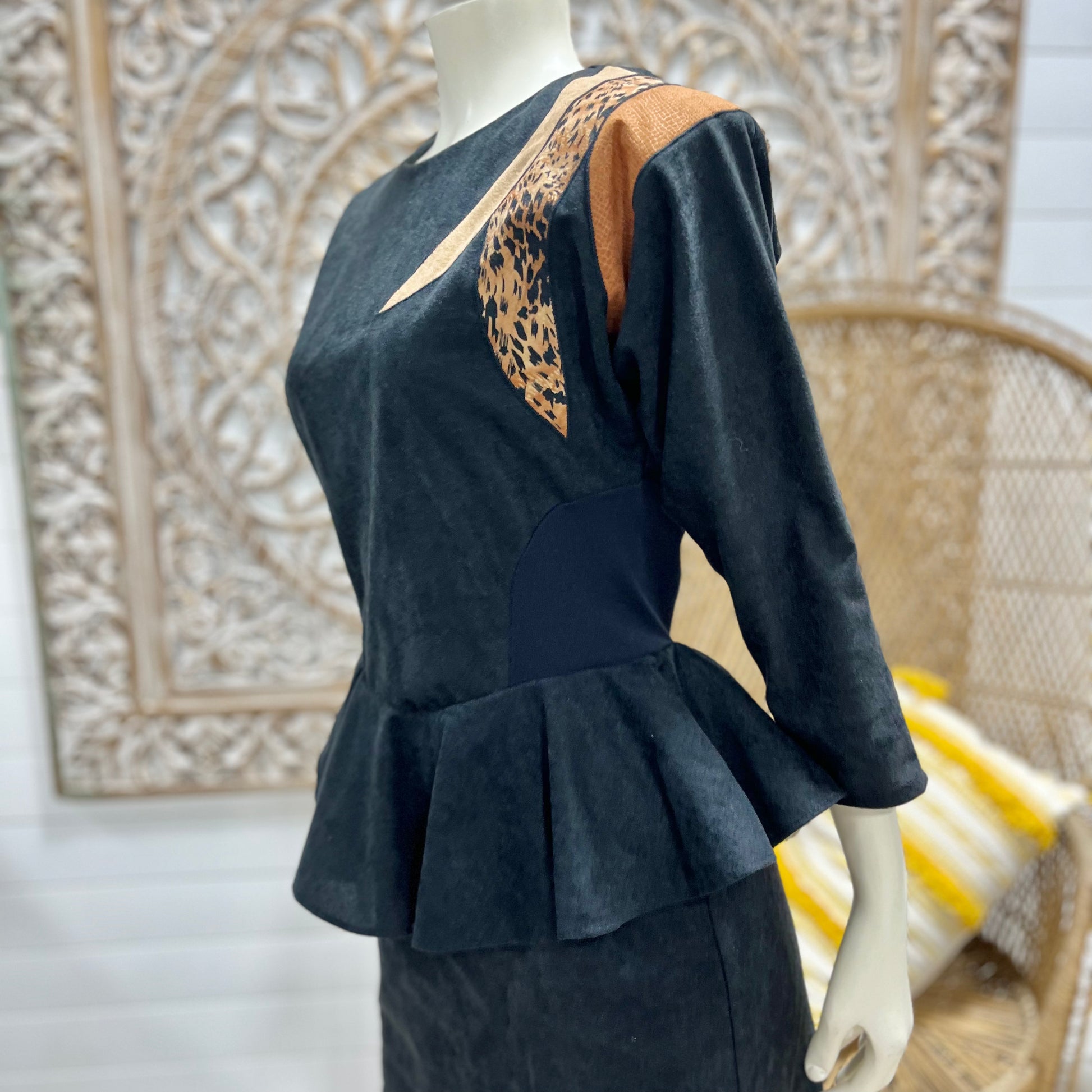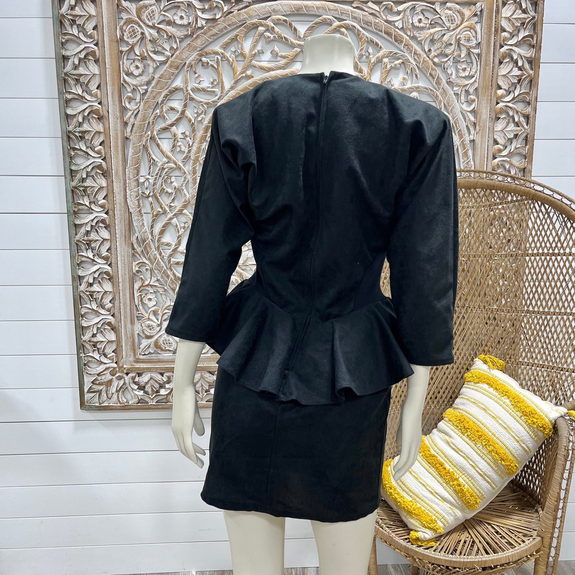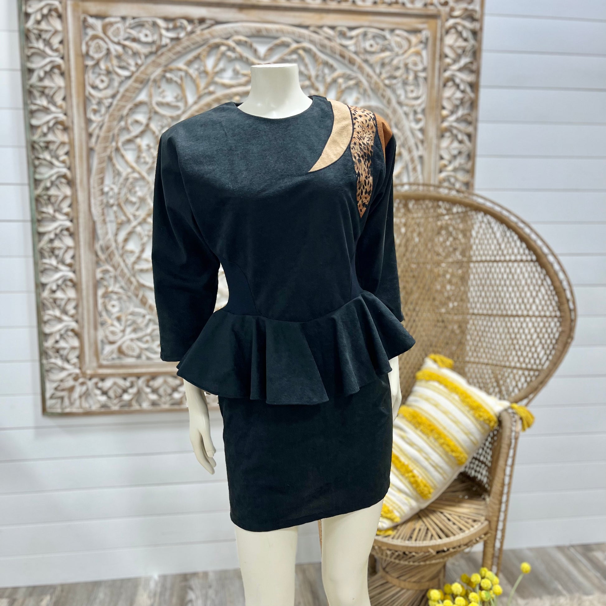 80s Vintage Peplum Animal Print Applique Dolman Mini Dress