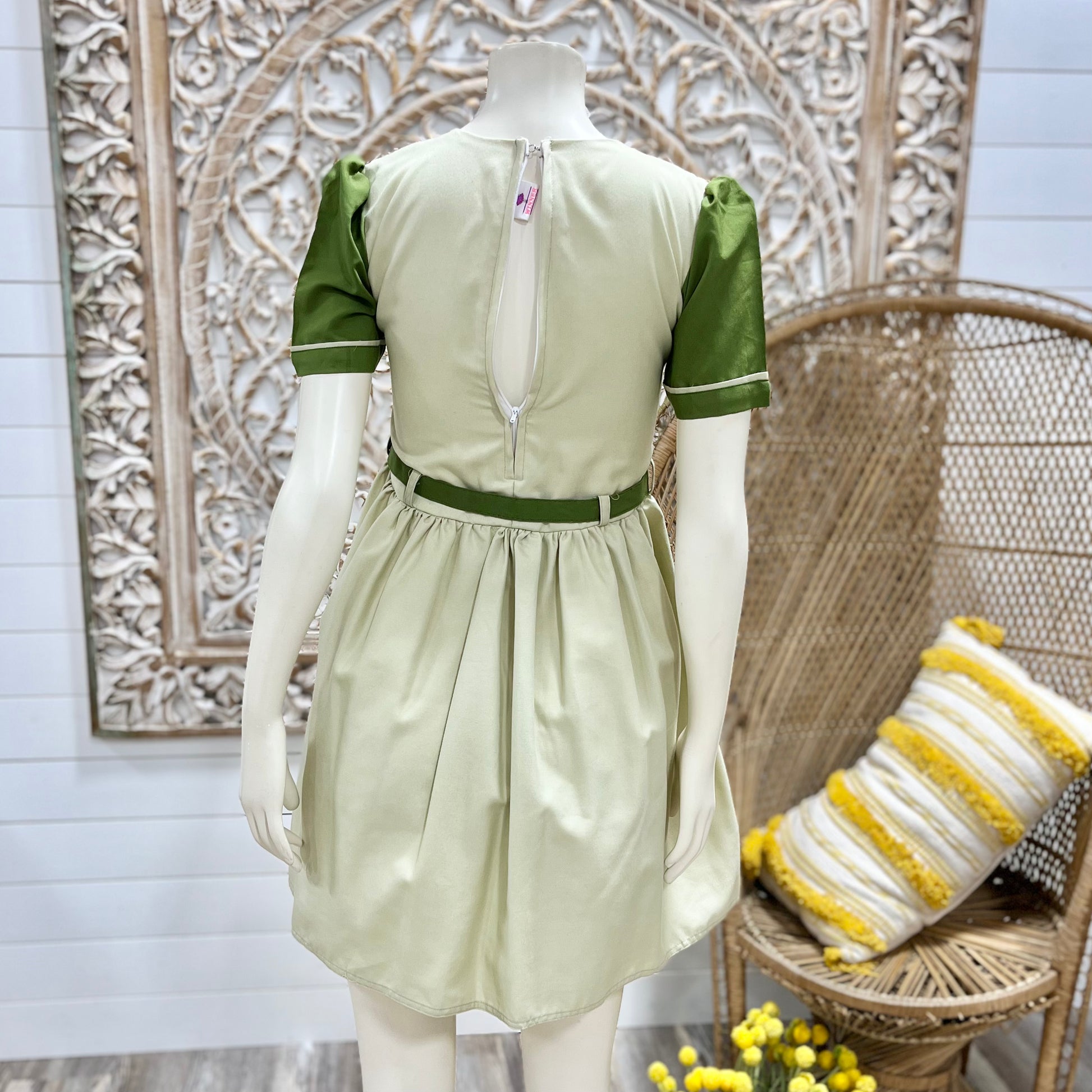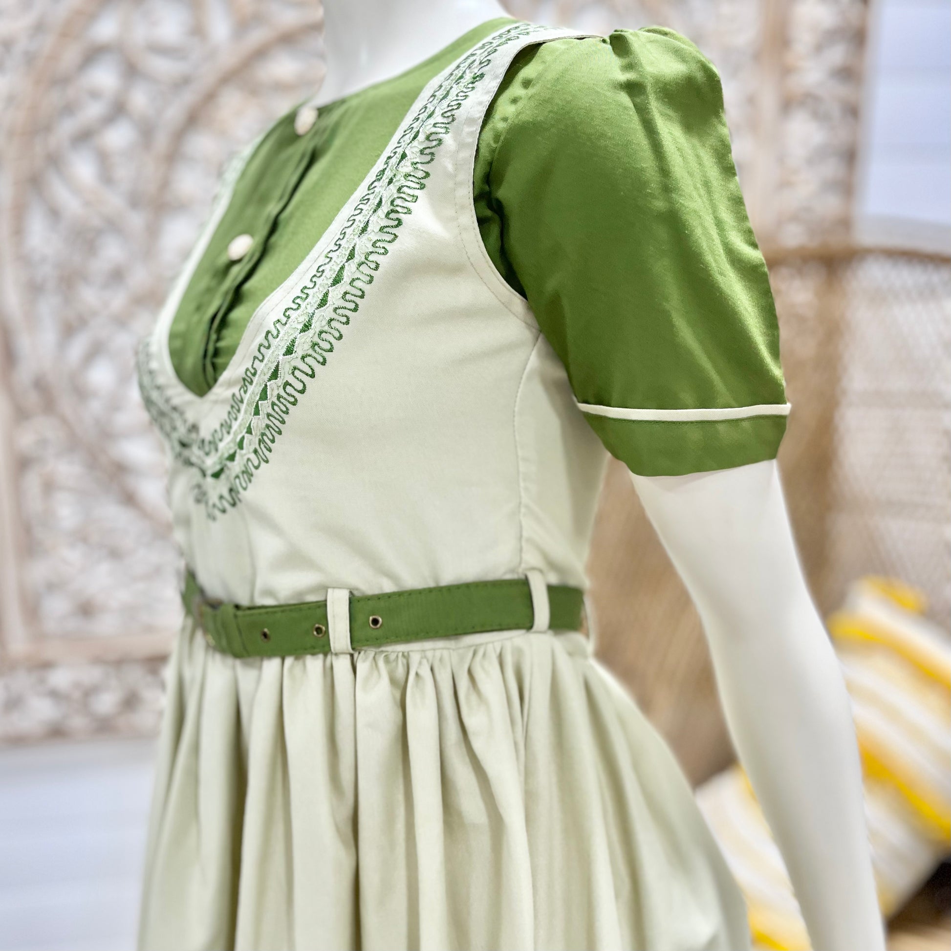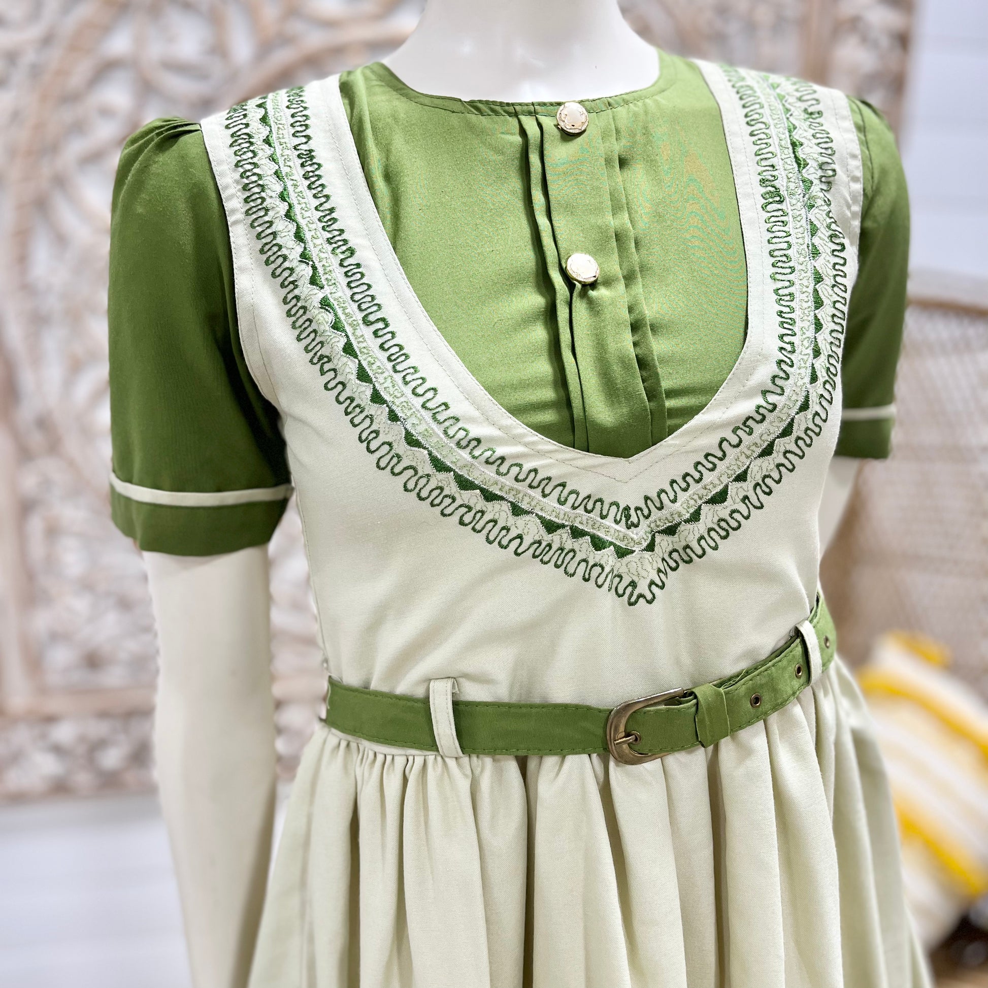 Vintage 50s Style Embroidered Two Tone Green Belted Jumper Girls Dress