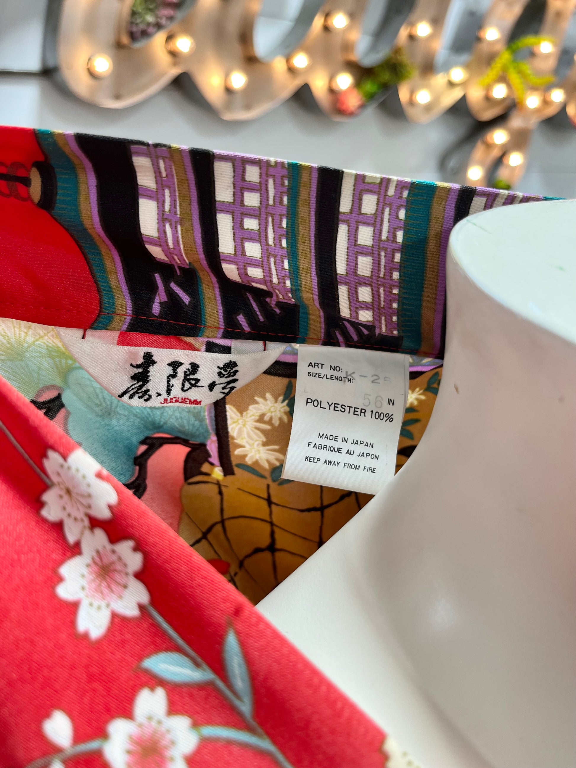 Vintage 80s Asian Floral Print Rickshaw Wrap Cherry Blossom Kimono Duster