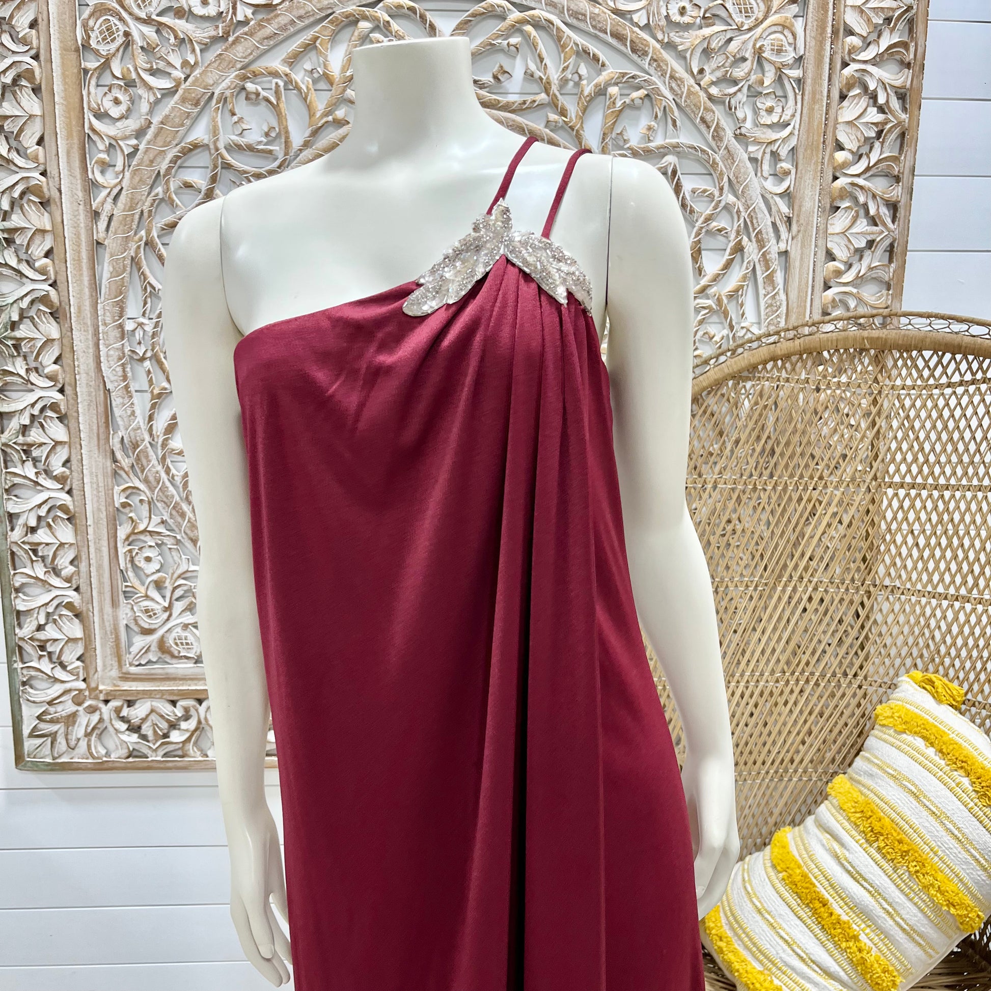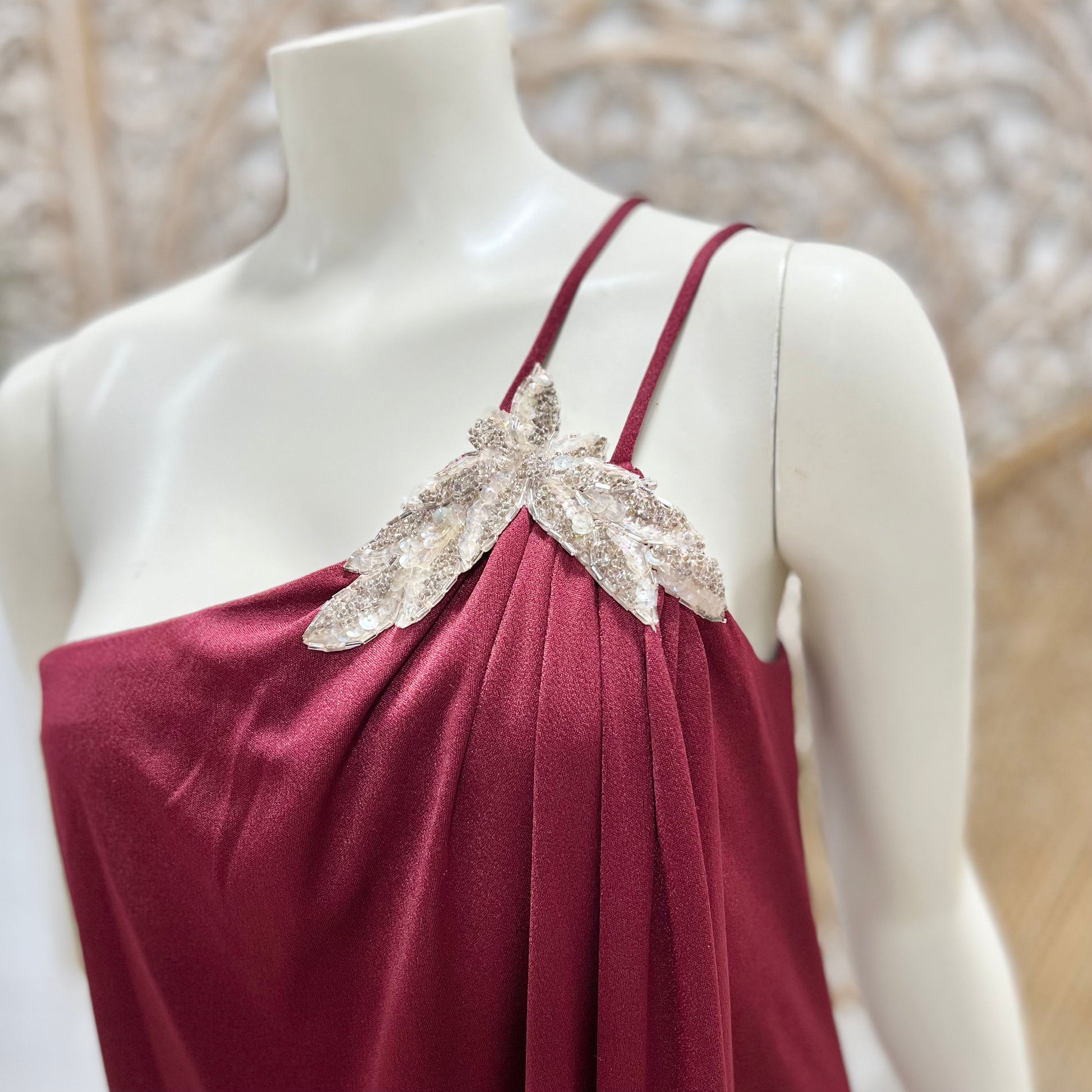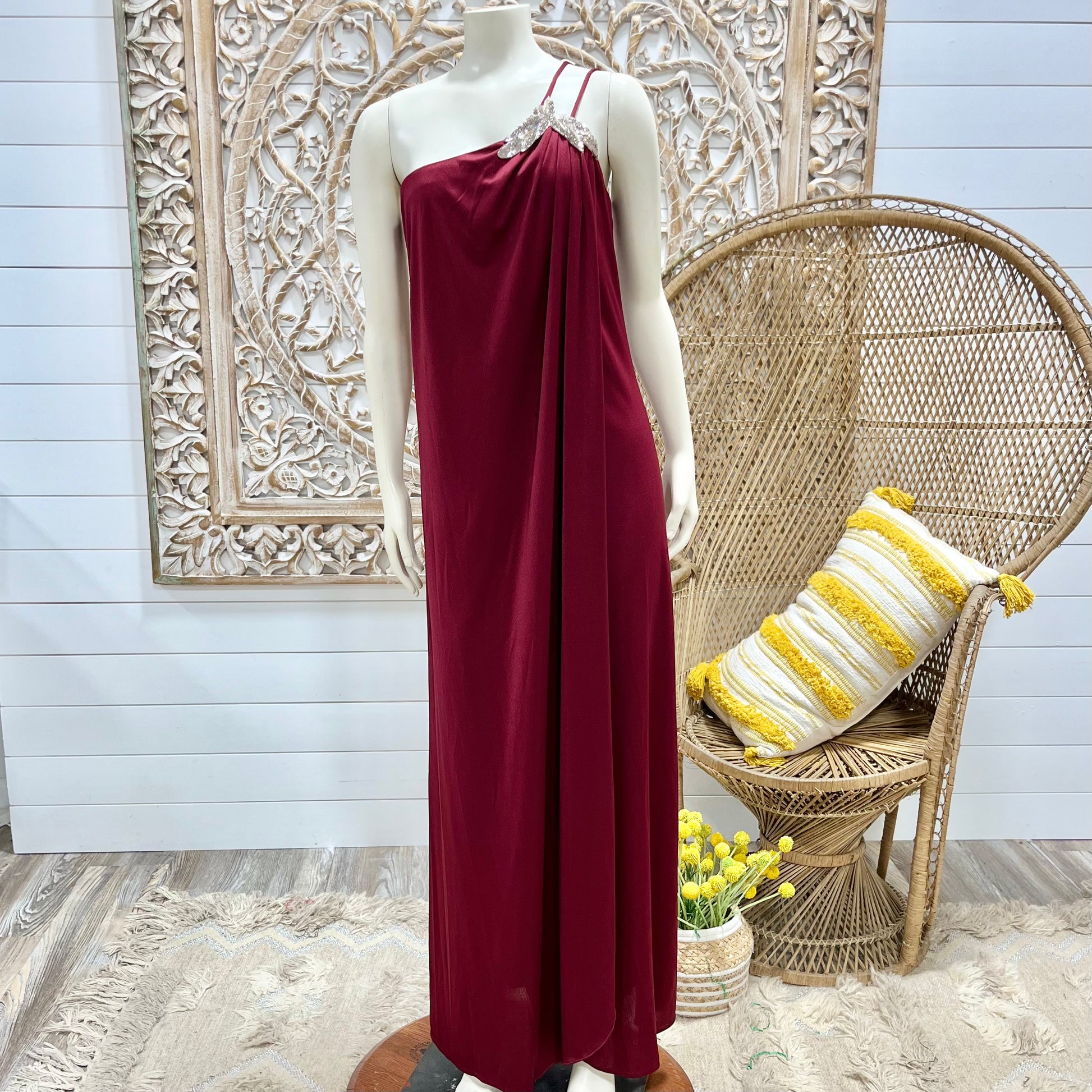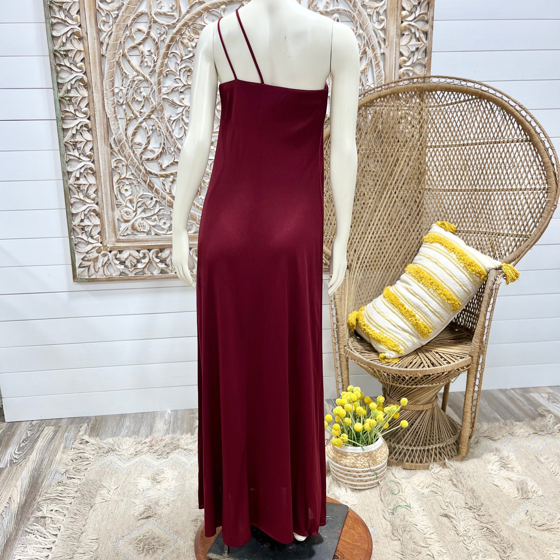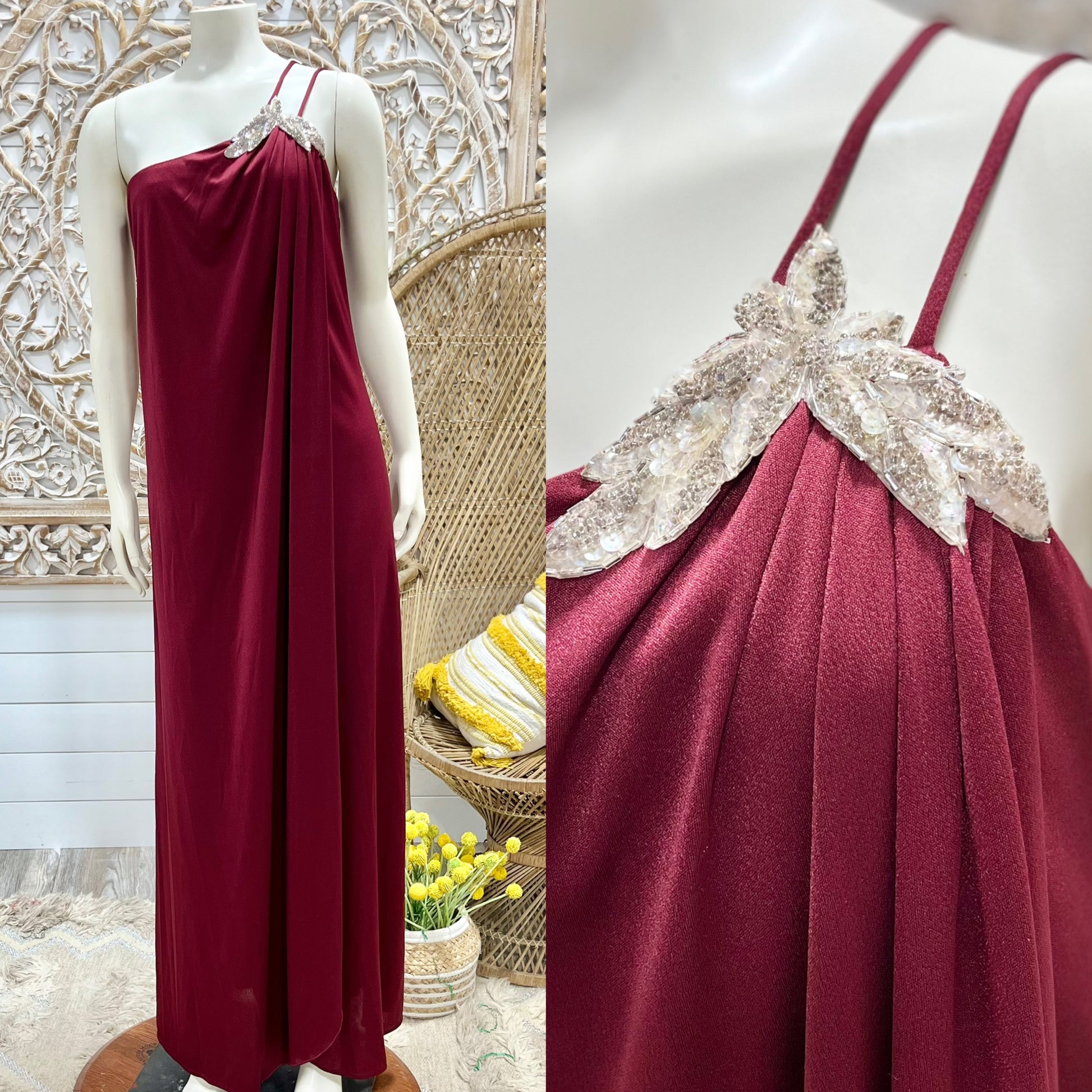 Vintage 70s Roberta Maroon Slinky Evening Maxi Dress S
