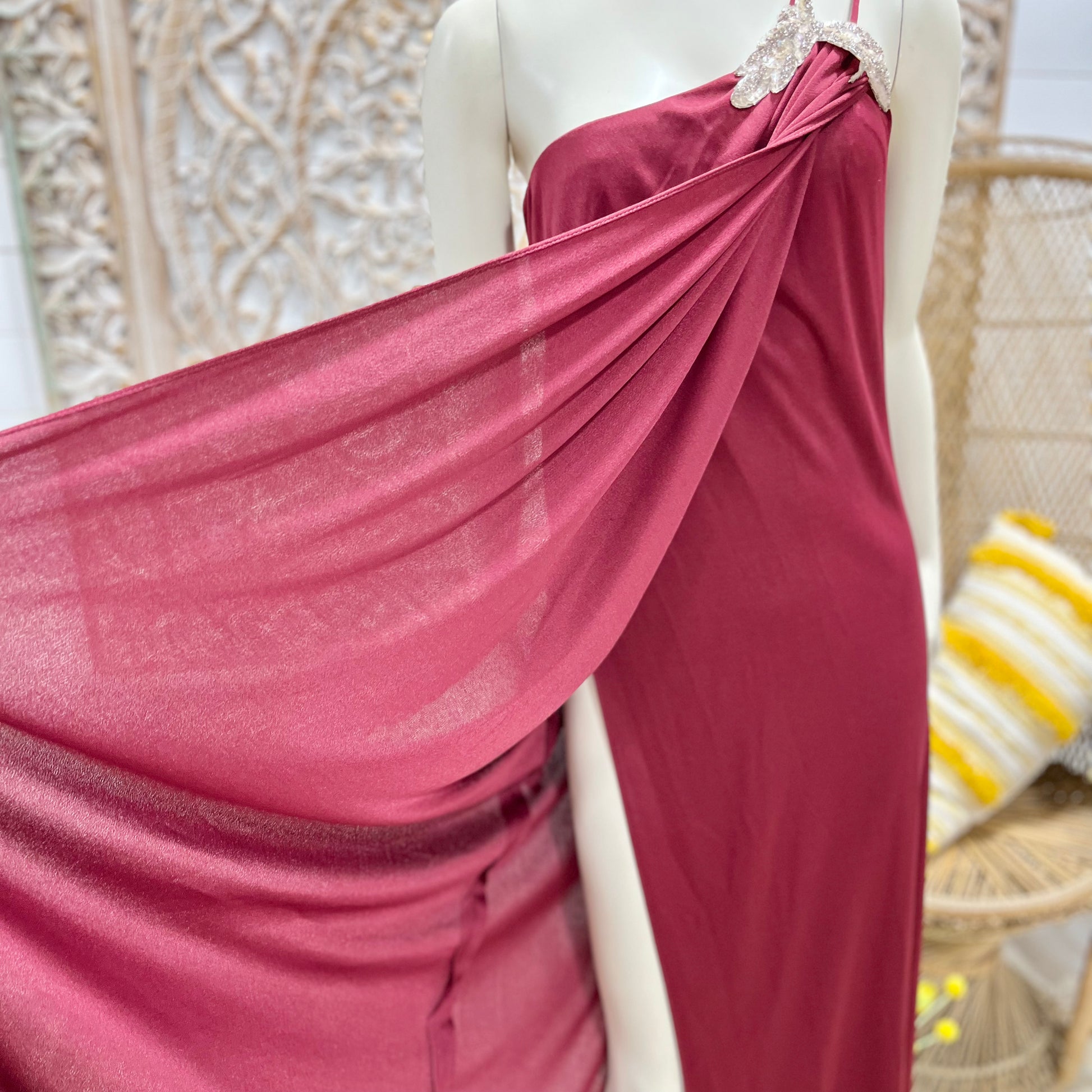 Vintage 70s Roberta Maroon Slinky Evening Maxi Dress