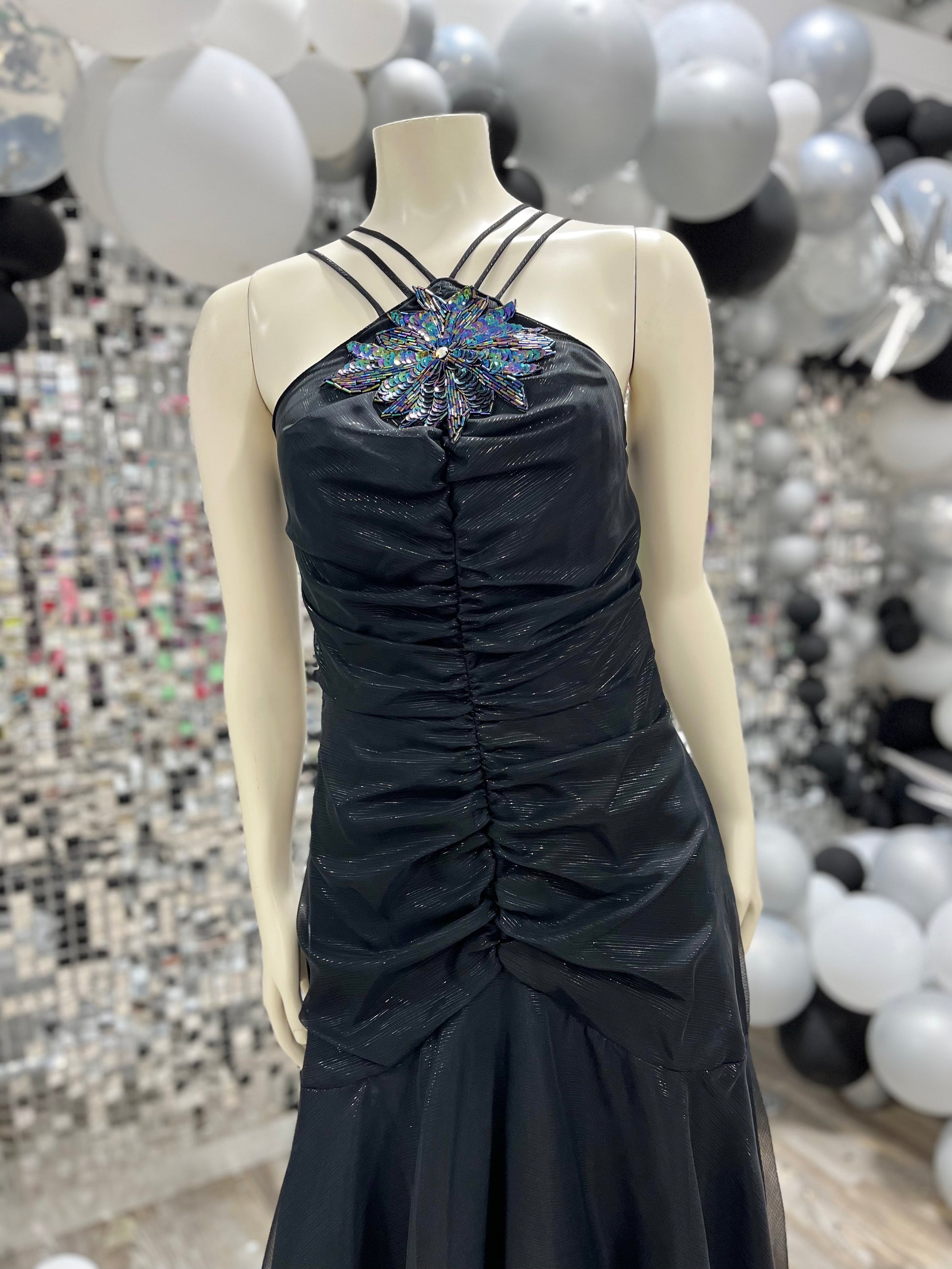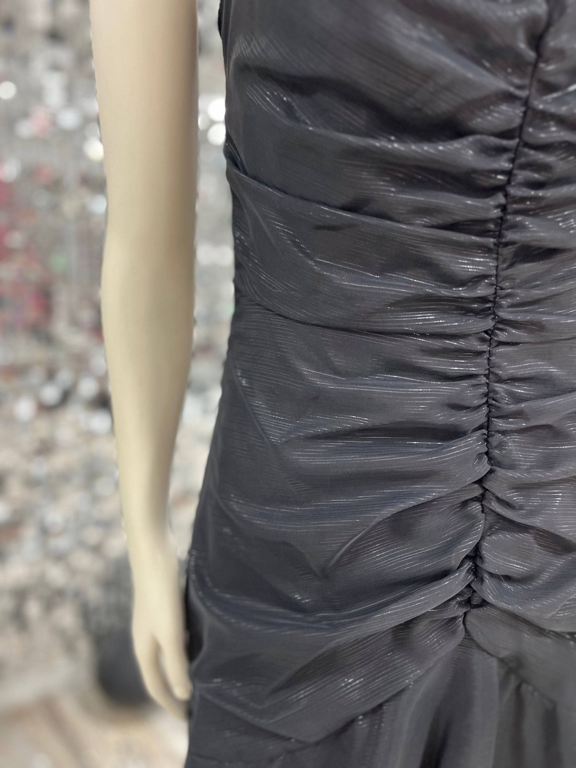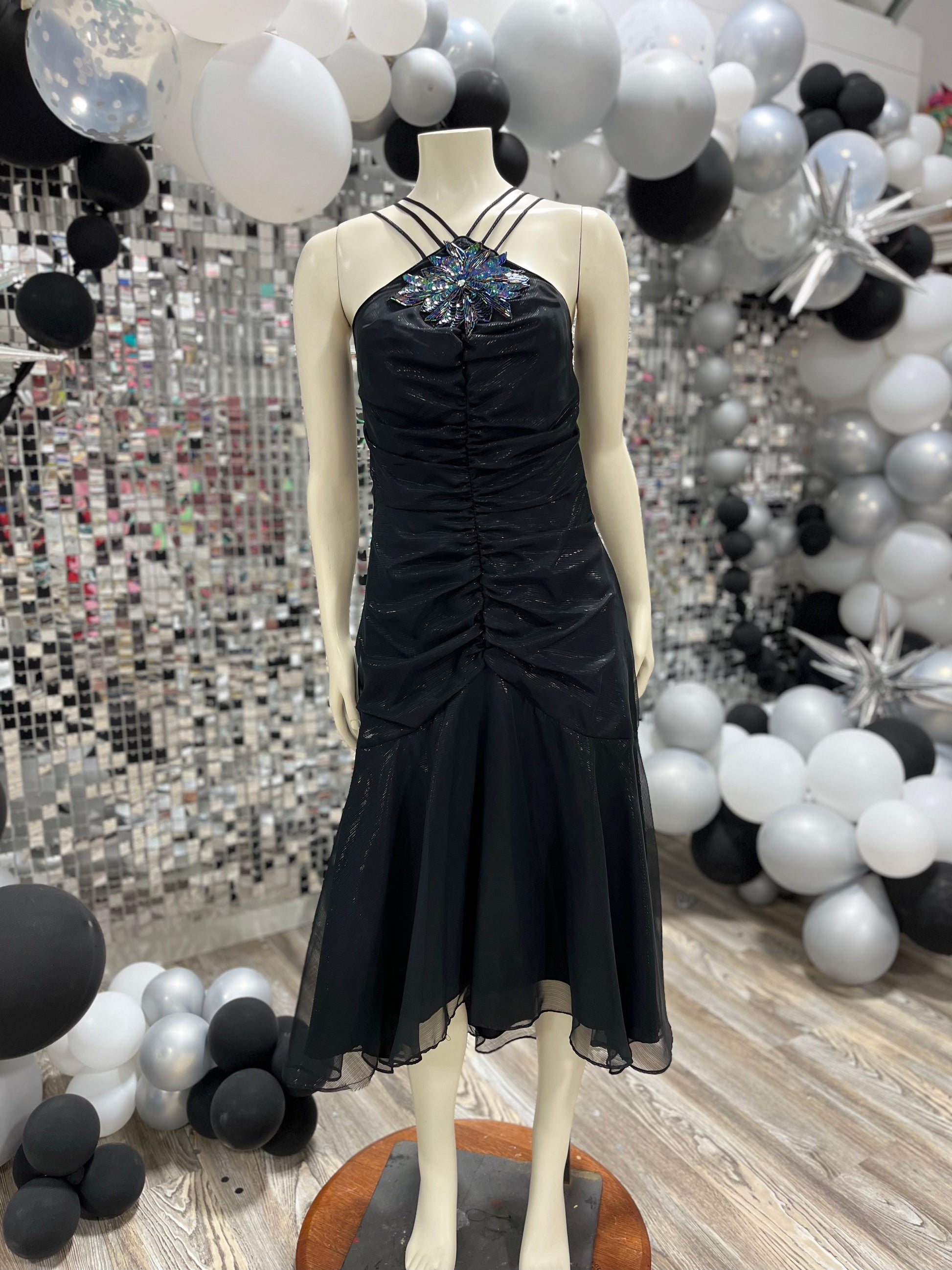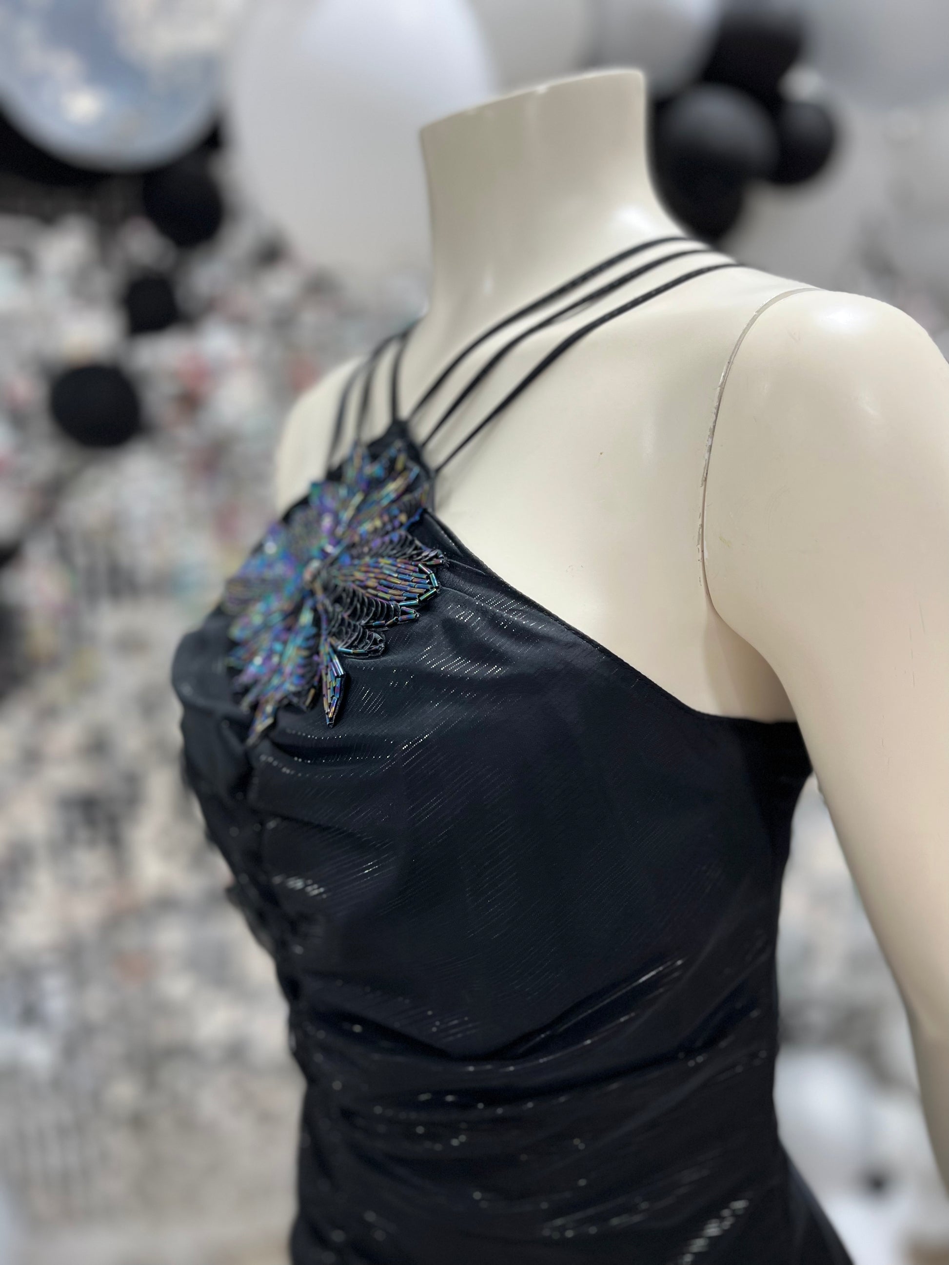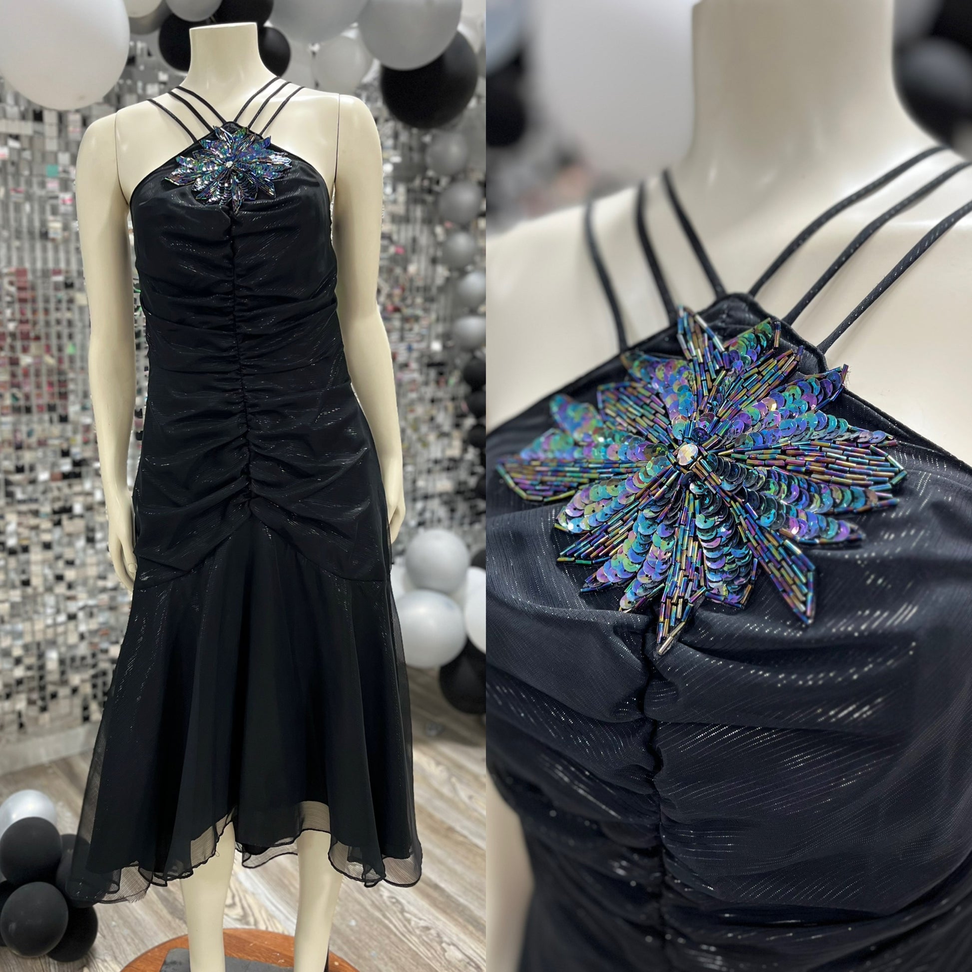 New Leaf by Samir 80s Metallic Beaded Evening Party Vintage Dress