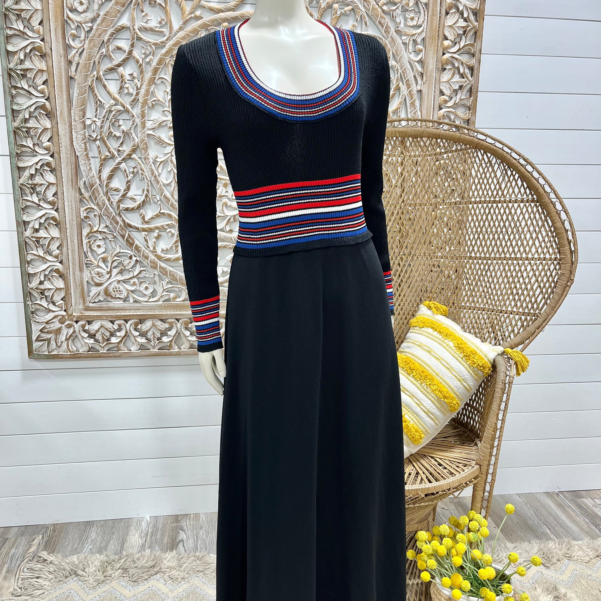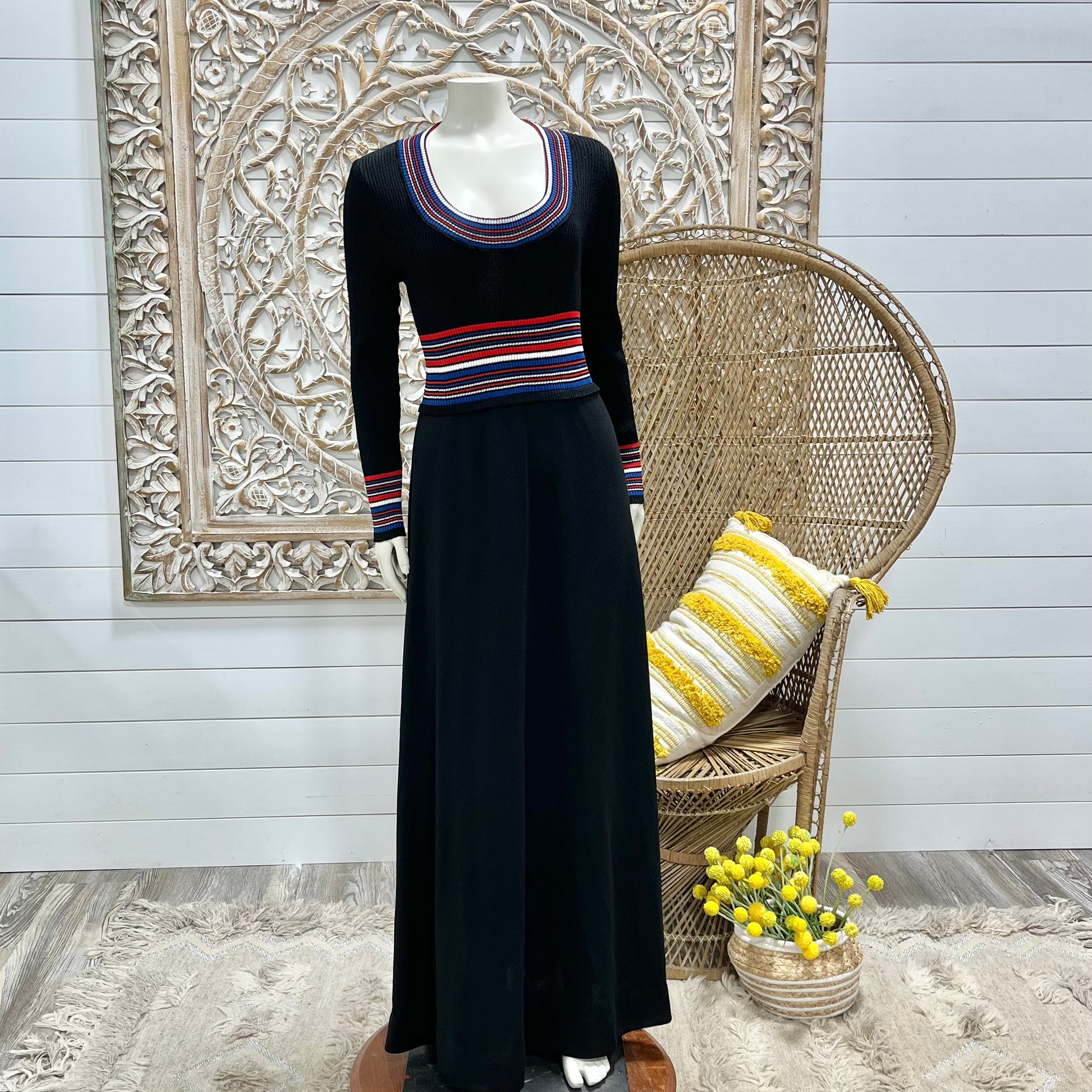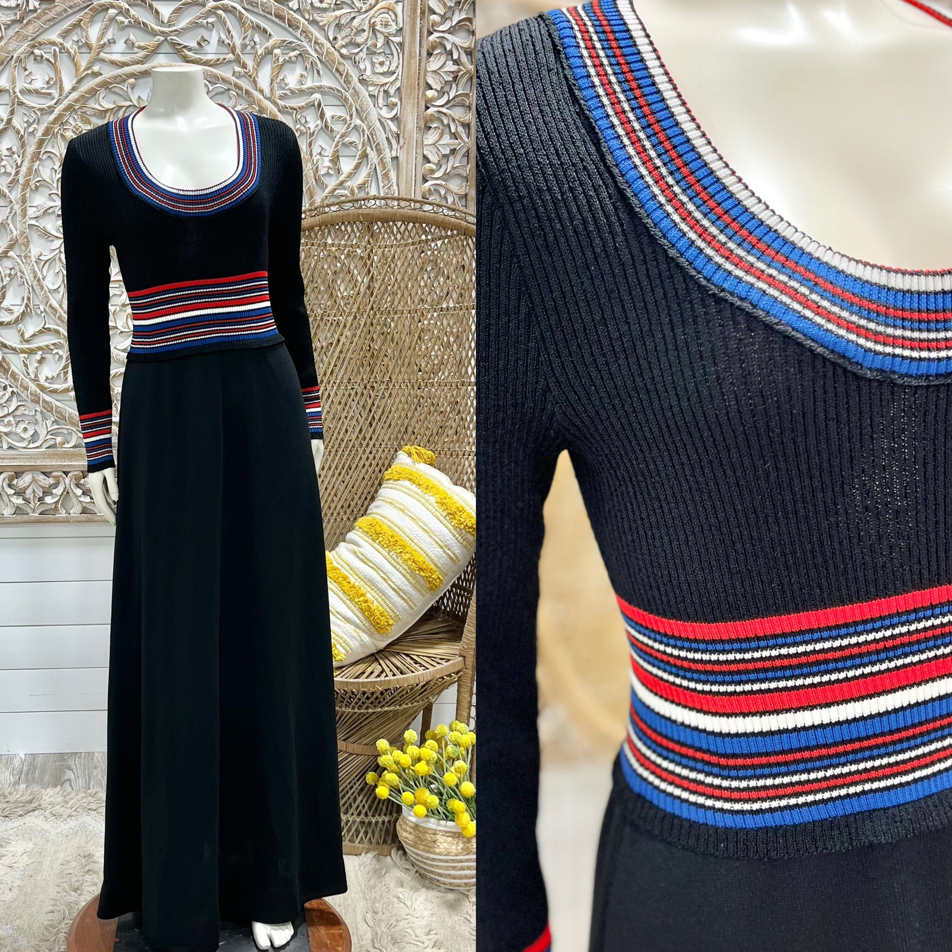 70s Vintage Giamo Striped Knit Body Con Maxi Dress S/M/L