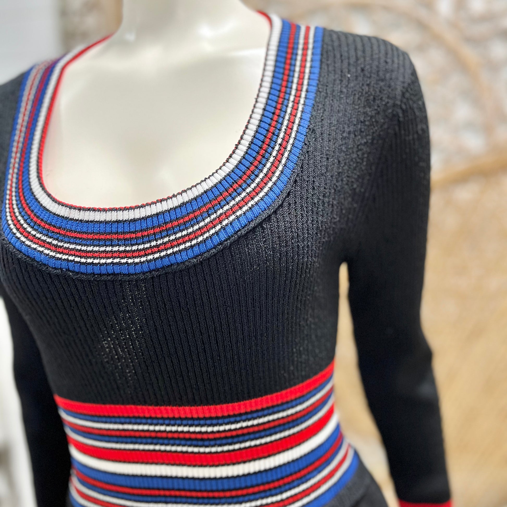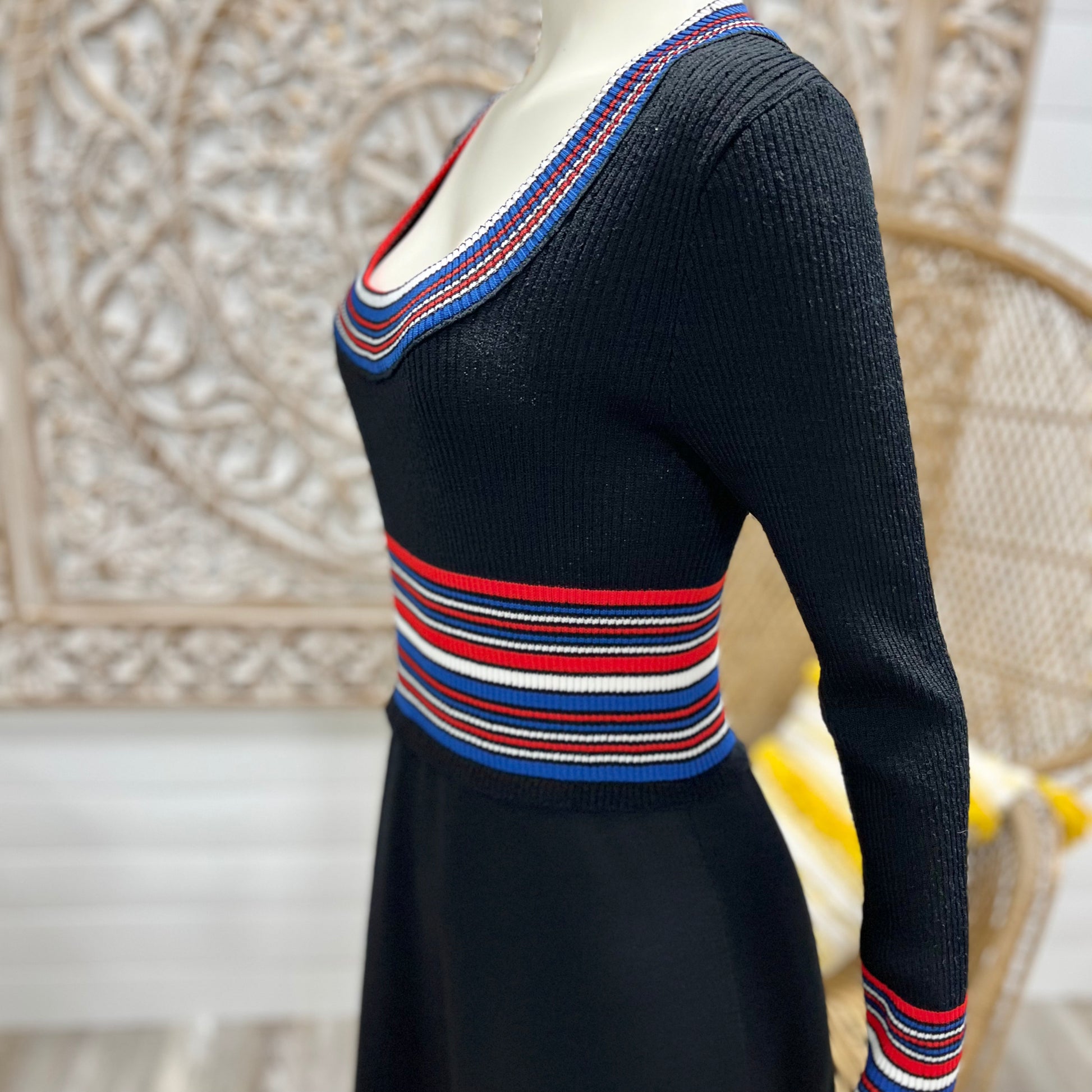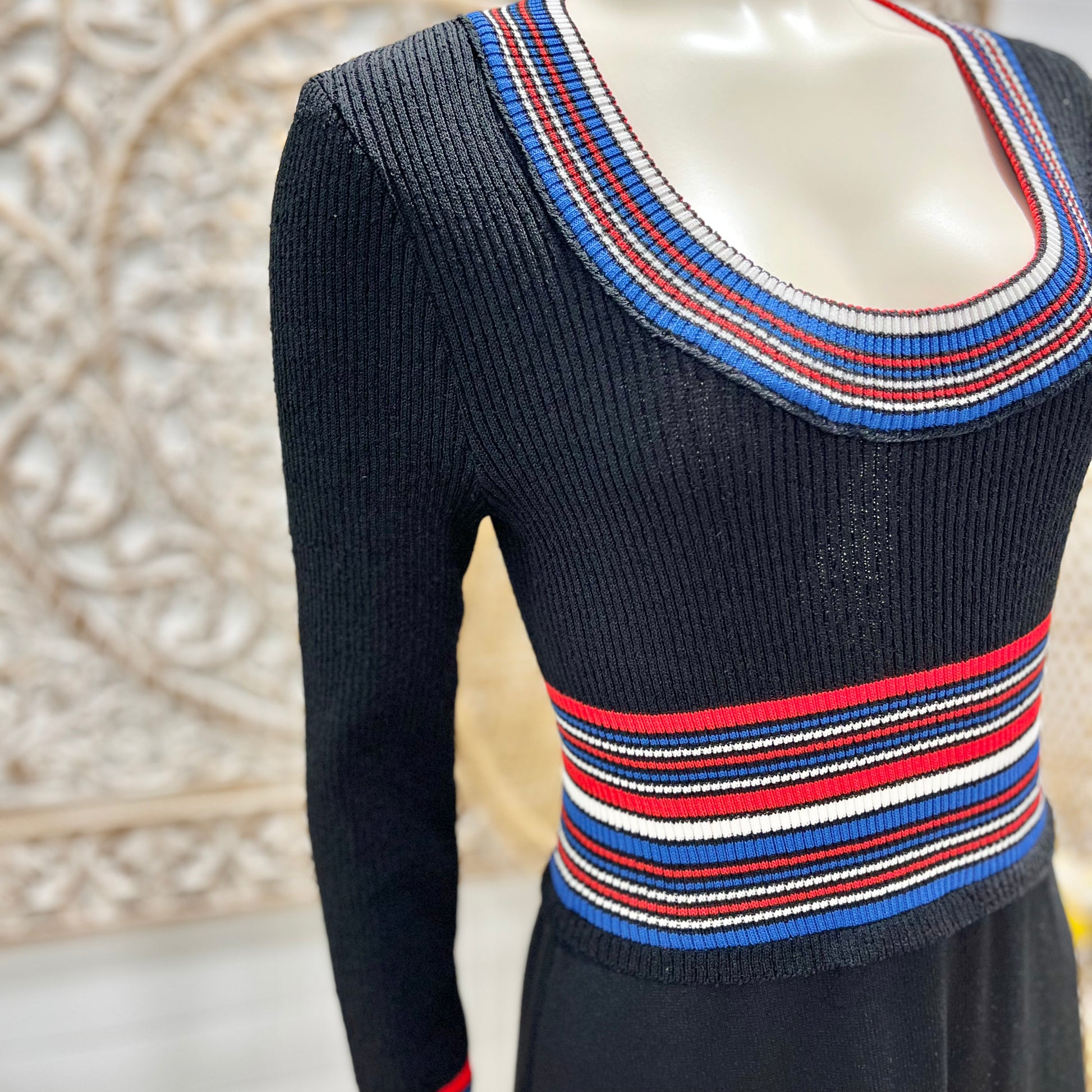 70s Vintage Giamo Striped Knit Body Con Maxi Dress S/M/L