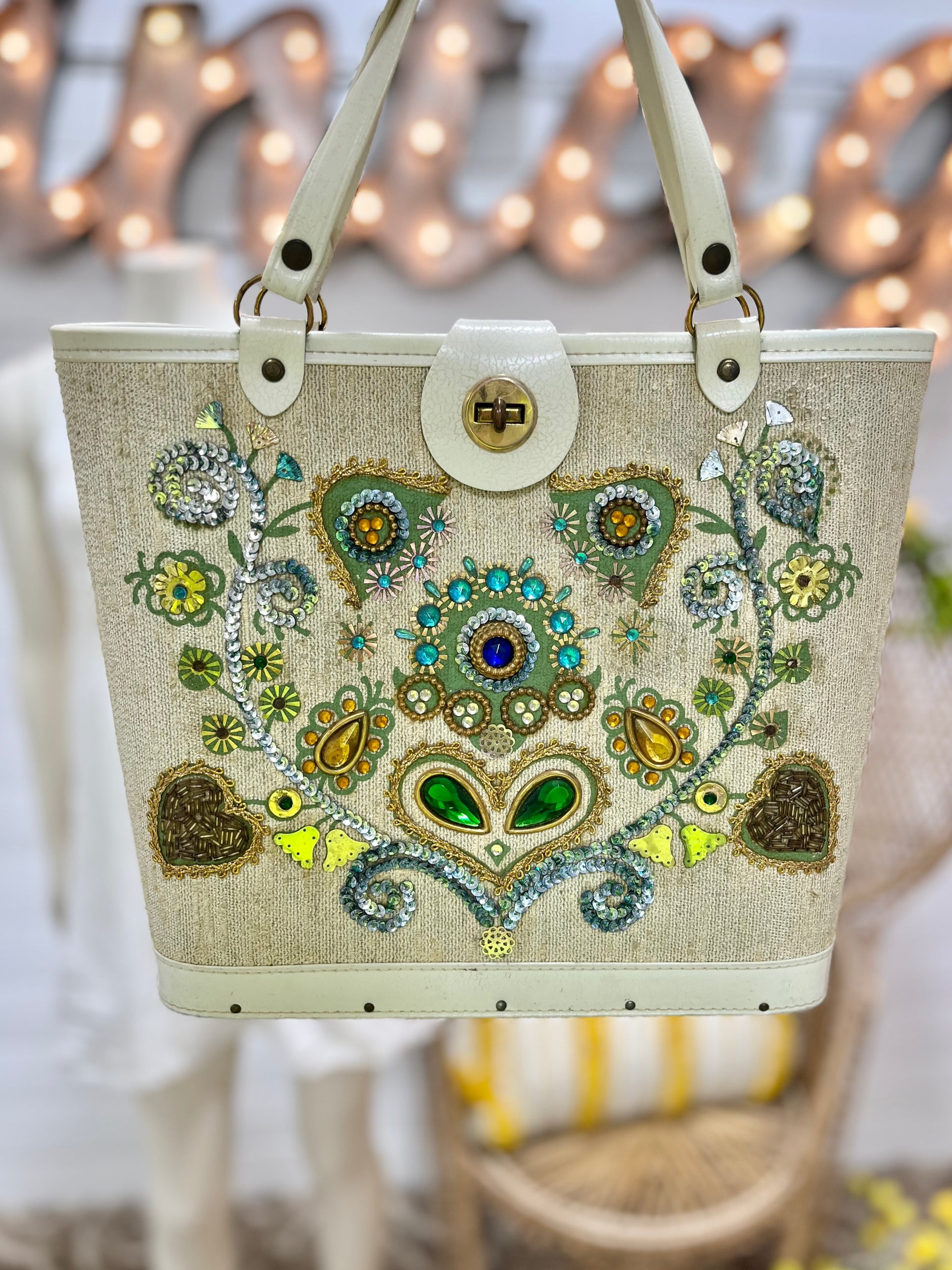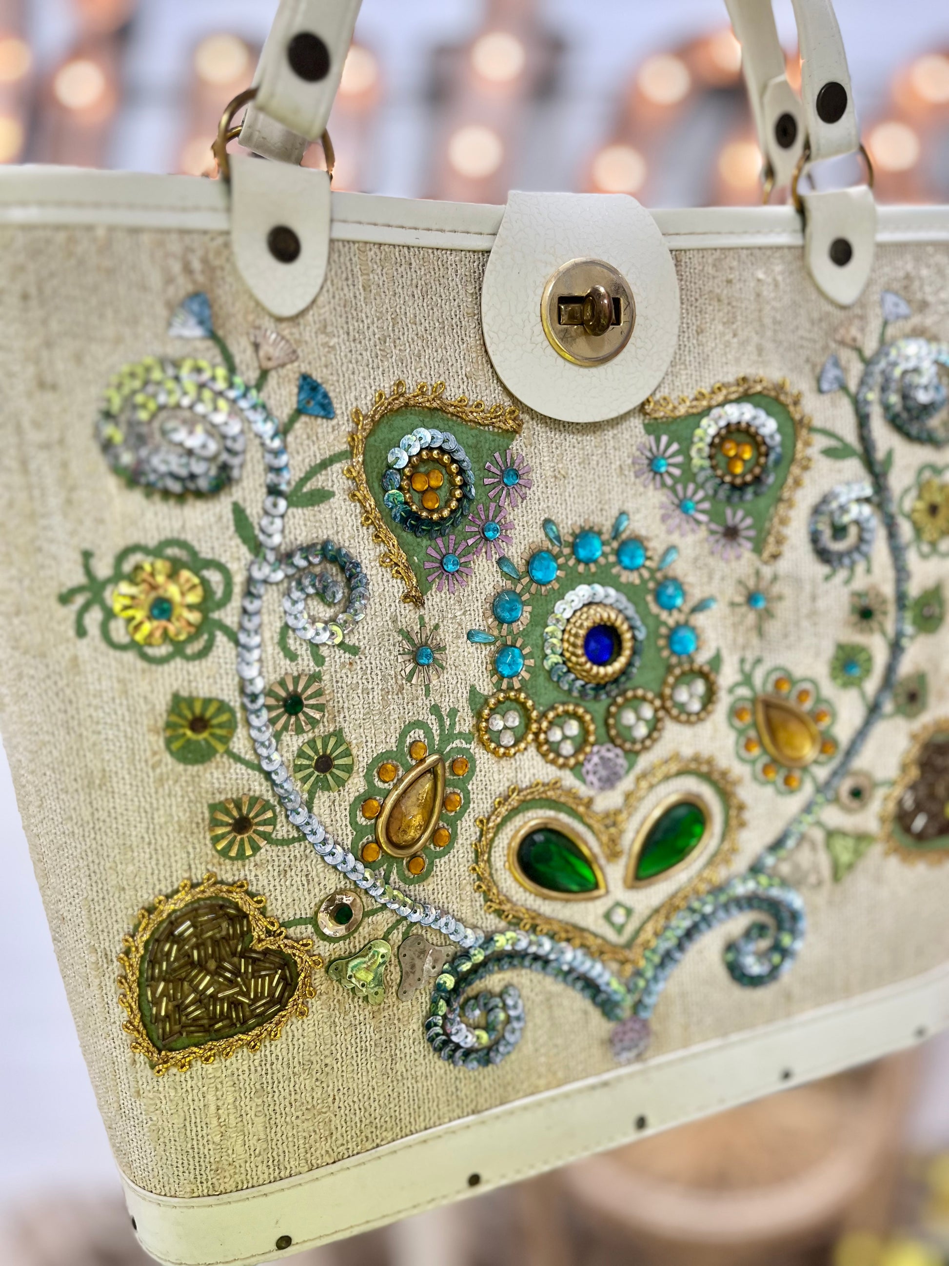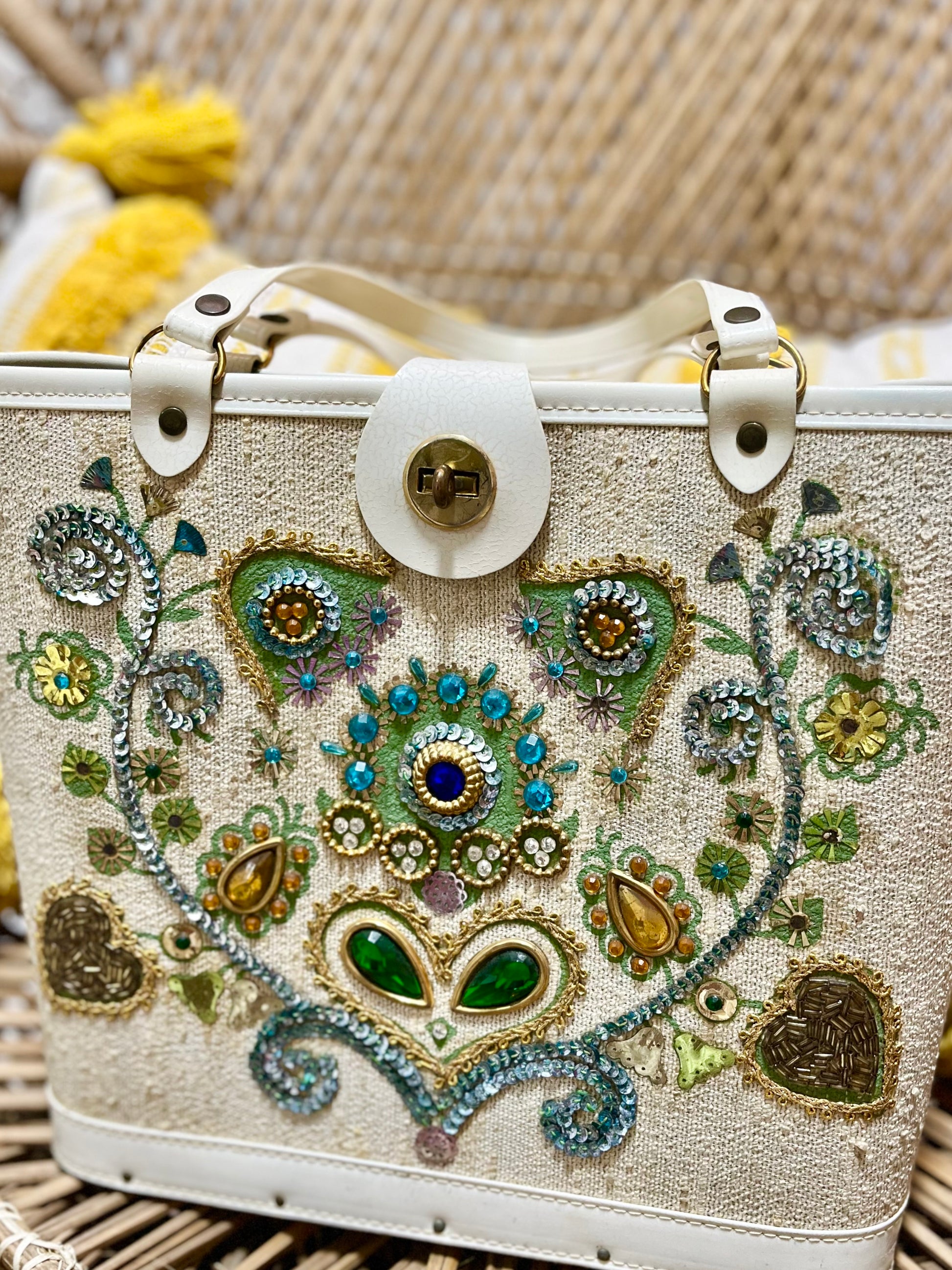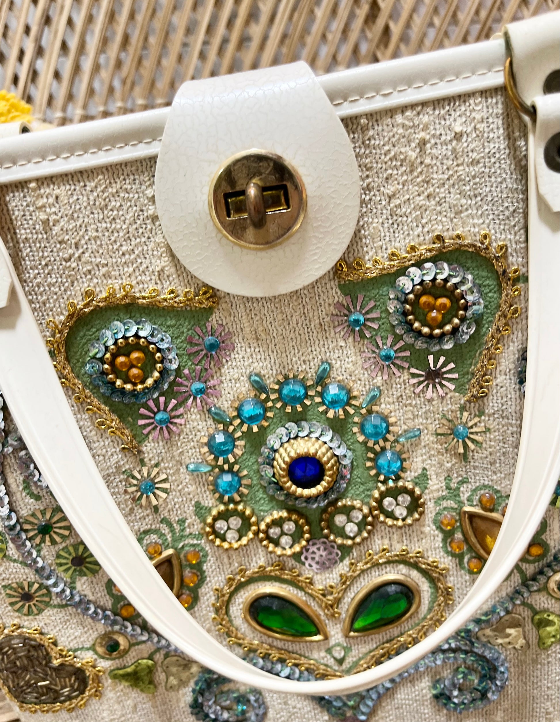 Vintage 60s Enid Collins Style Beaded Floral Purse