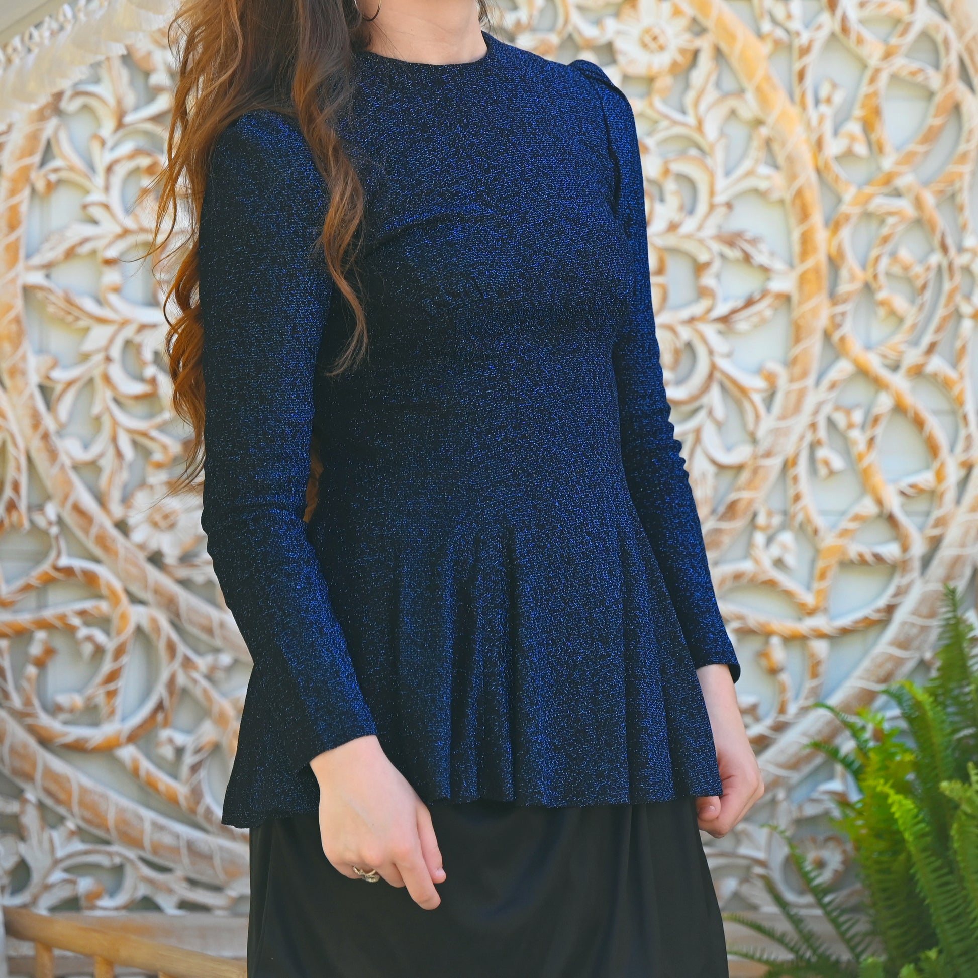 Vintage 60s Empire Metallic Electric Blue Lurex Peplum Top