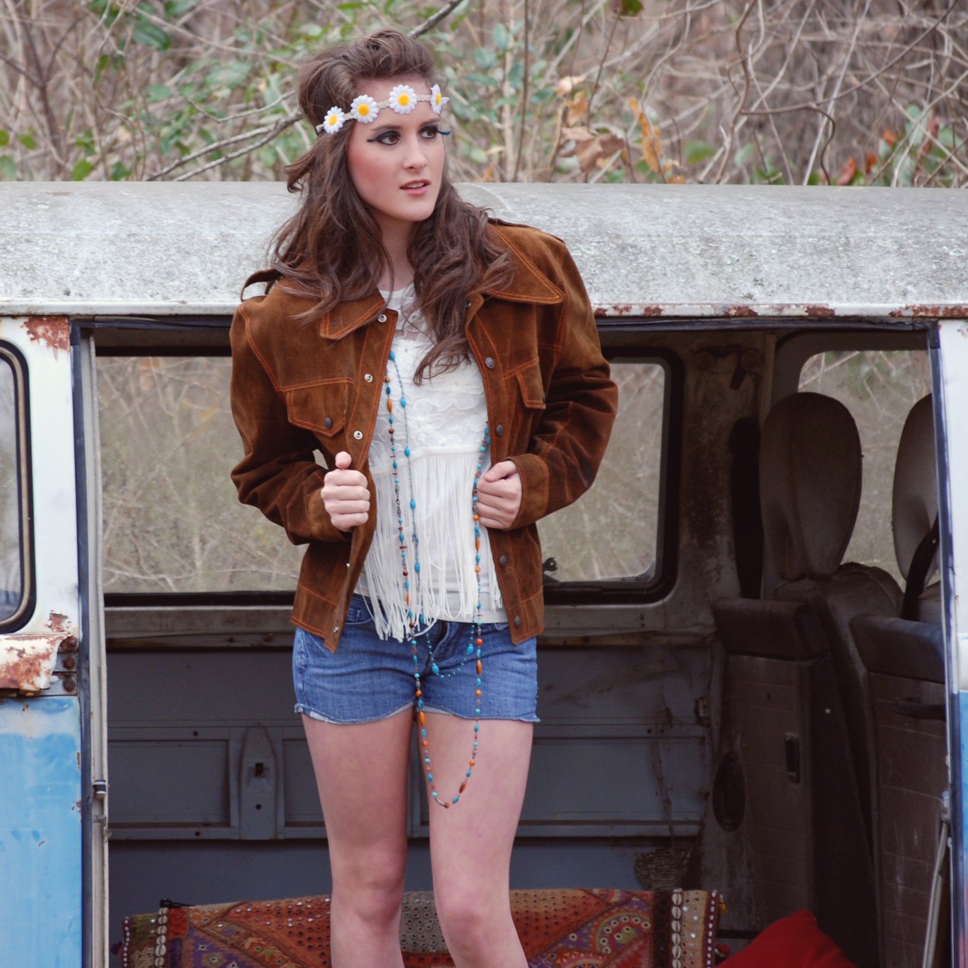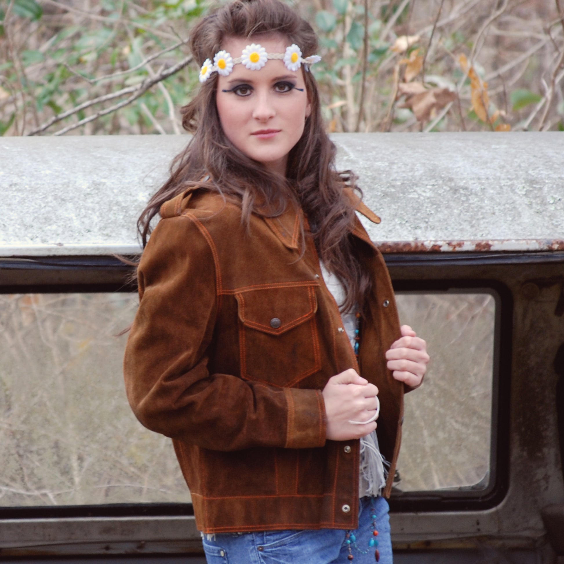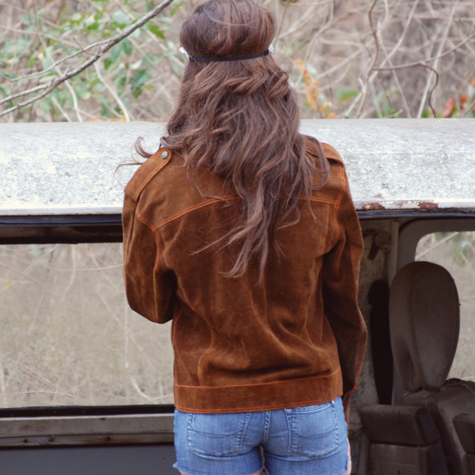 Vintage 60s Hippie Chocolate Suede Dagger Collar Jacket Coat