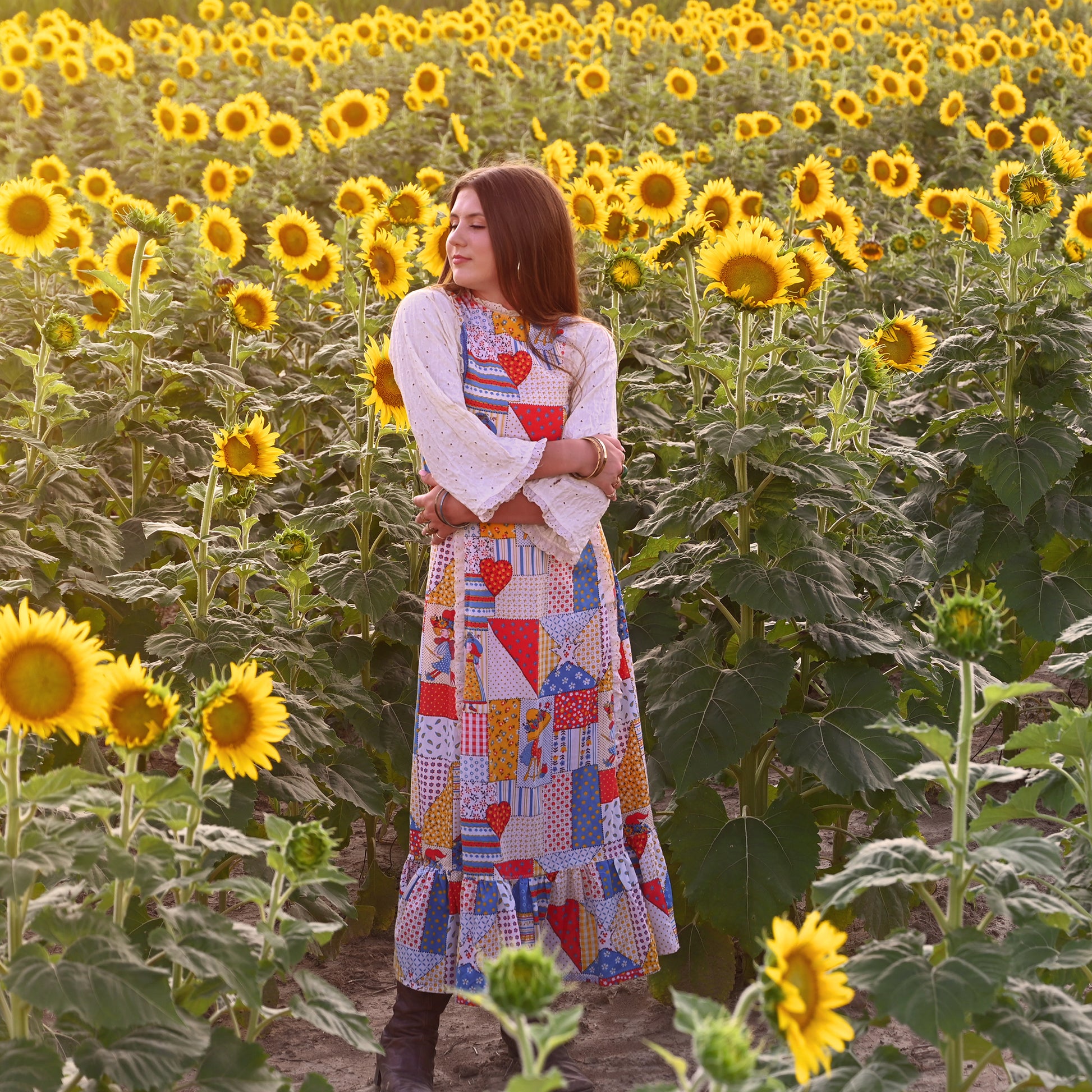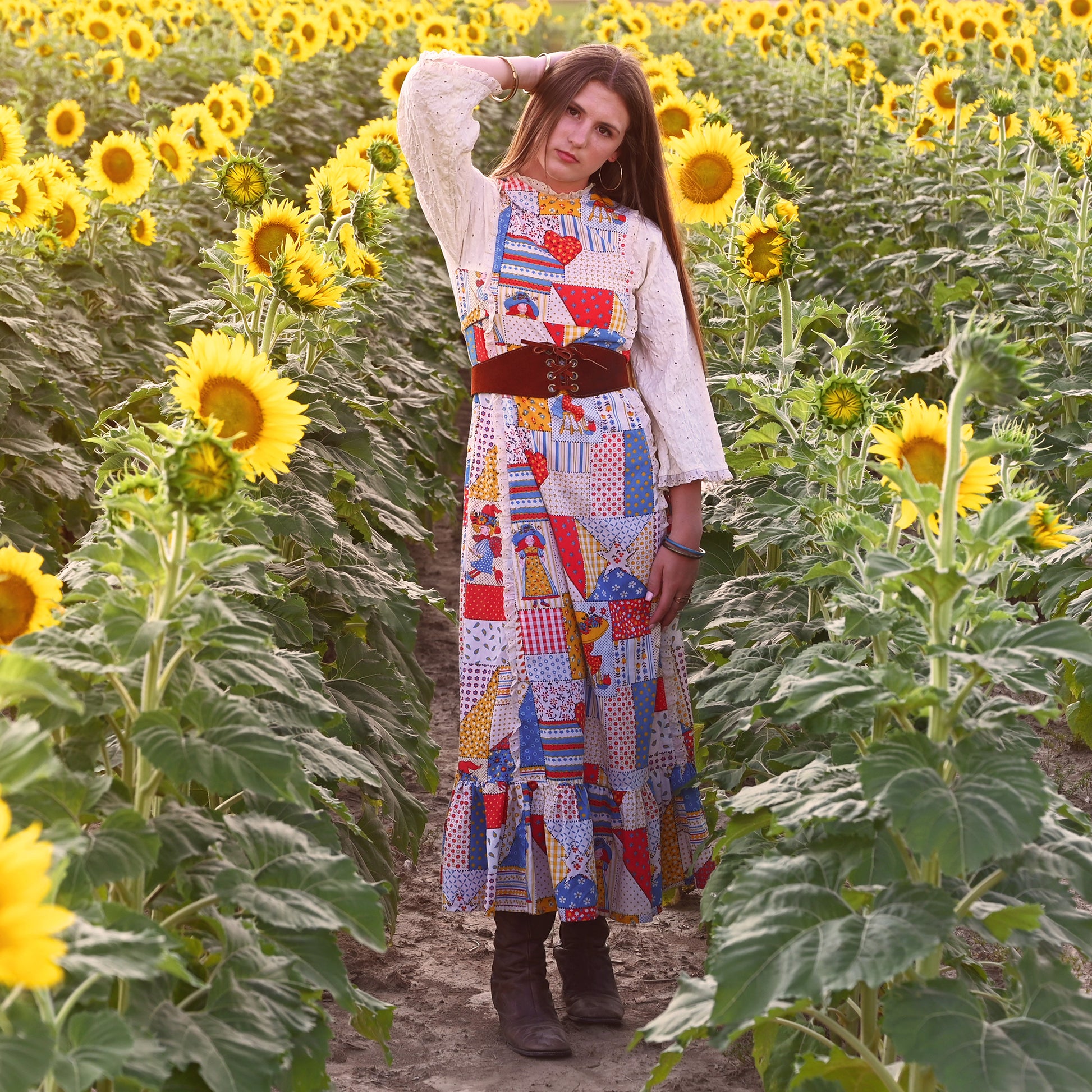 Vintage 60s Hollie Hobbie Patchwork Eyelet Midi Dress