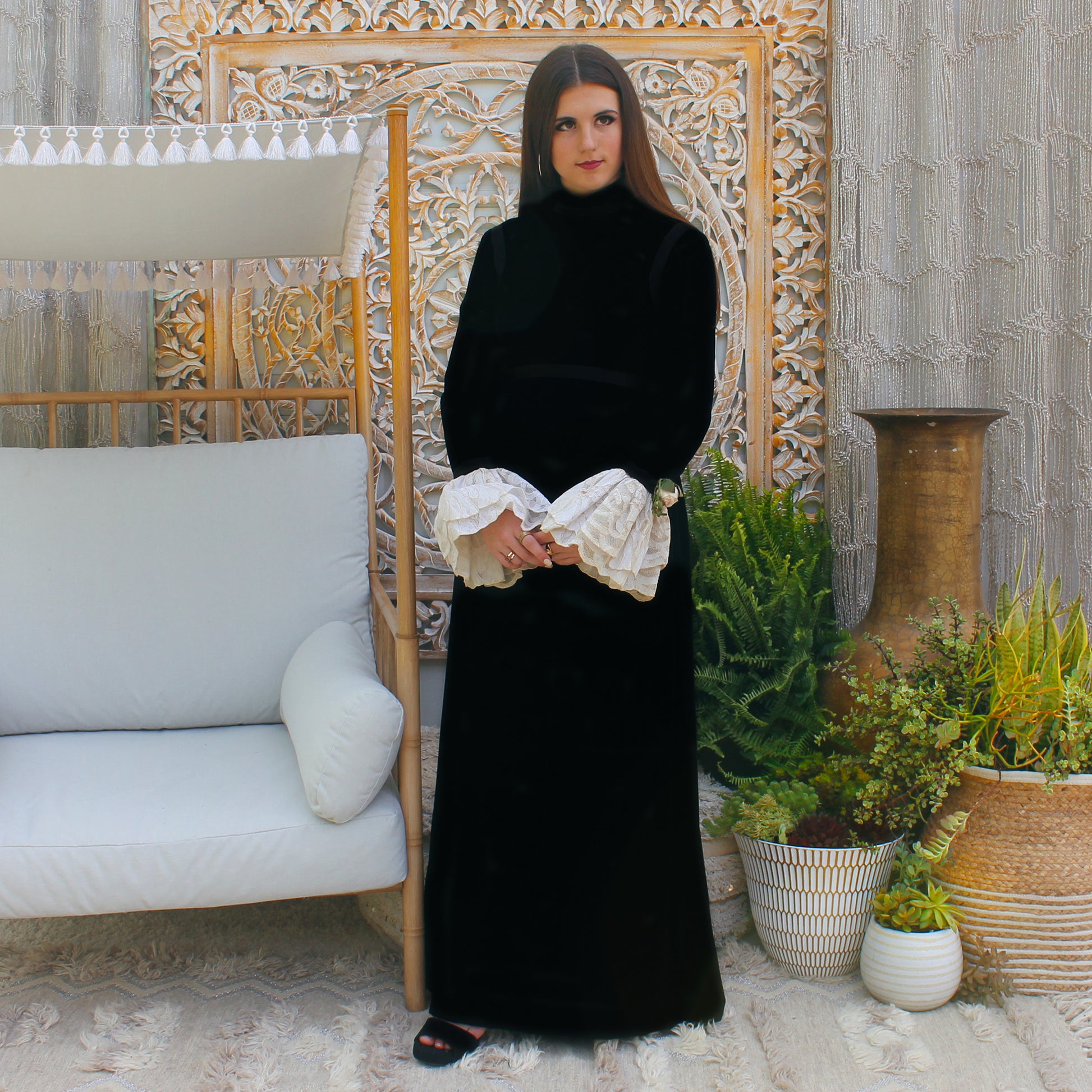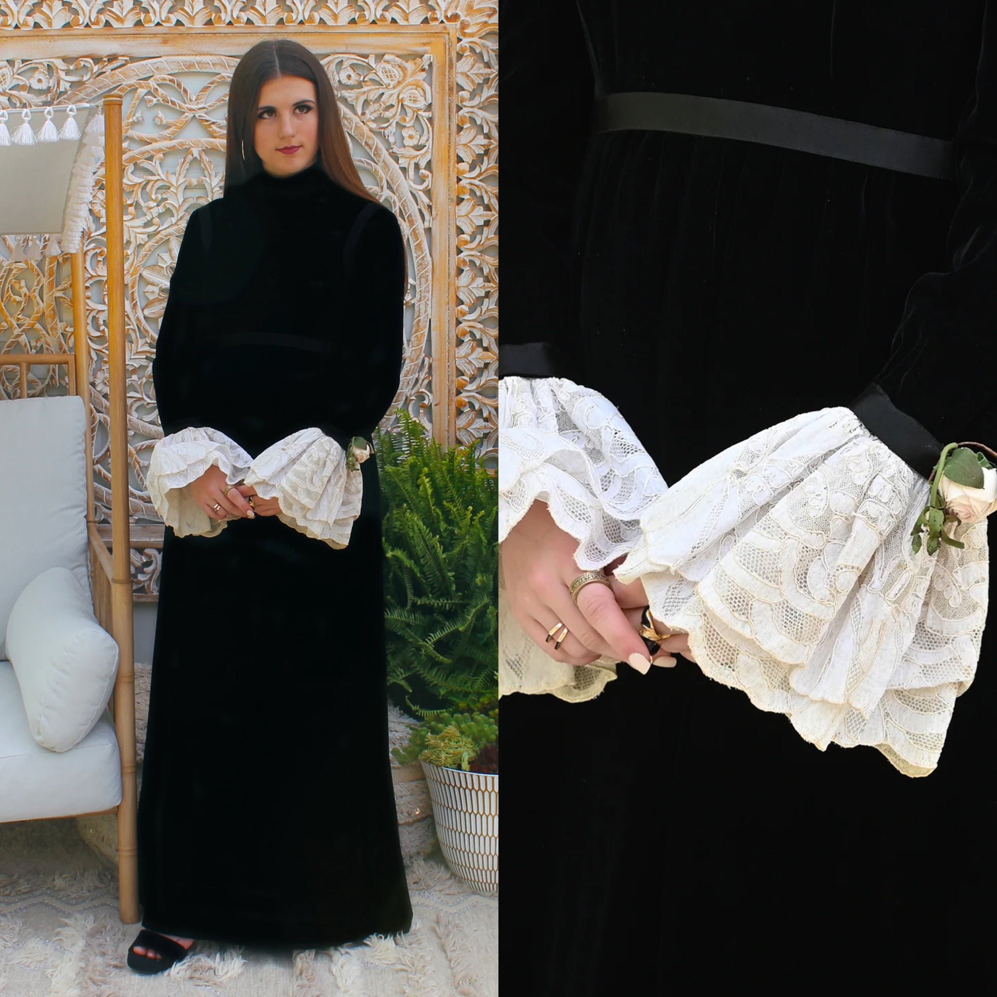 Double ruffle lace on the sleeves.