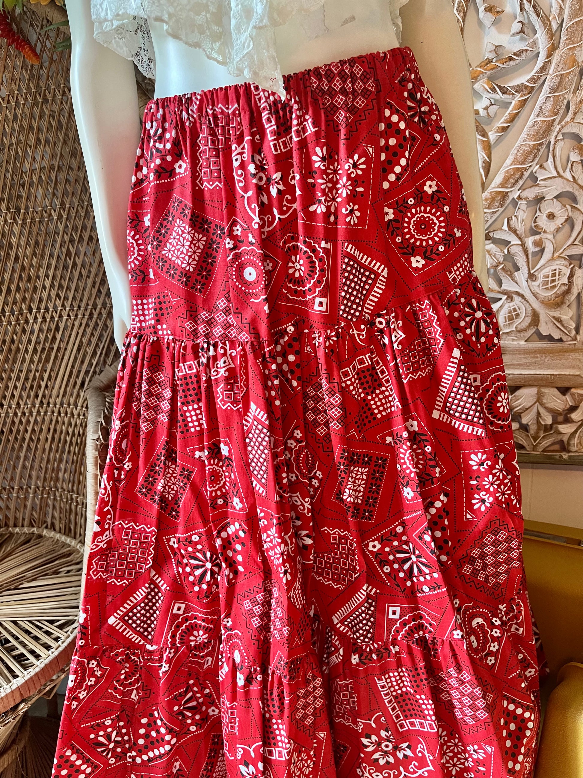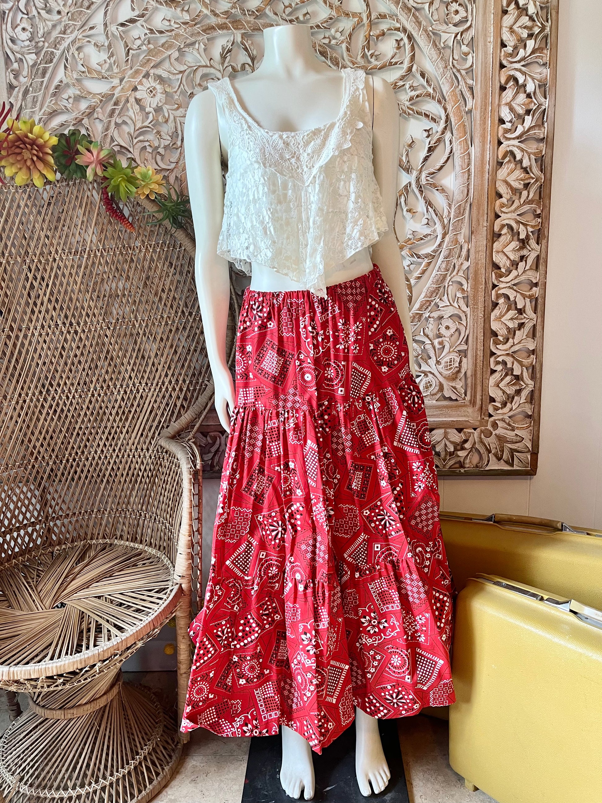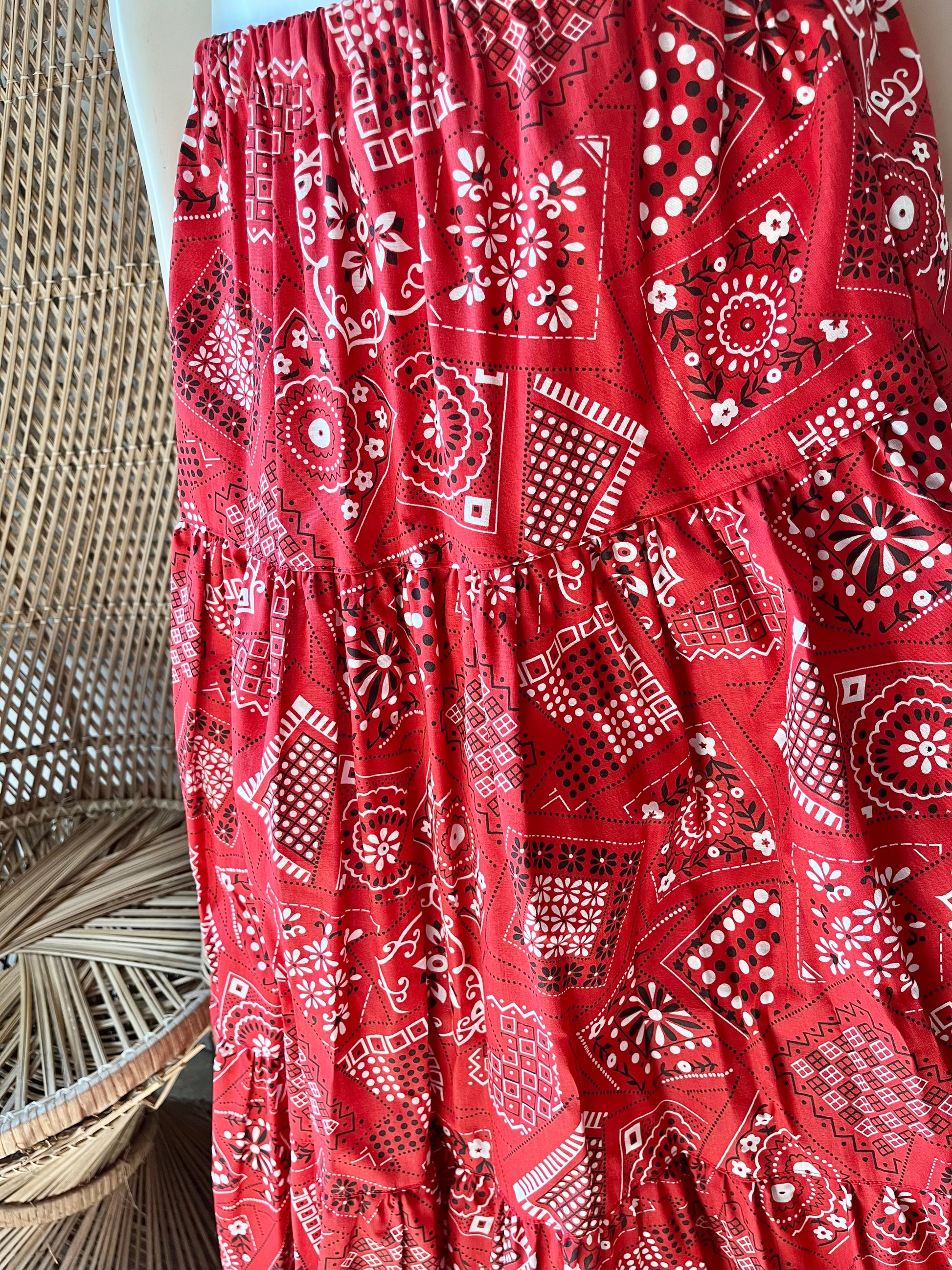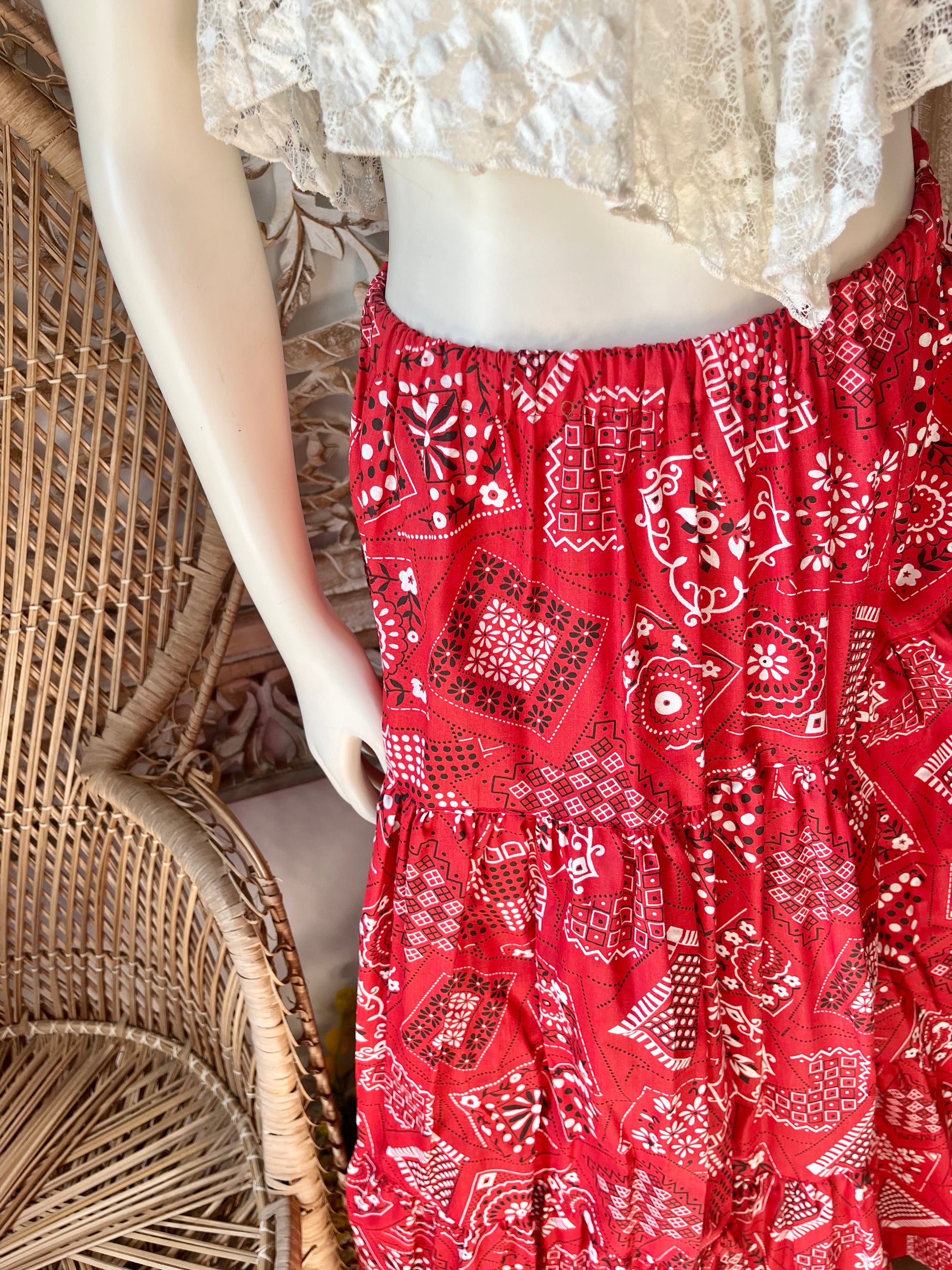 Vintage 70s Bandana Tiered Ruffle Maxi Skirt