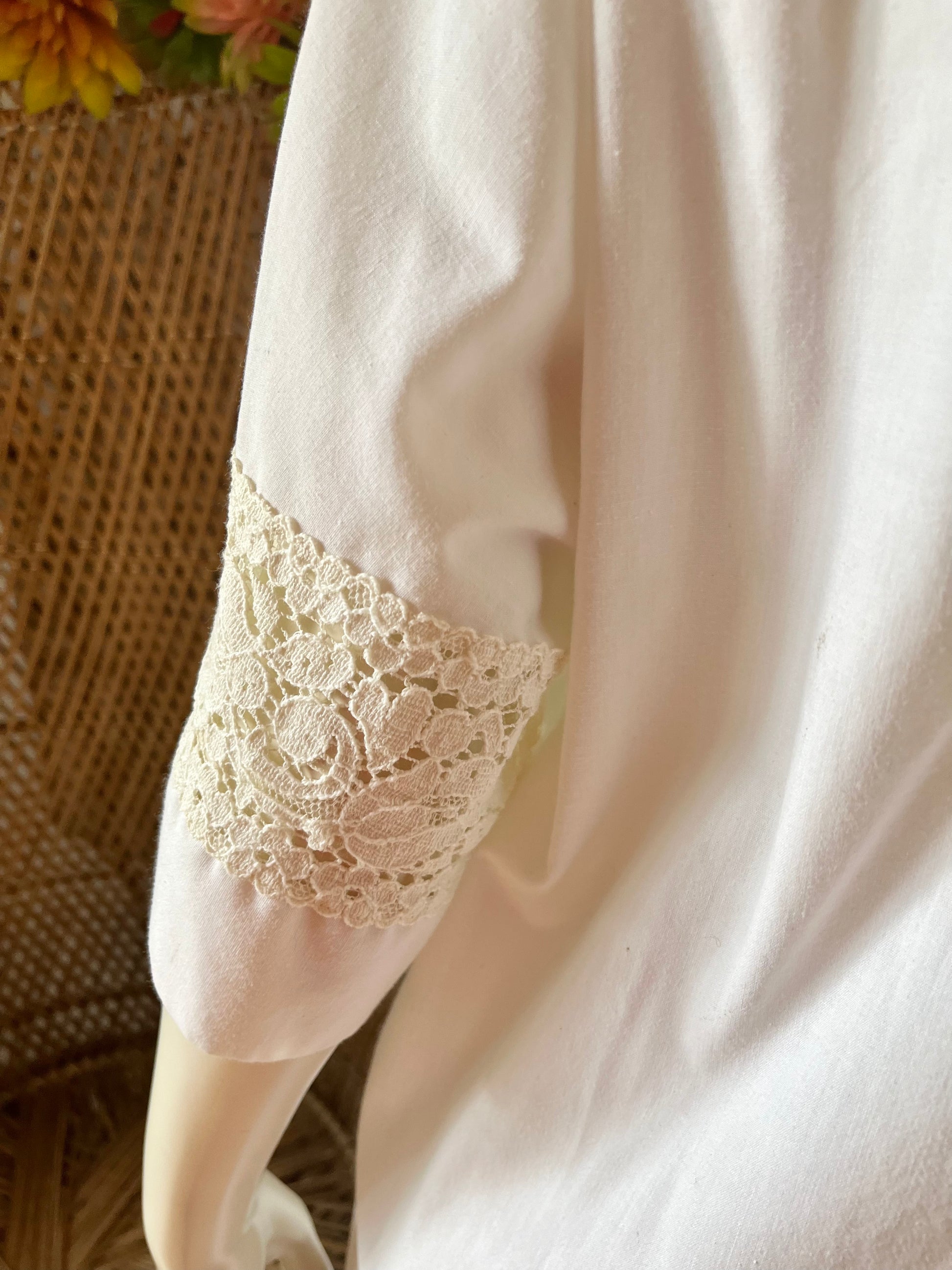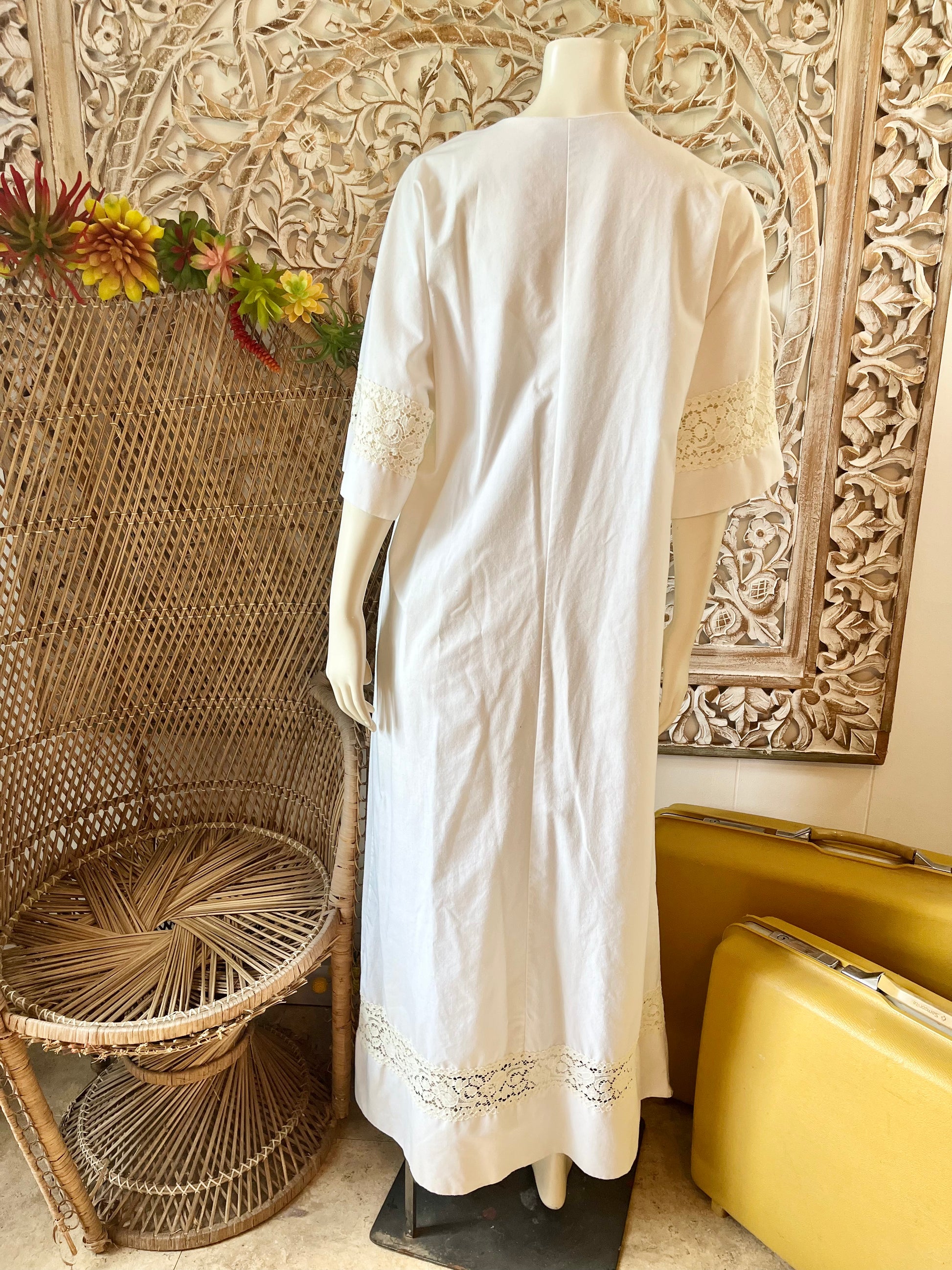 Vintage 70s Beige Bohemian Hippie Lace Caftan Dress L