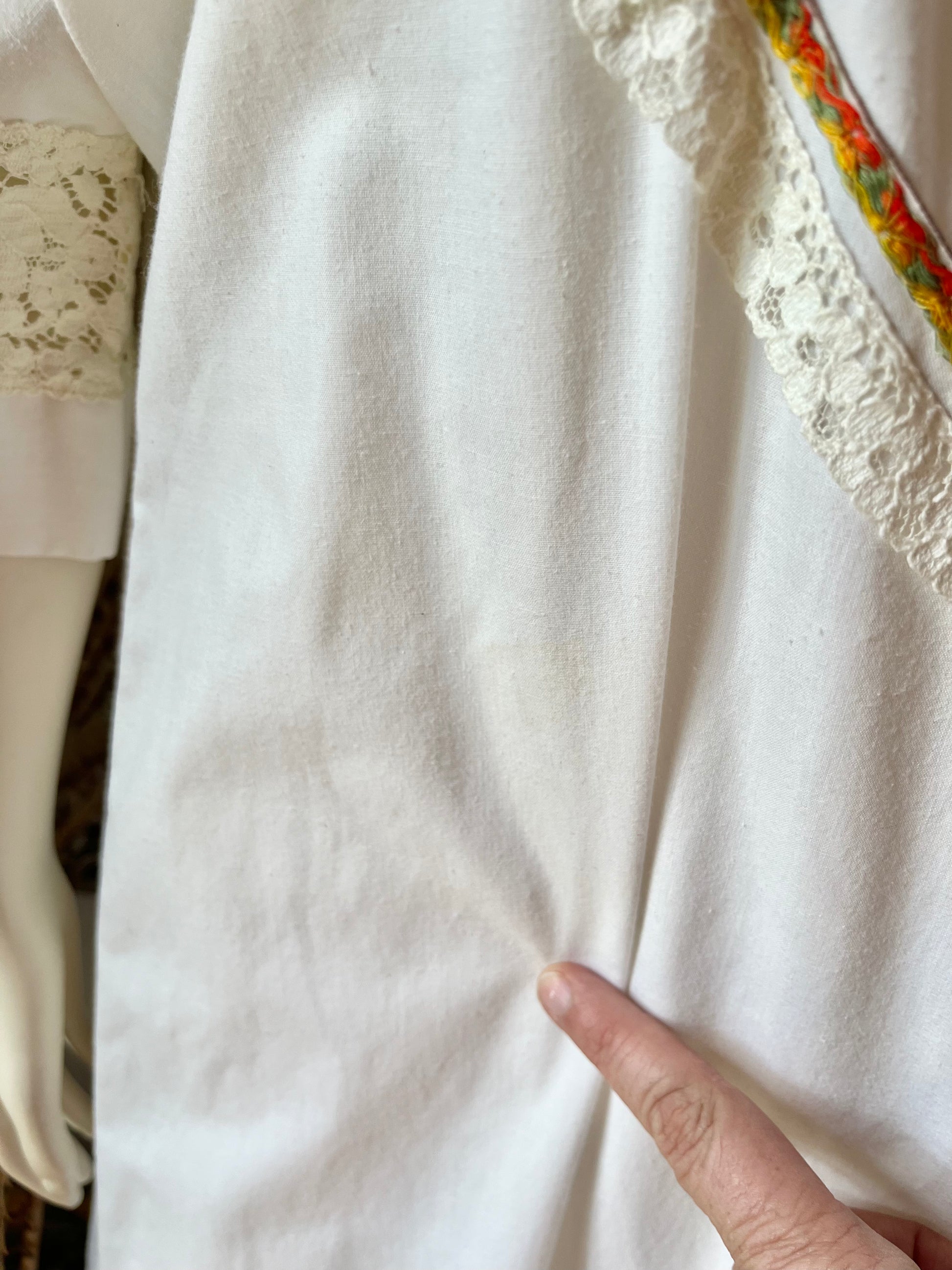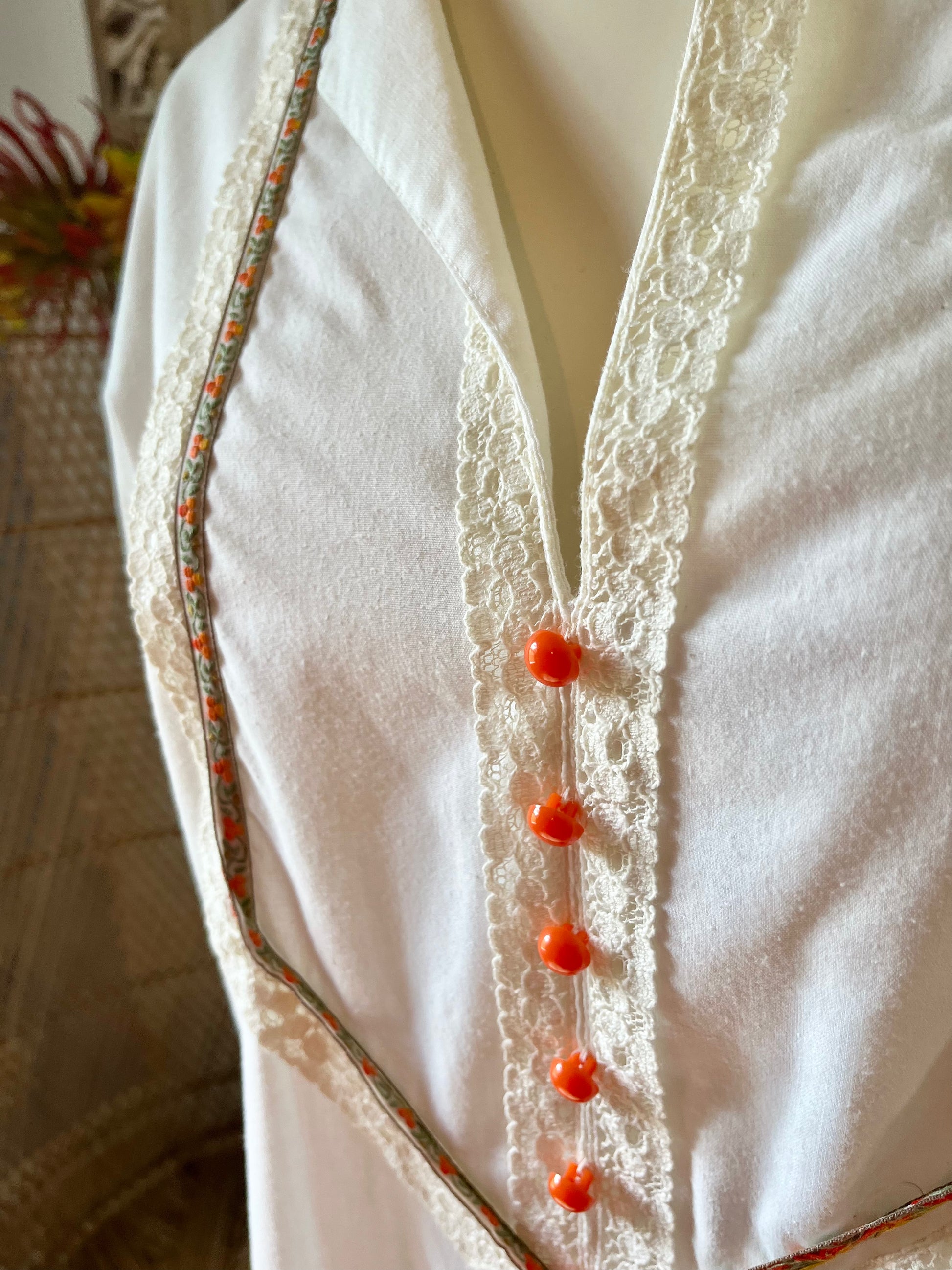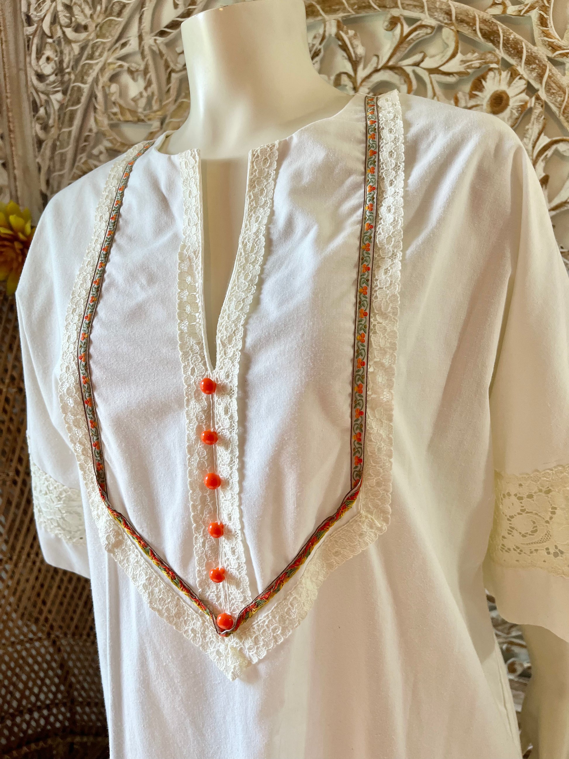 Vintage 70s Beige Bohemian Hippie Lace Caftan Dress