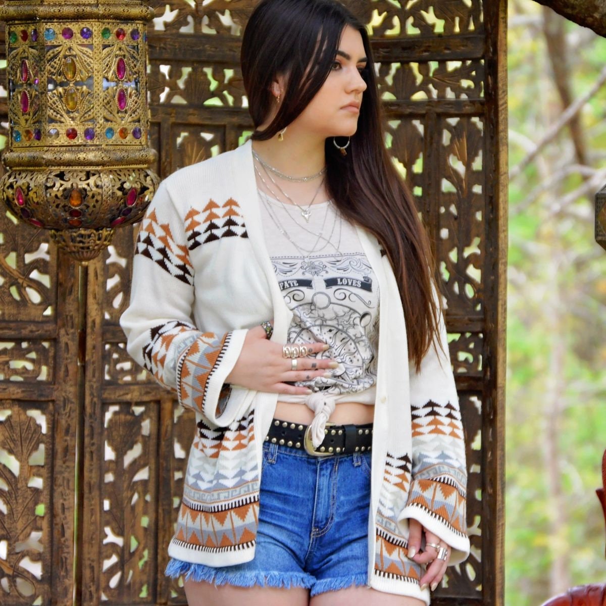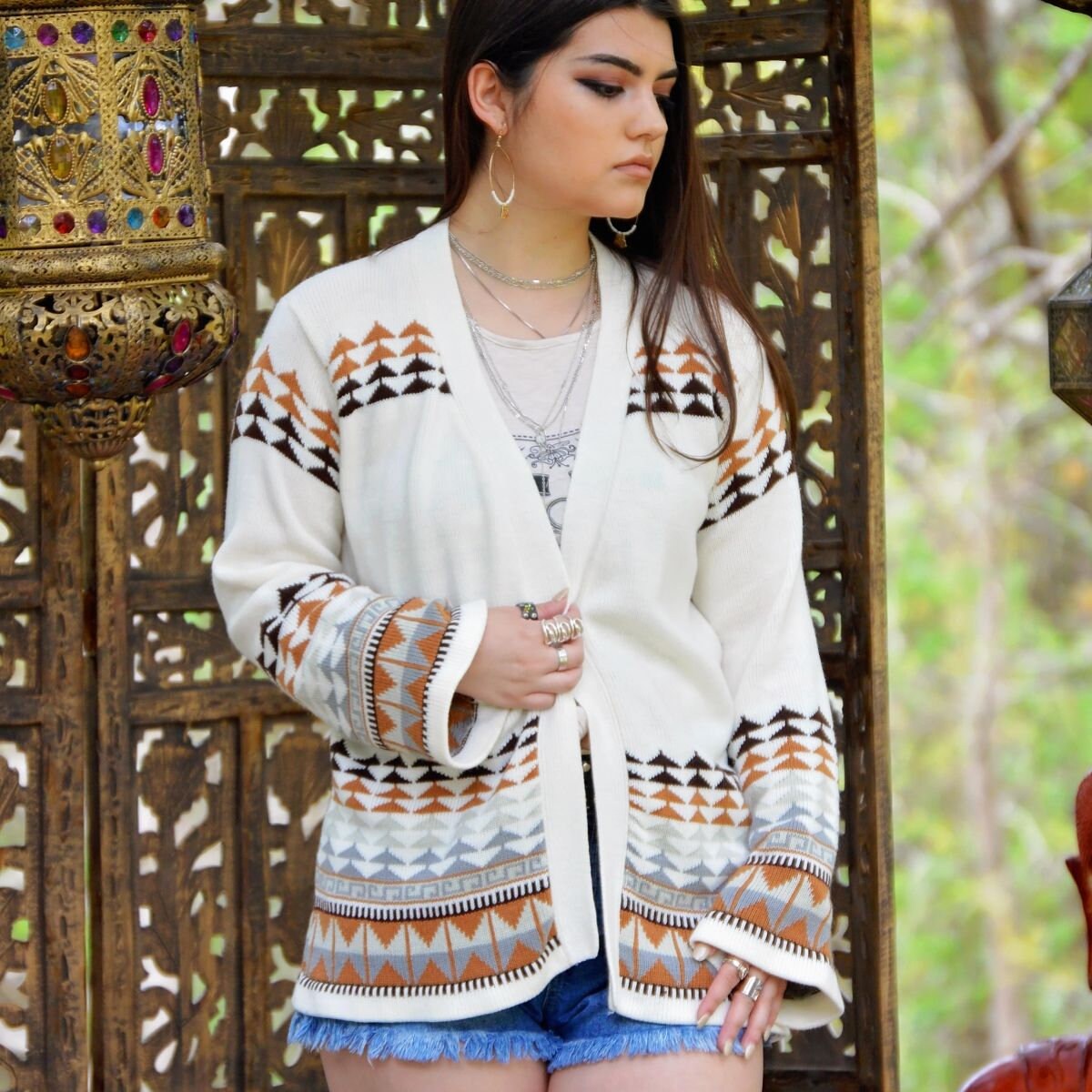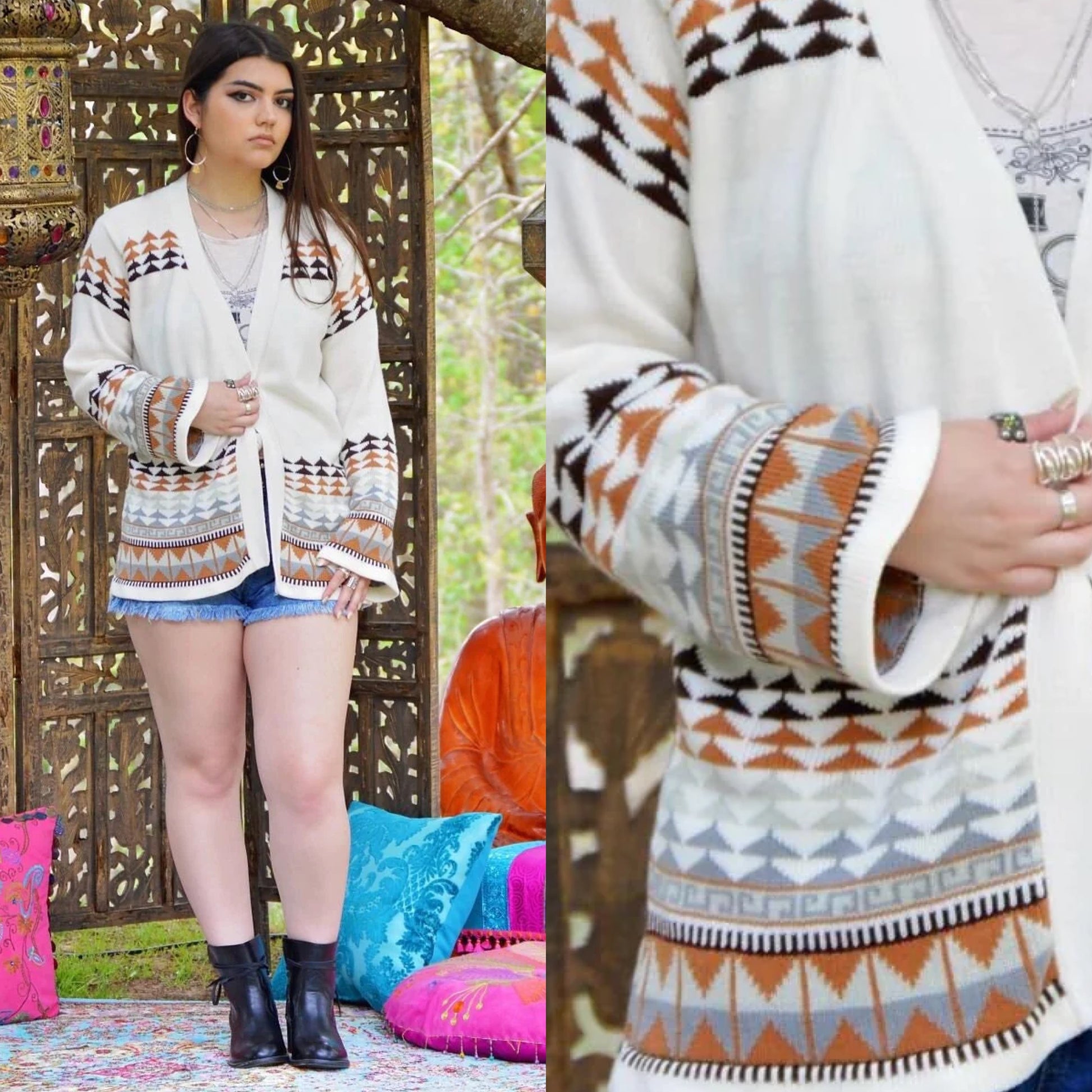 Vintage 70s Bohemian Tribal Cardigan Sweater Jacket L