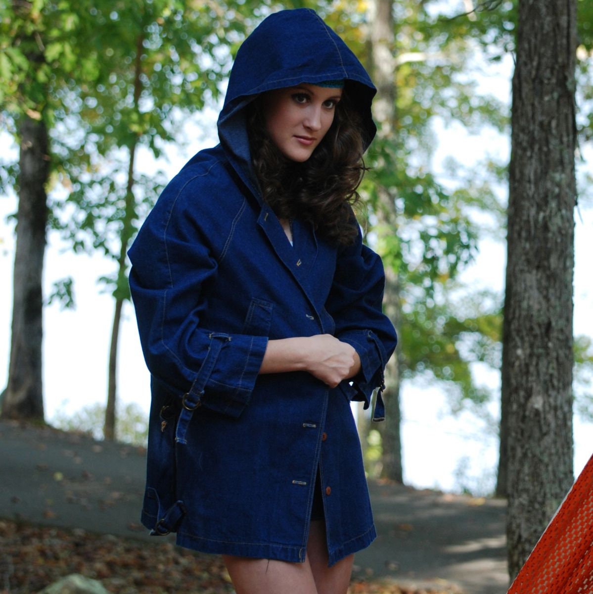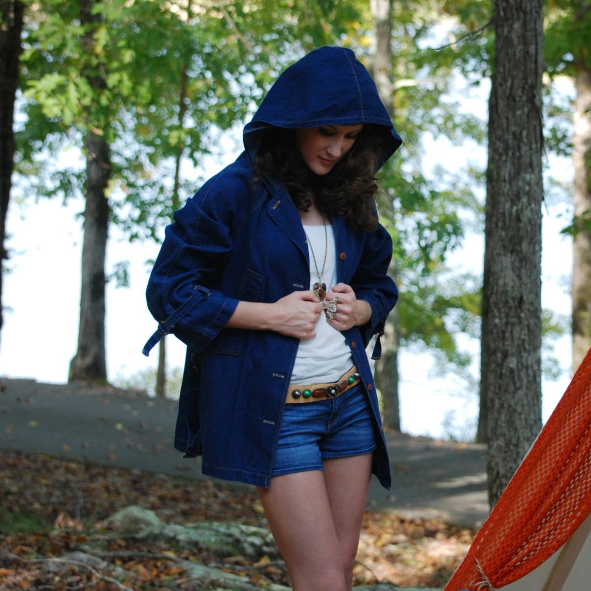 Vintage 70s Denim Hooded Buckle Sleeve Jacket