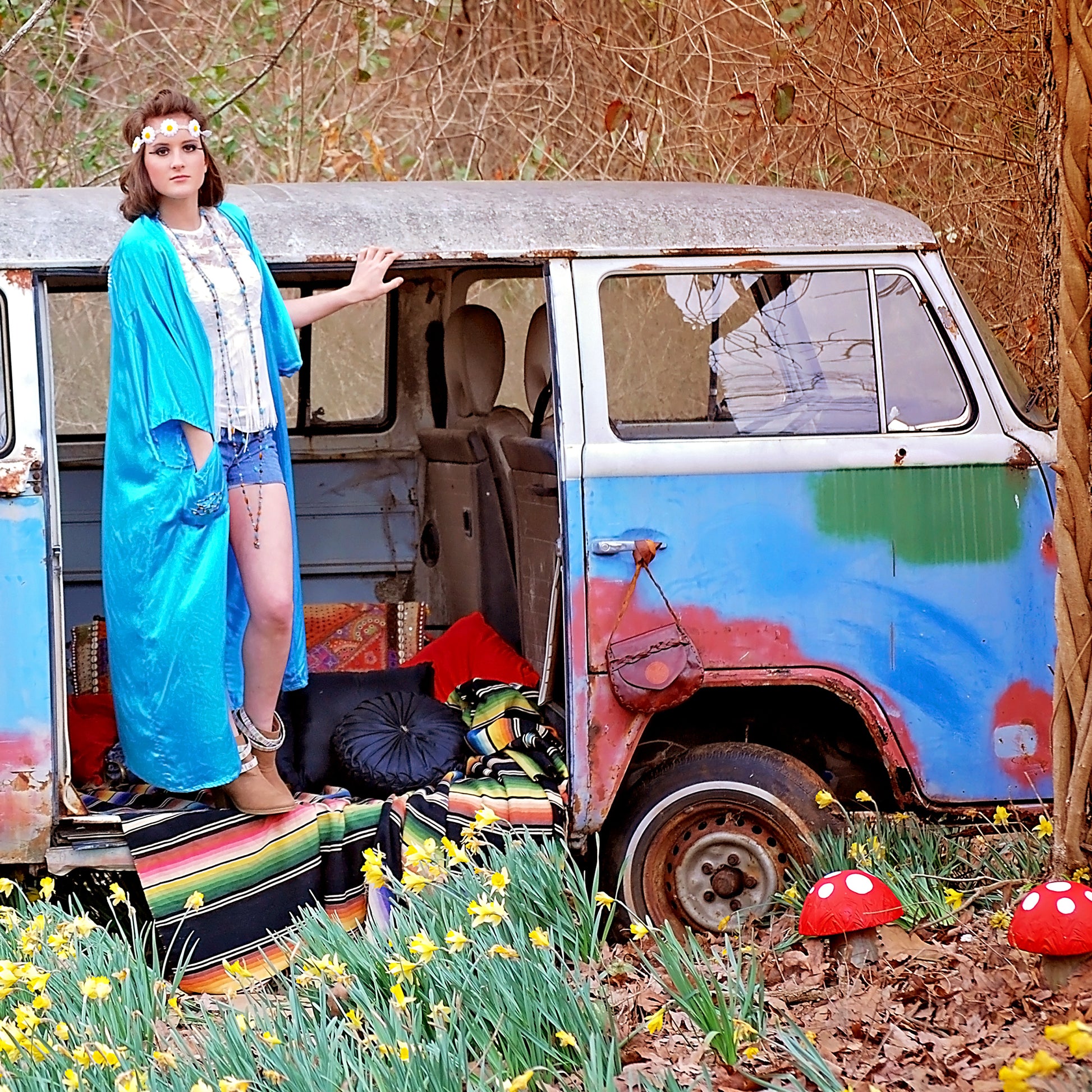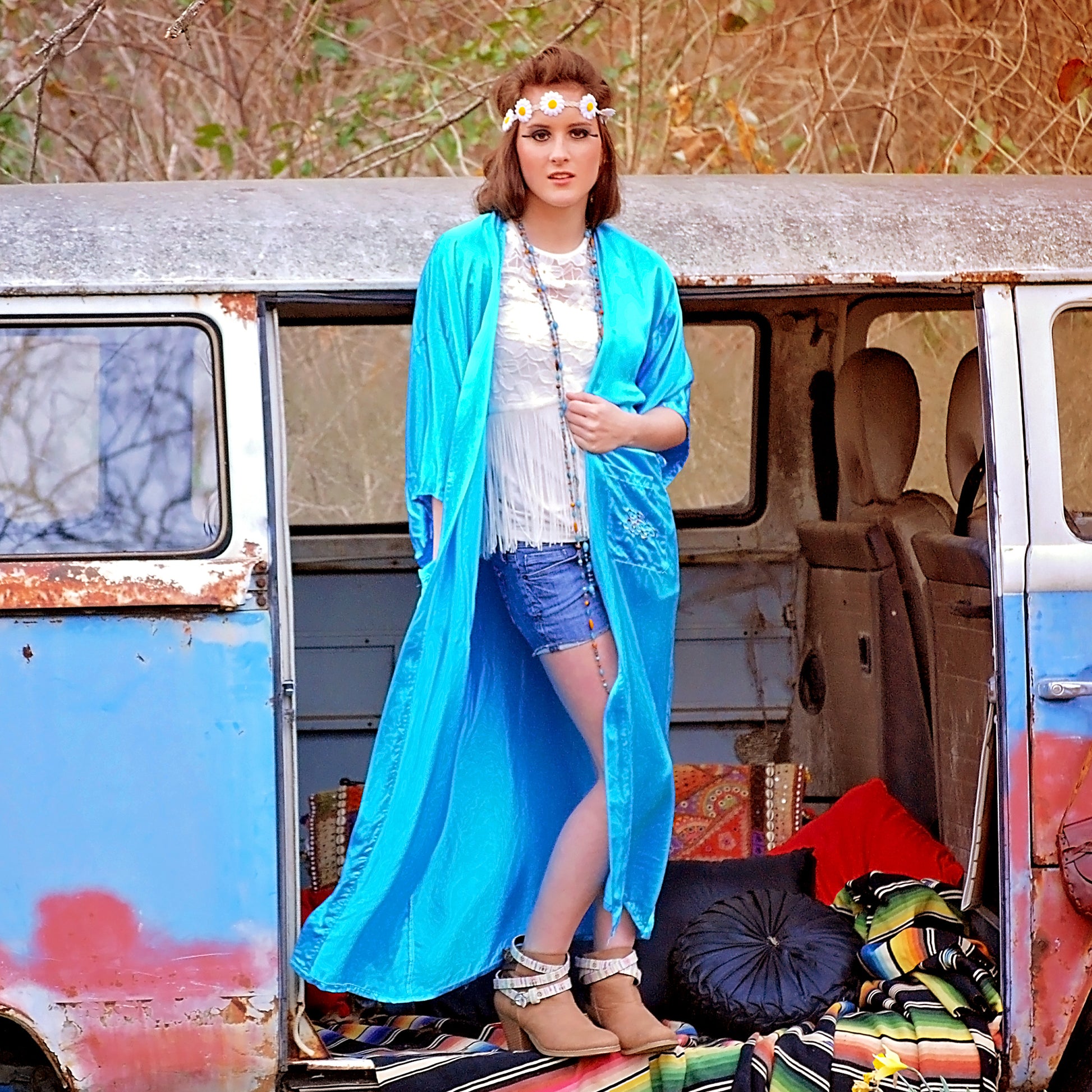 Vintage 70s Embroidered Blue Dragon Robe Duster Jacket