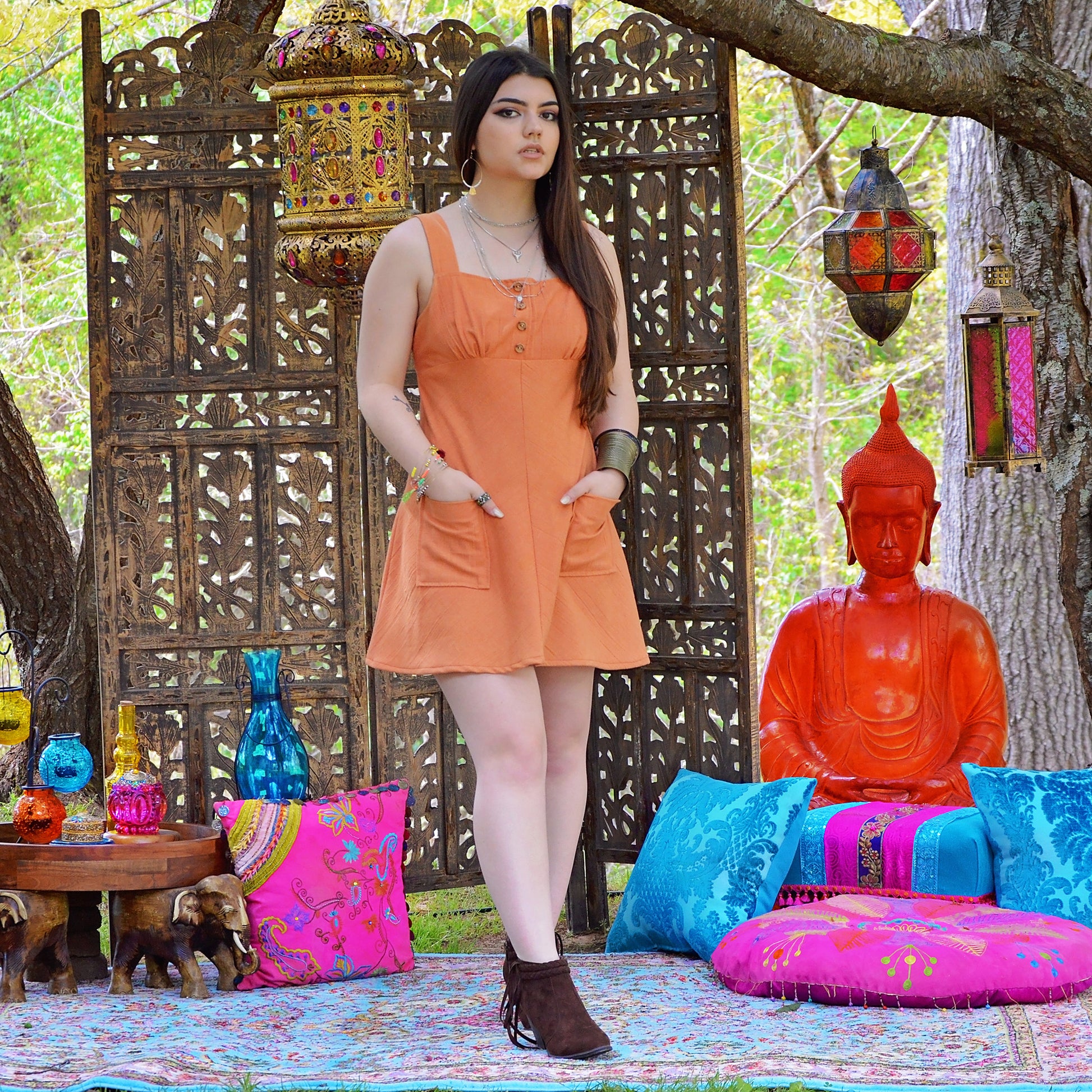 Vintage 70s Fall Empire Hippie Jumper Mini Dress M
