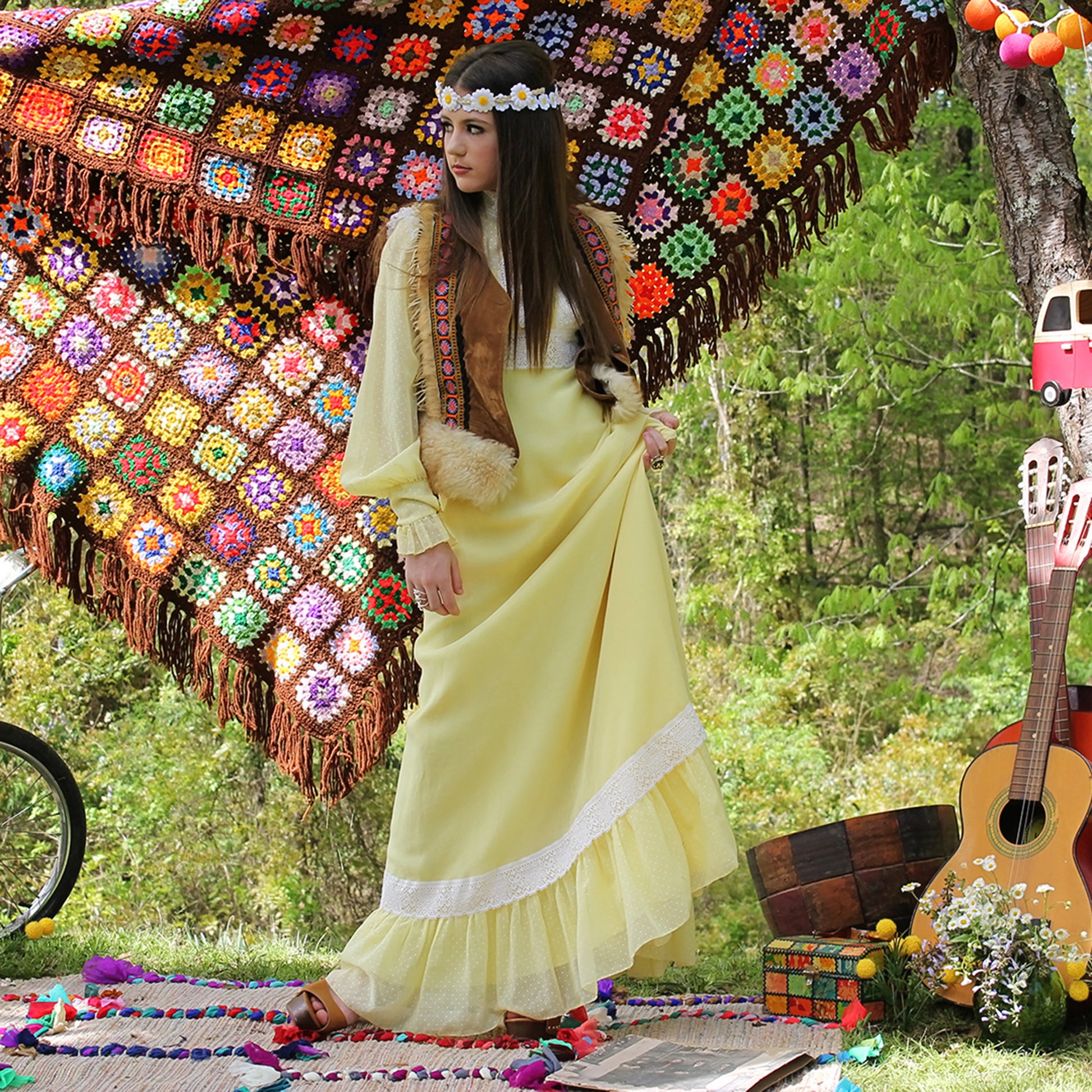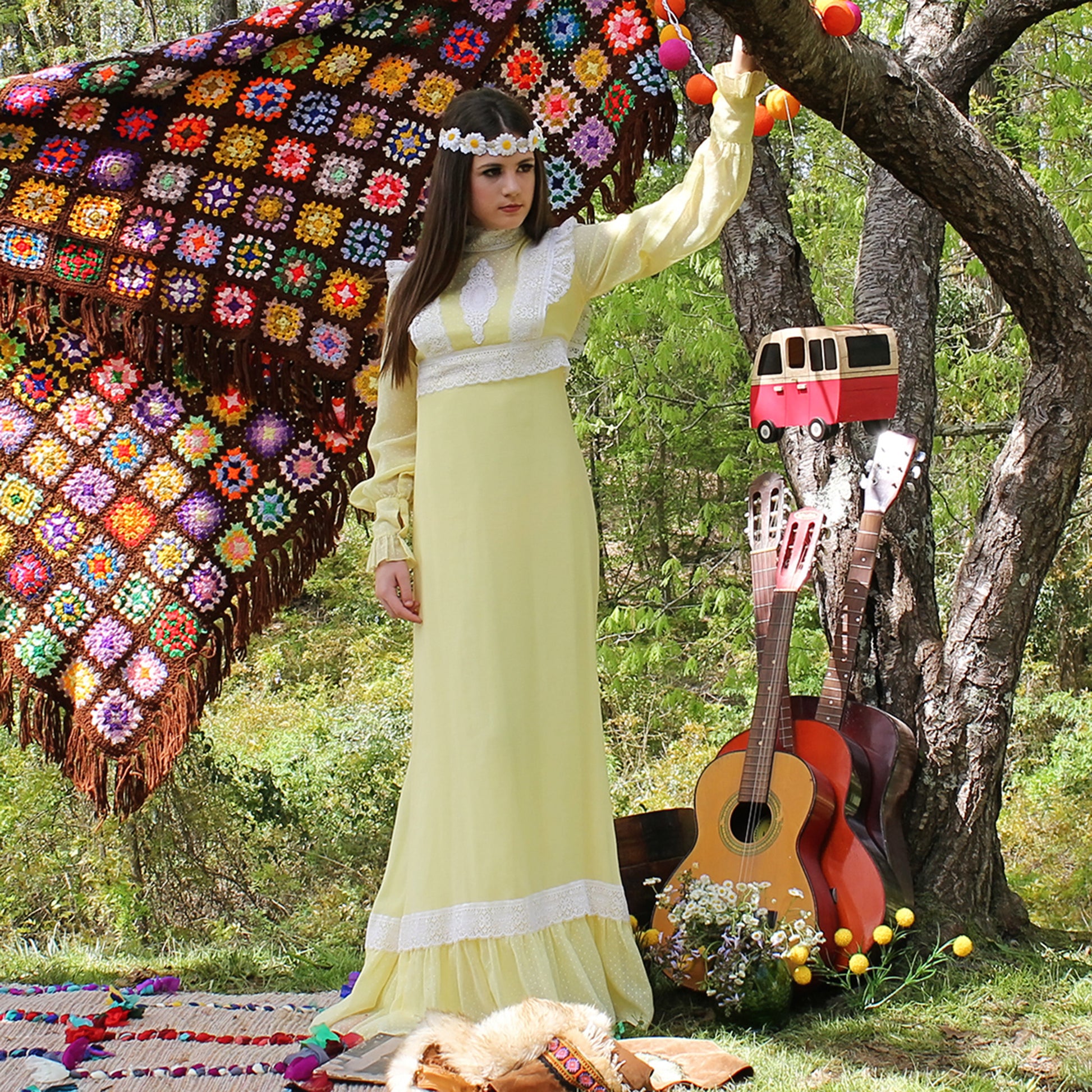 Vintage 70s Empire Lace Gunne Sax Style Yellow Maxi Dress XS