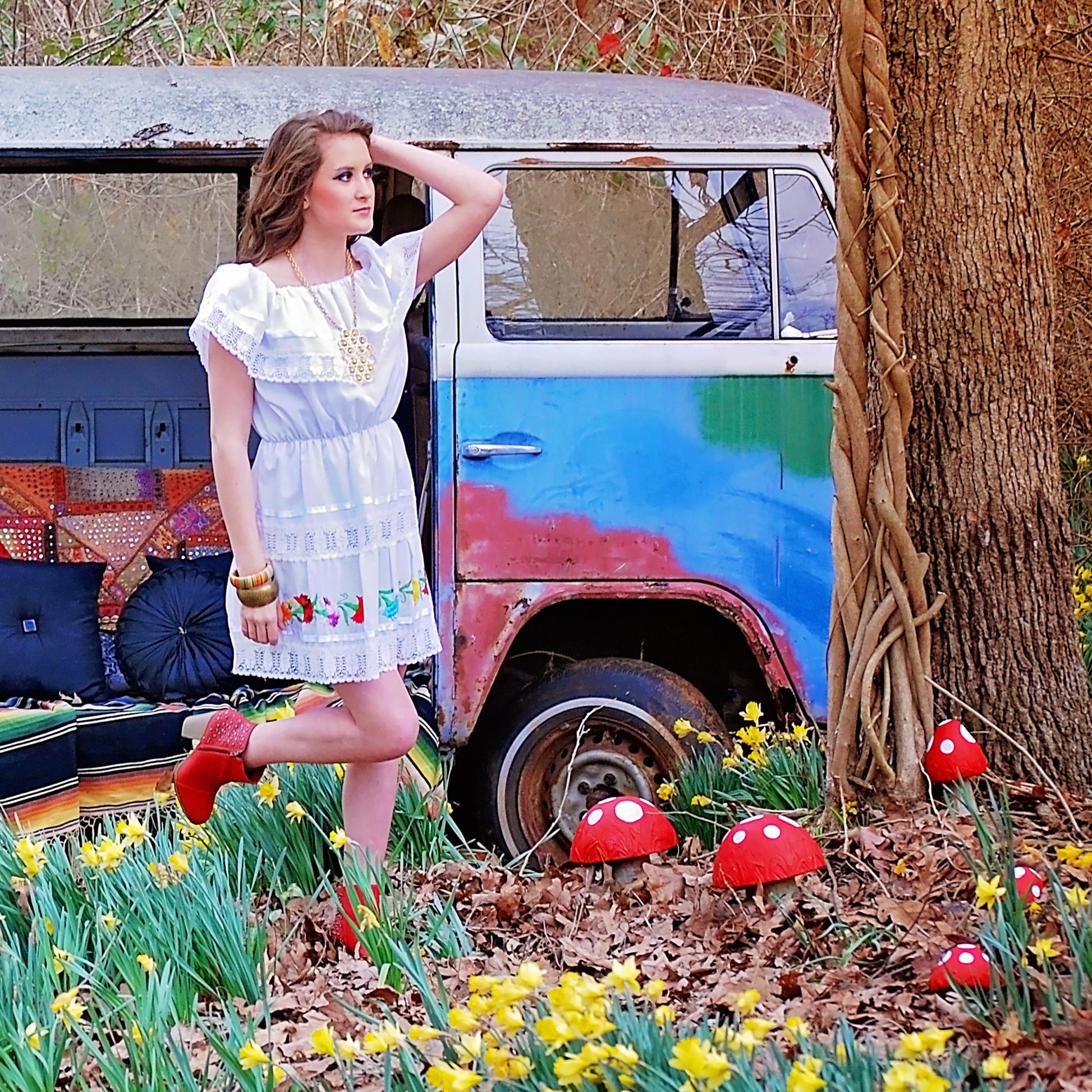Vintage 70s Ethnic Embroidered Lace Mexican Mini Dress