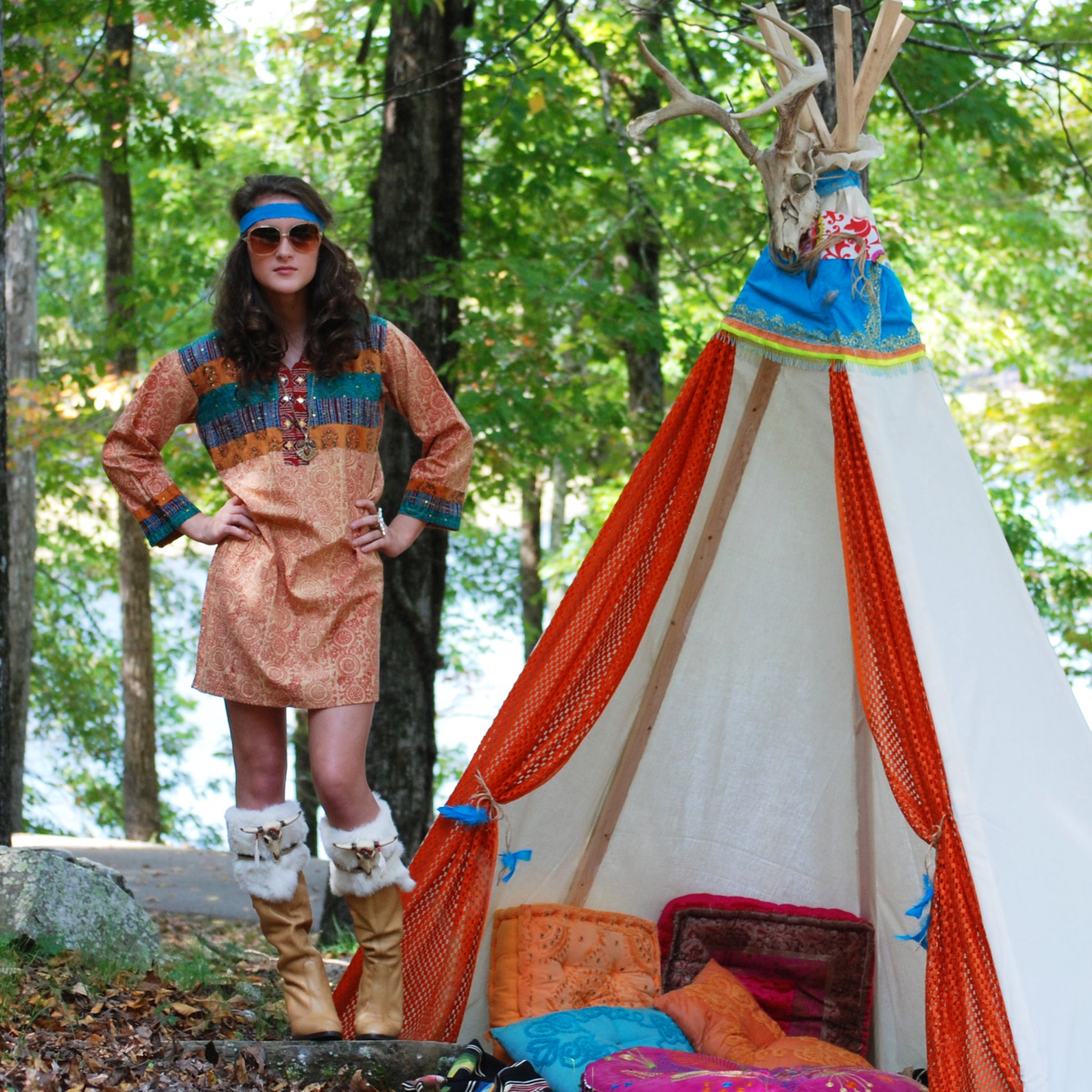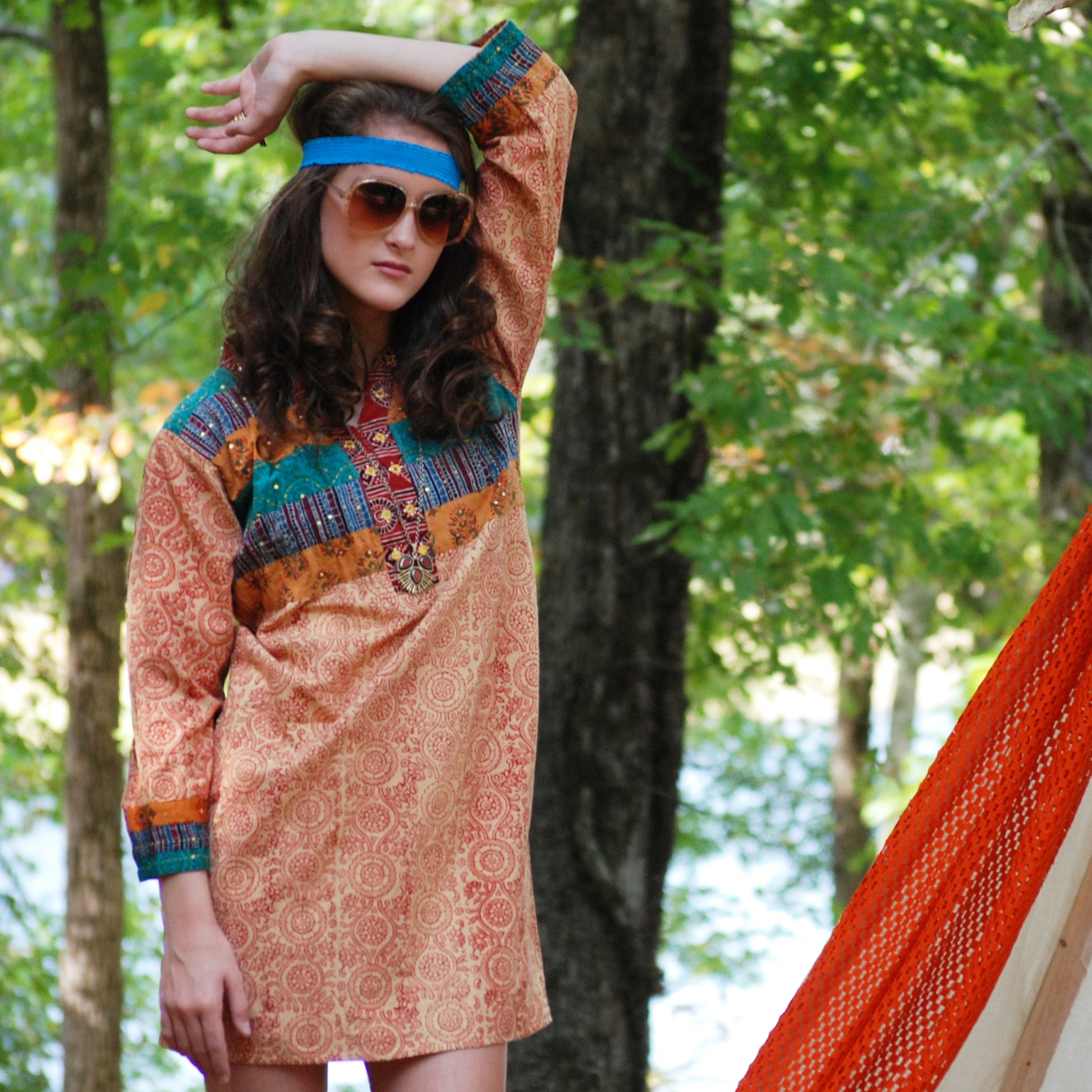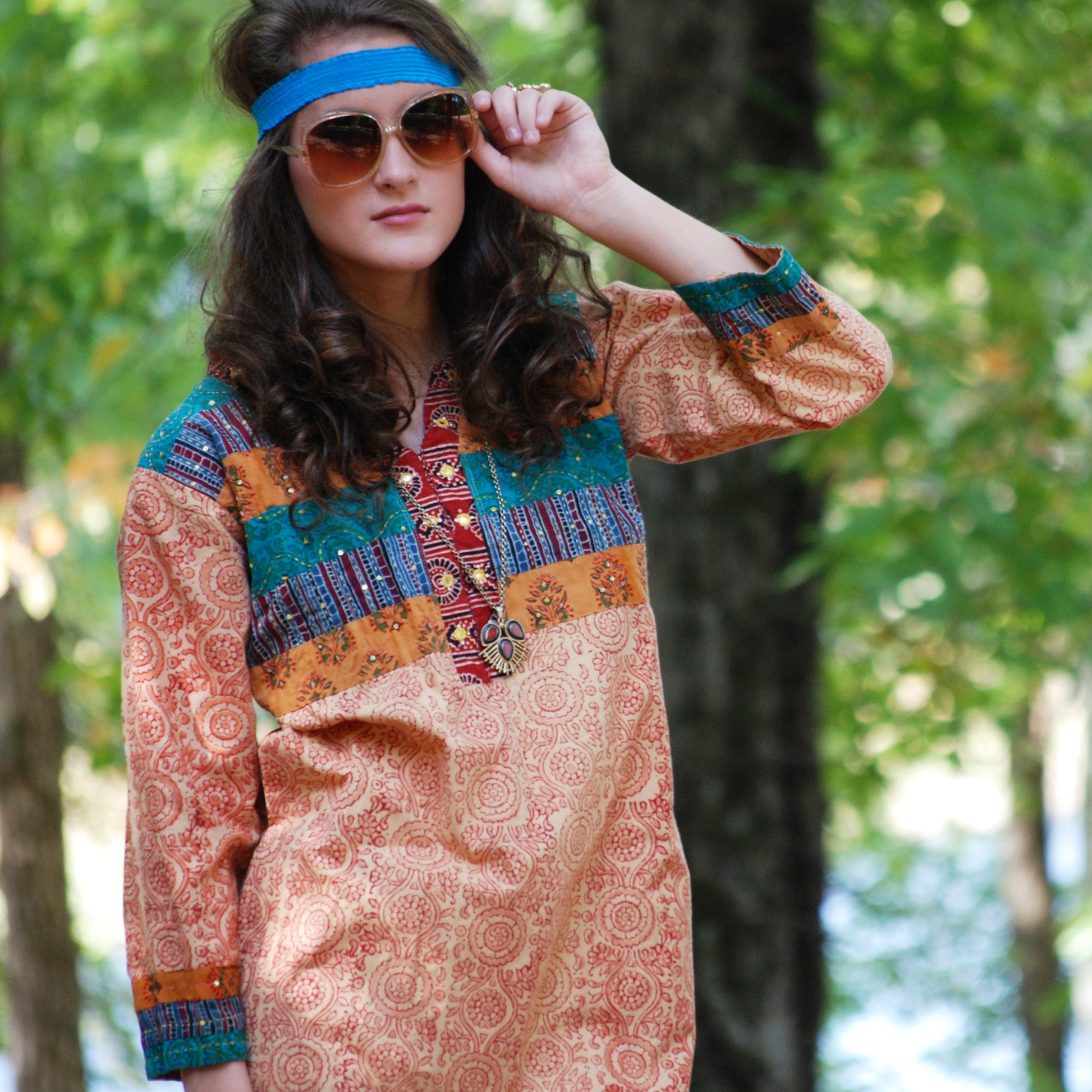 Vintage 70s Ethnic Embroidered Quilted Tunic Mini Dress