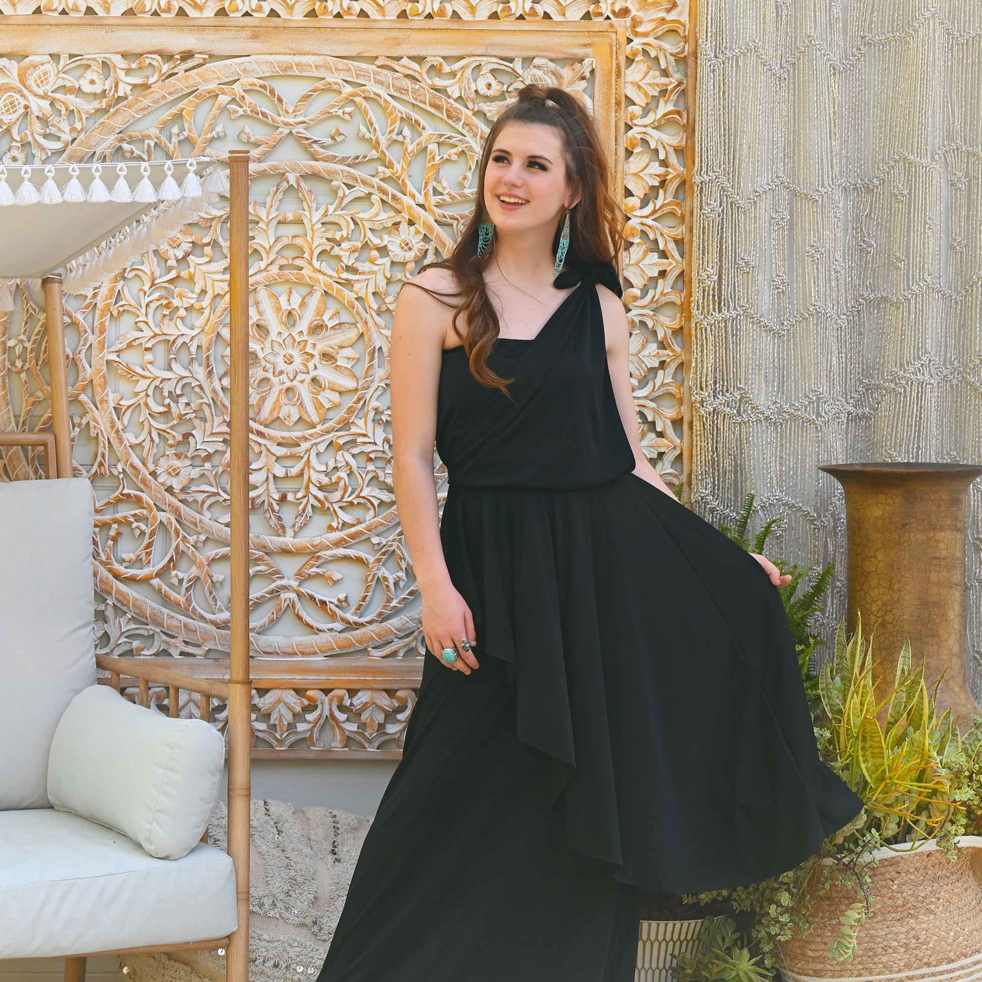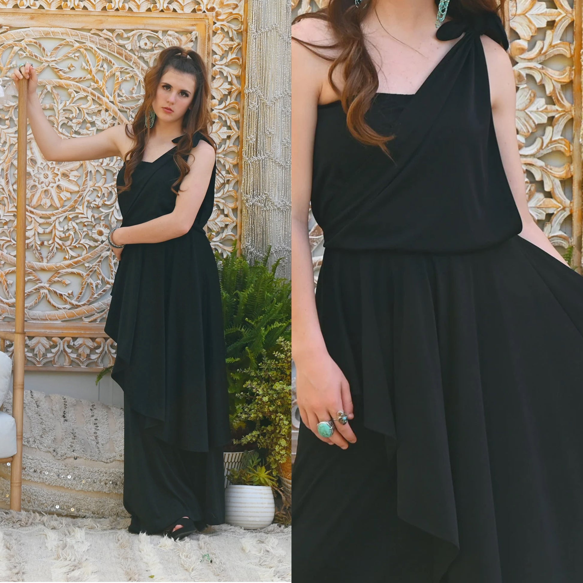 Vintage 70s Grecian Goddess Peplum Evening Maxi Dress