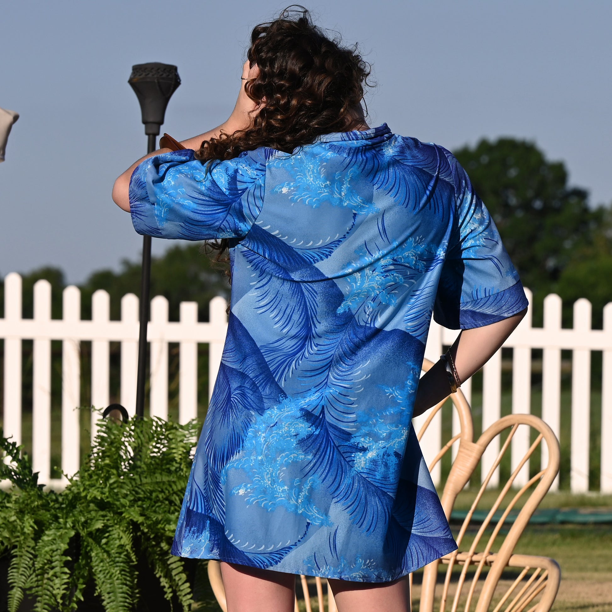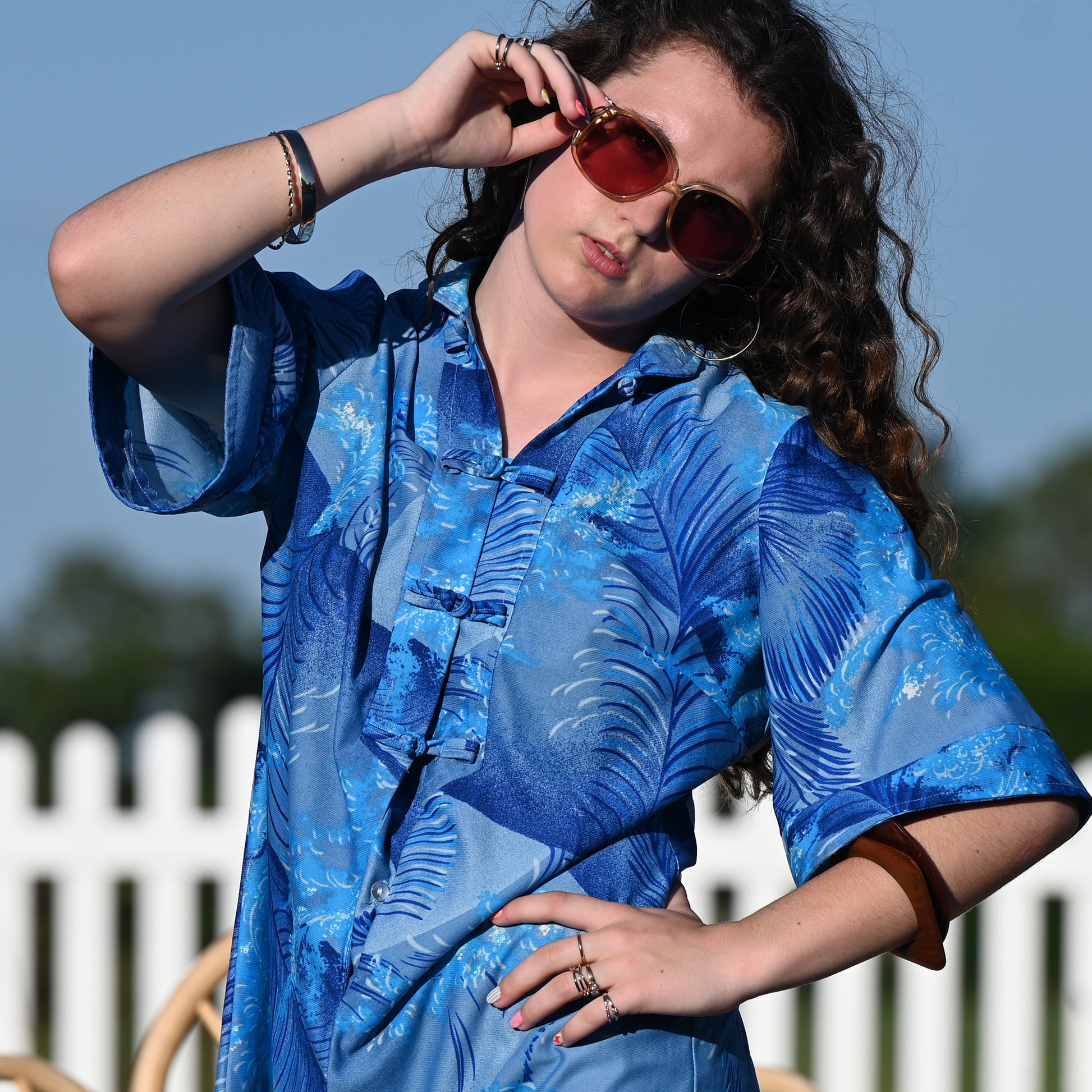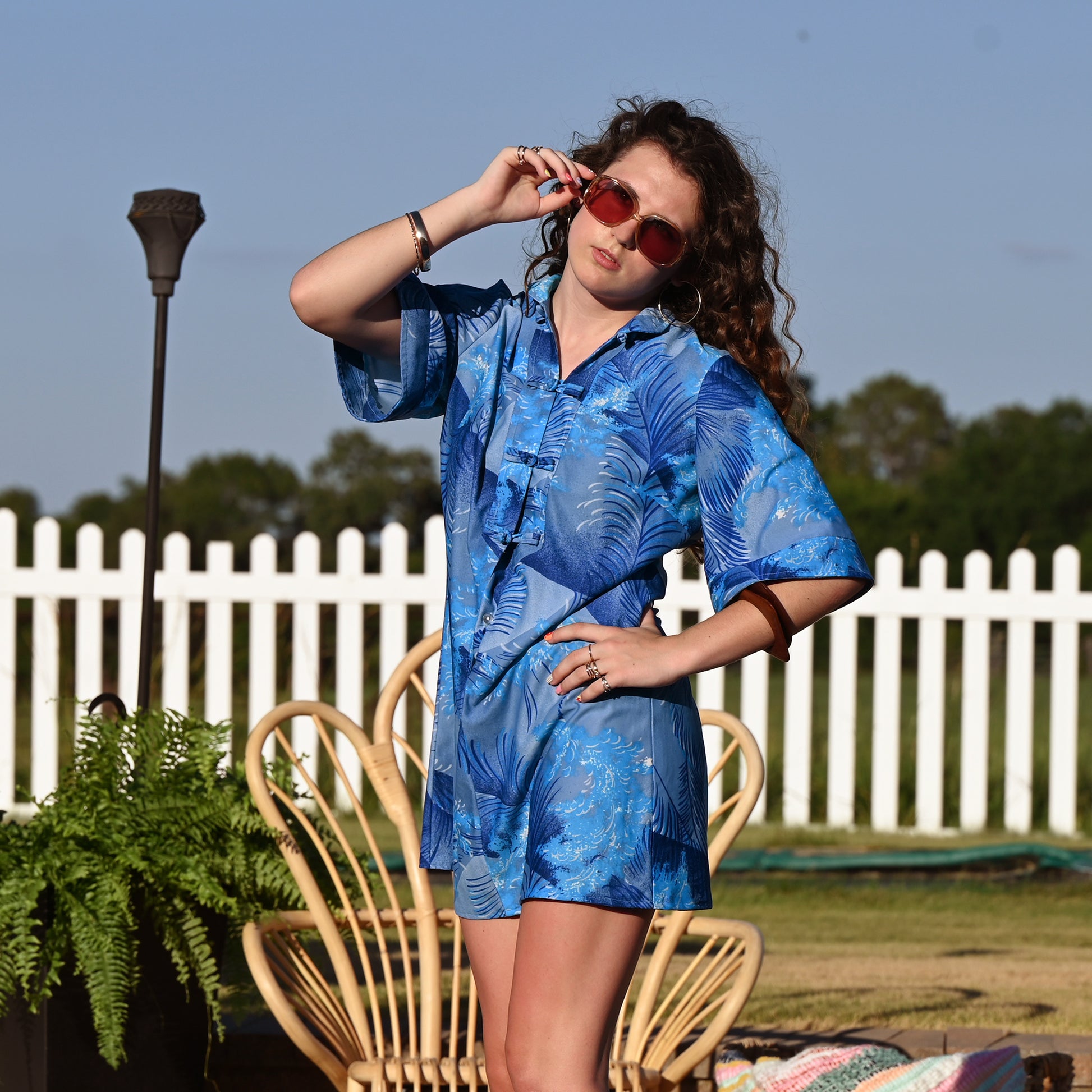 Vintage 70s Hawaii Nei Honolulu Bold Blue Print Mini Dress