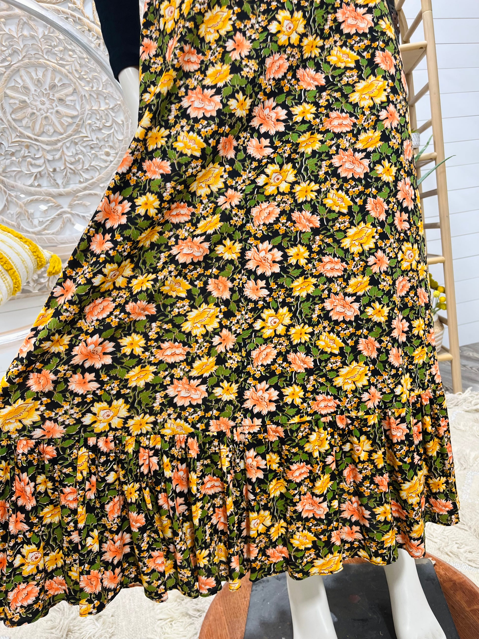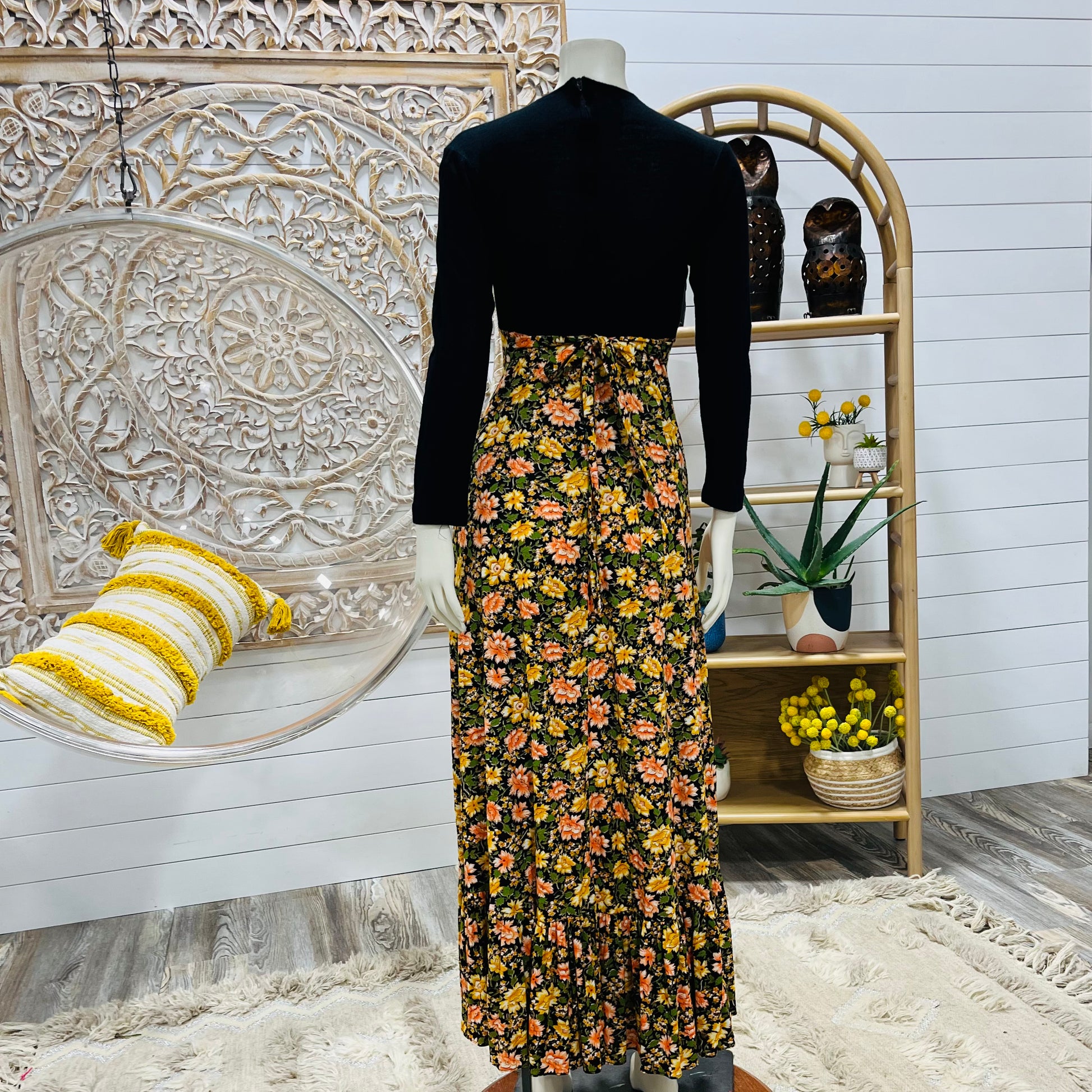 Vintage 70s Hippie Floral Janis Joplin Inspired Midi Maxi Dress