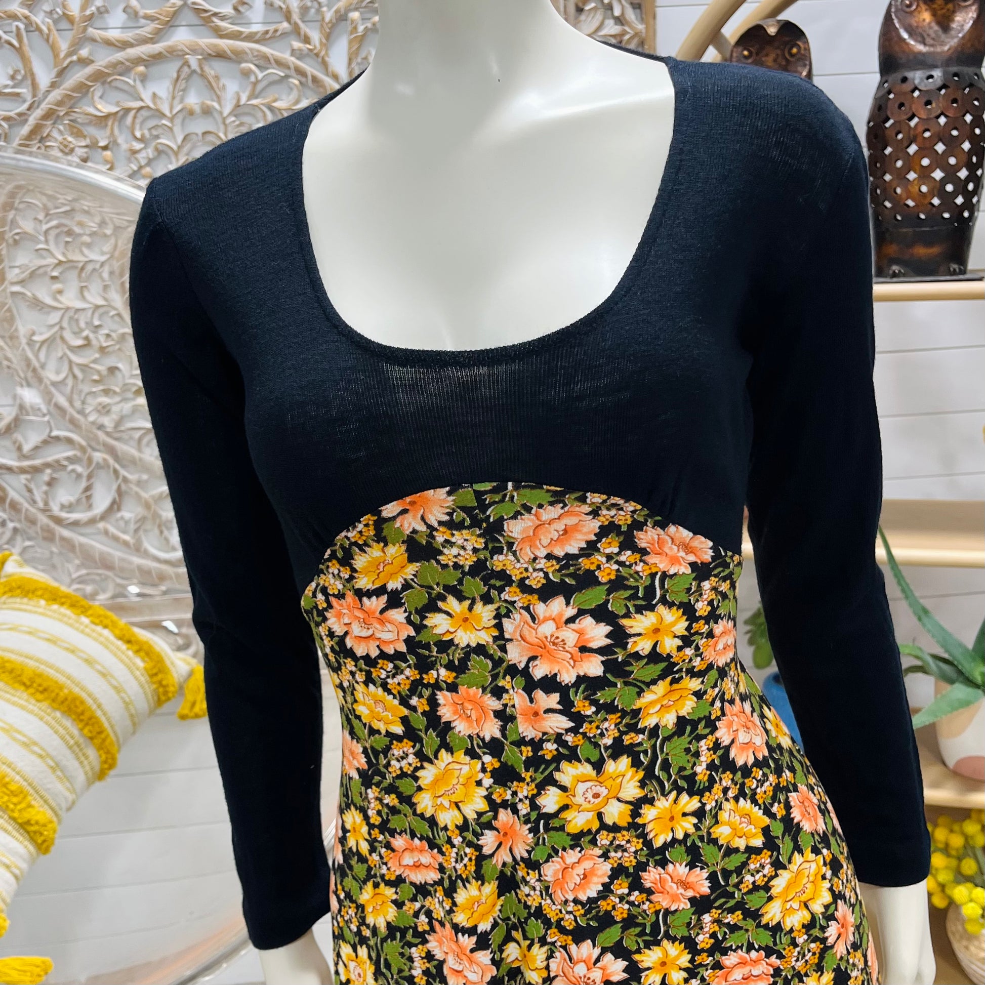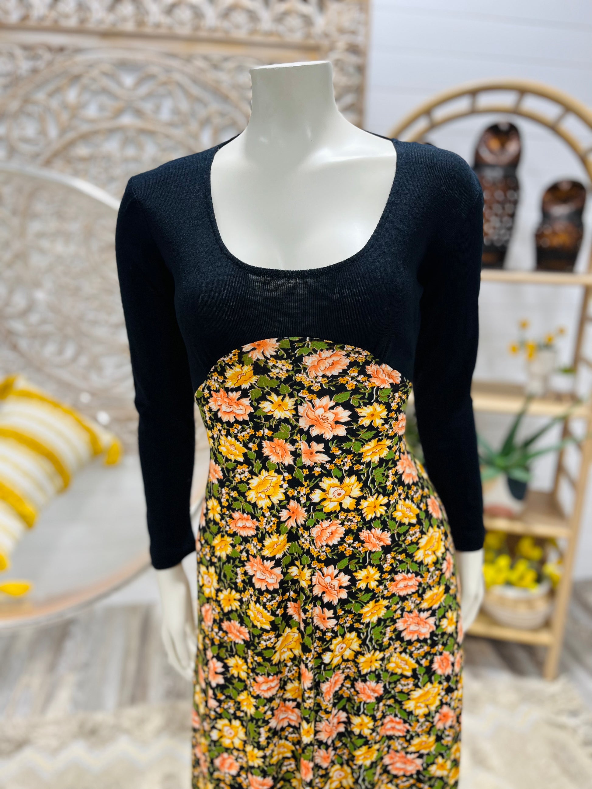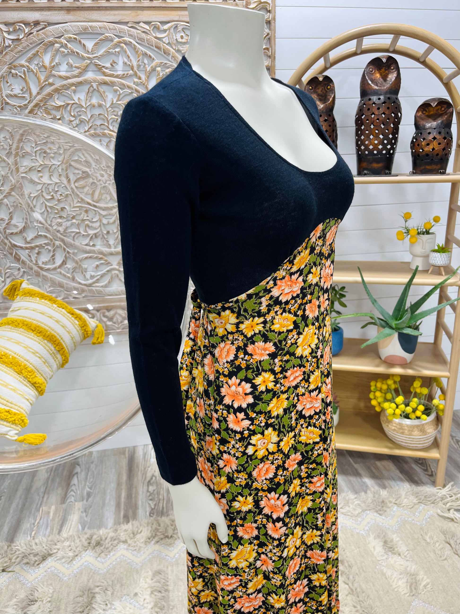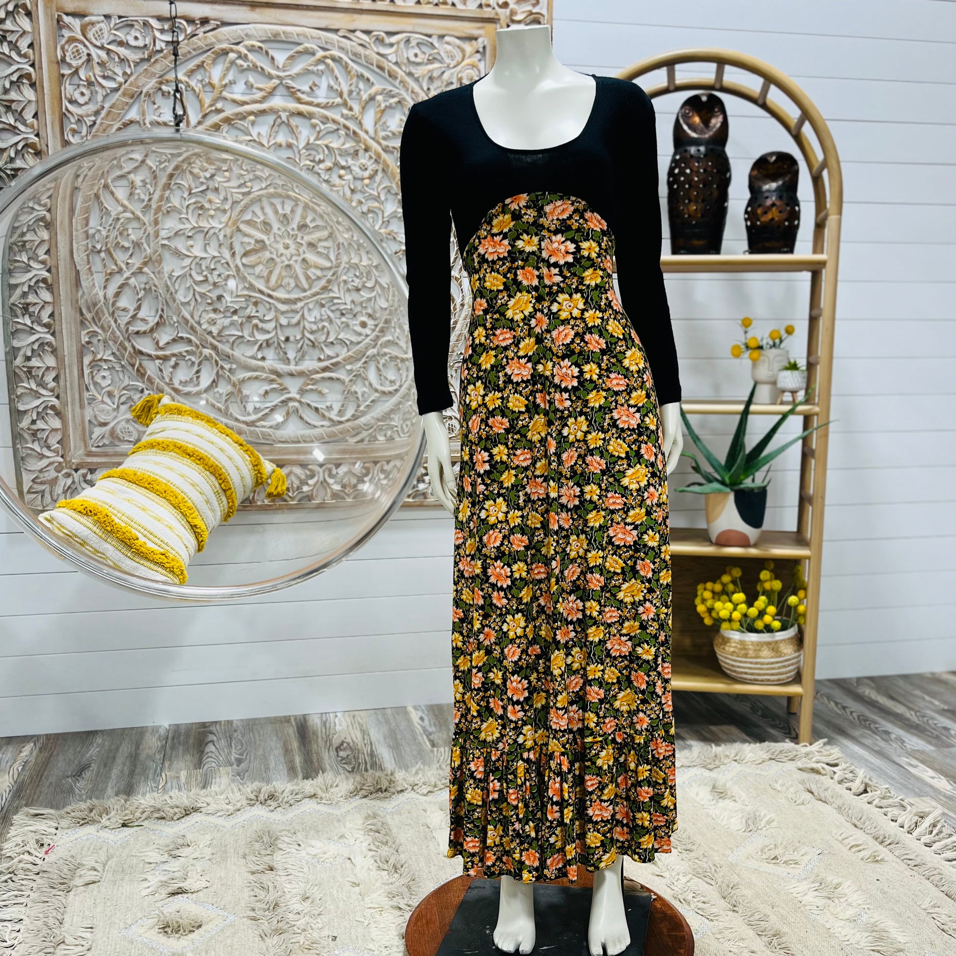 Vintage 70s Hippie Floral Janis Joplin Inspired Midi Maxi Dress S/M