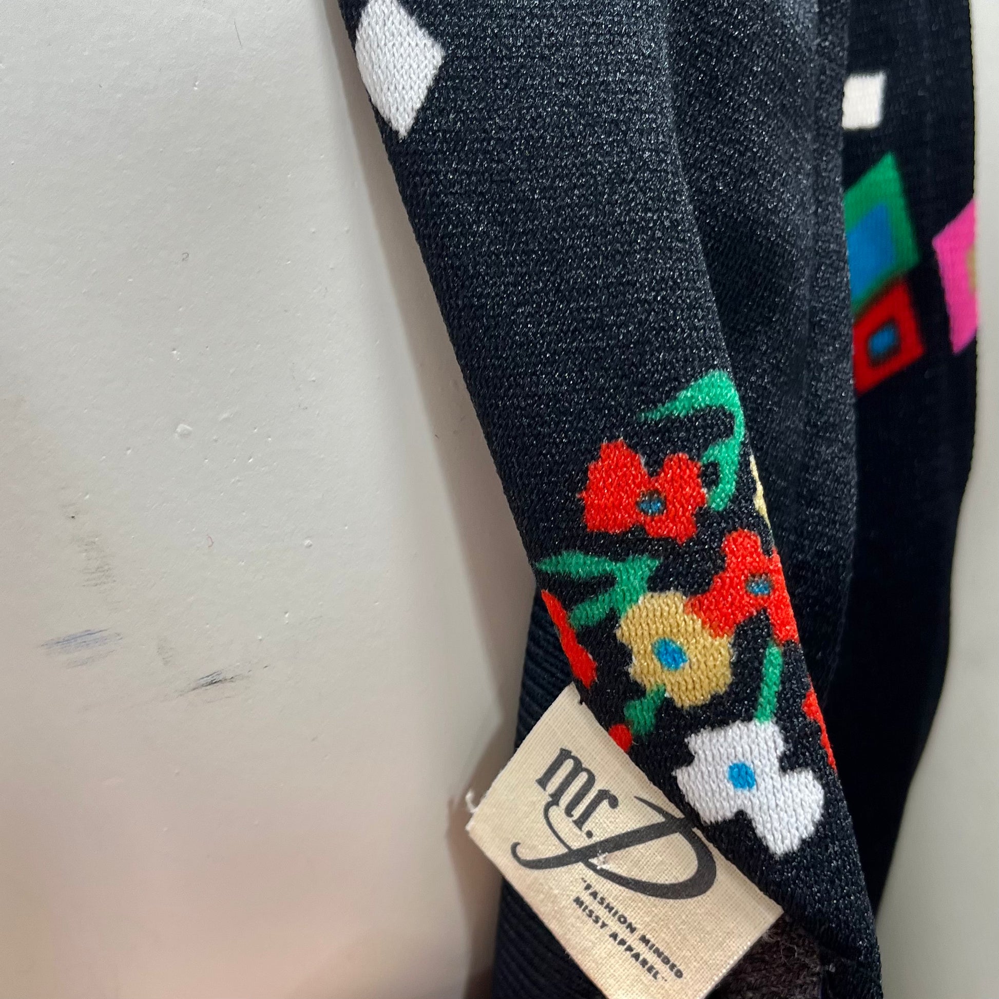 Vintage 70s Black Colorful Floral Geometric Maxi Dress L
