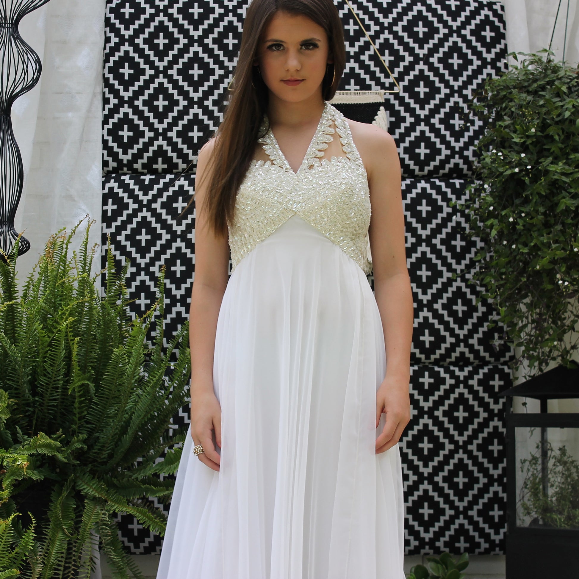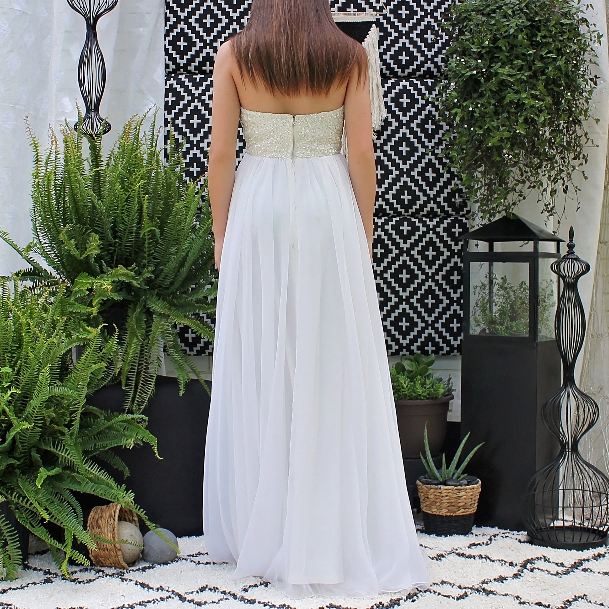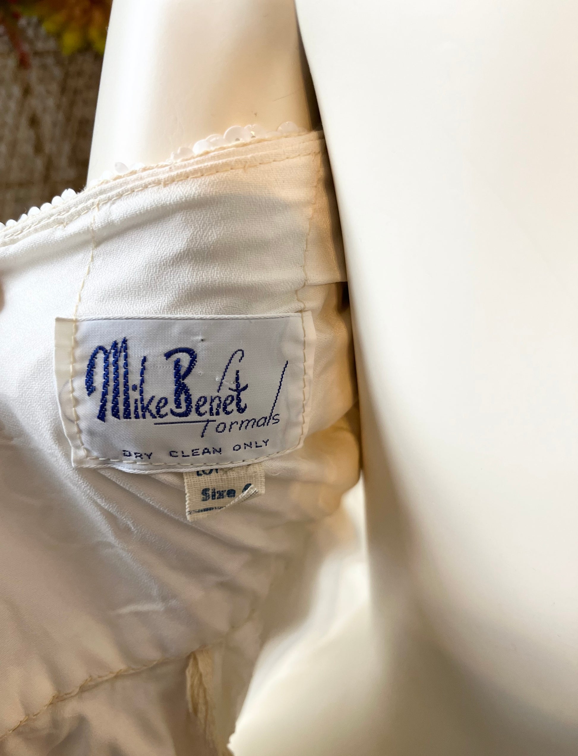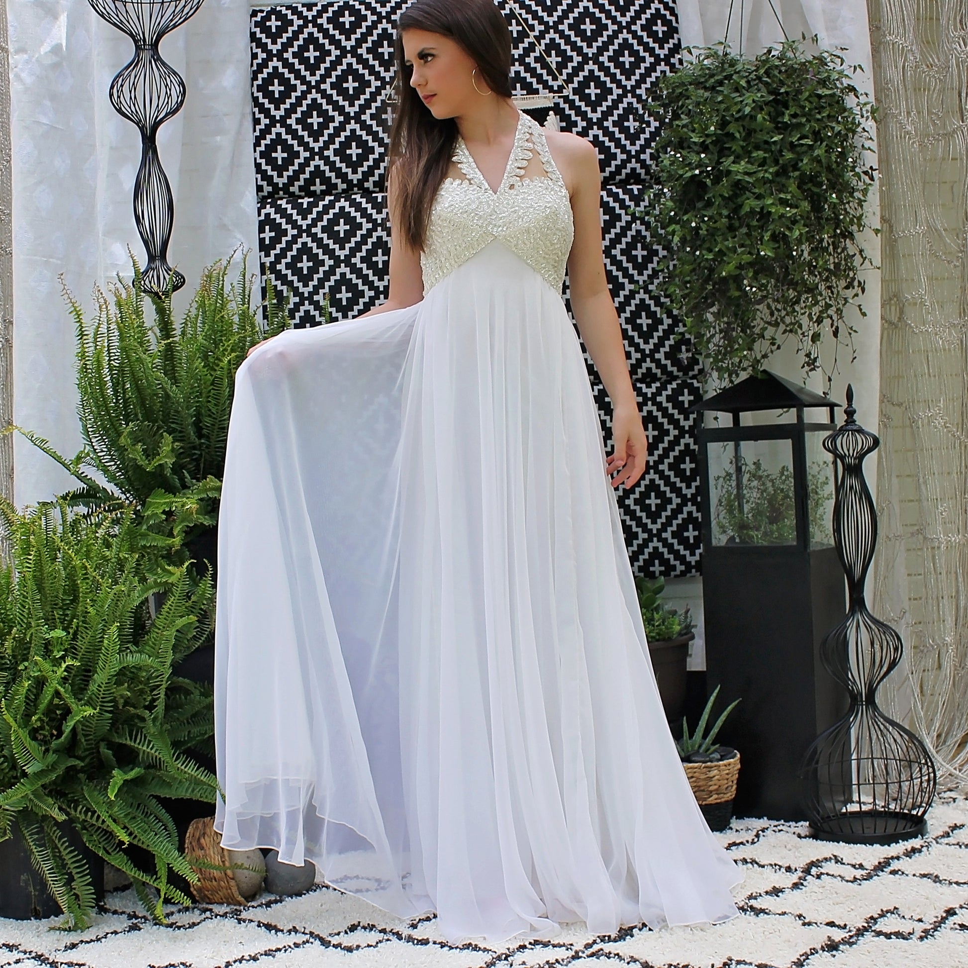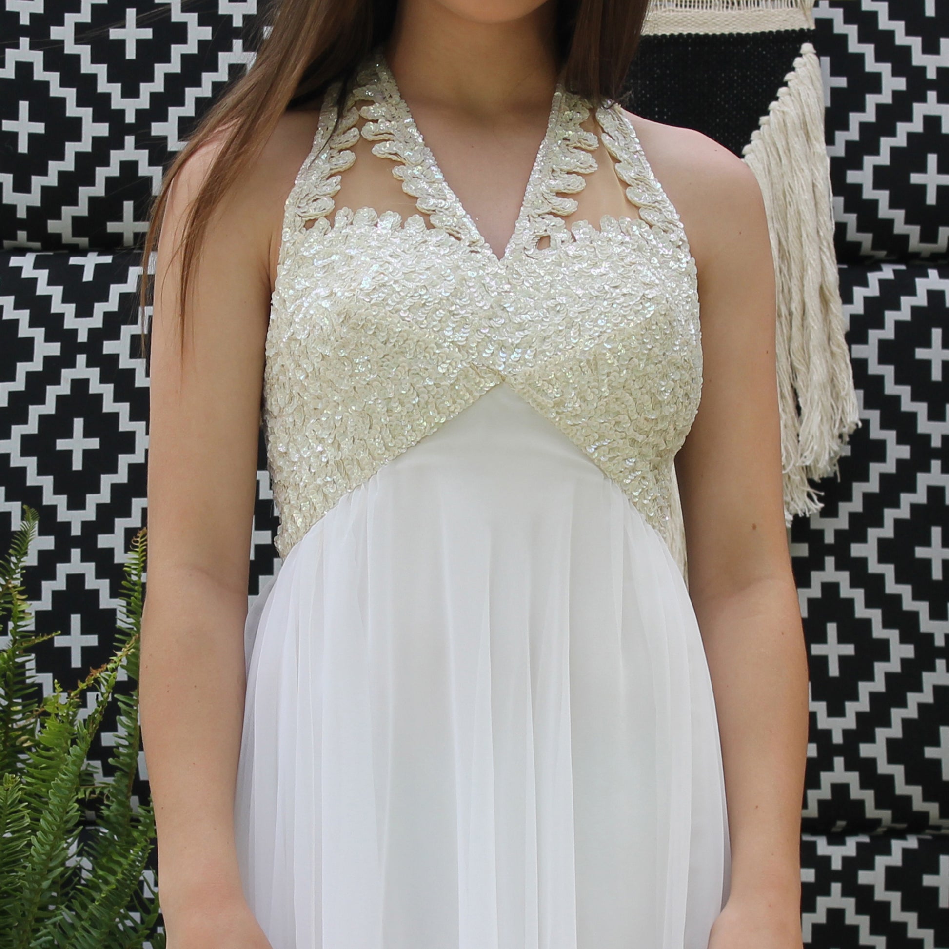 Vintage 70s Mike Benet White Halter Sequin Evening Gown XS