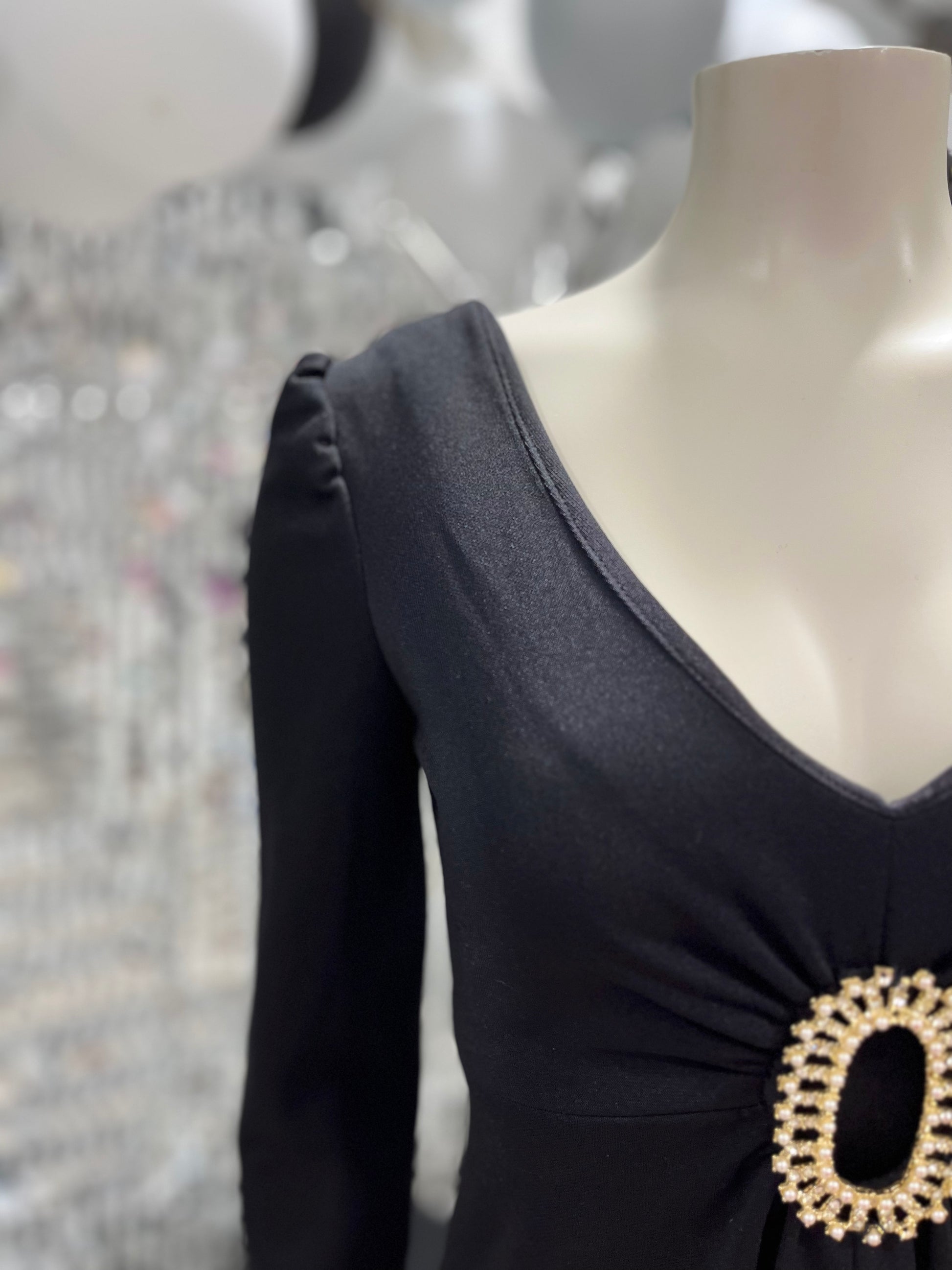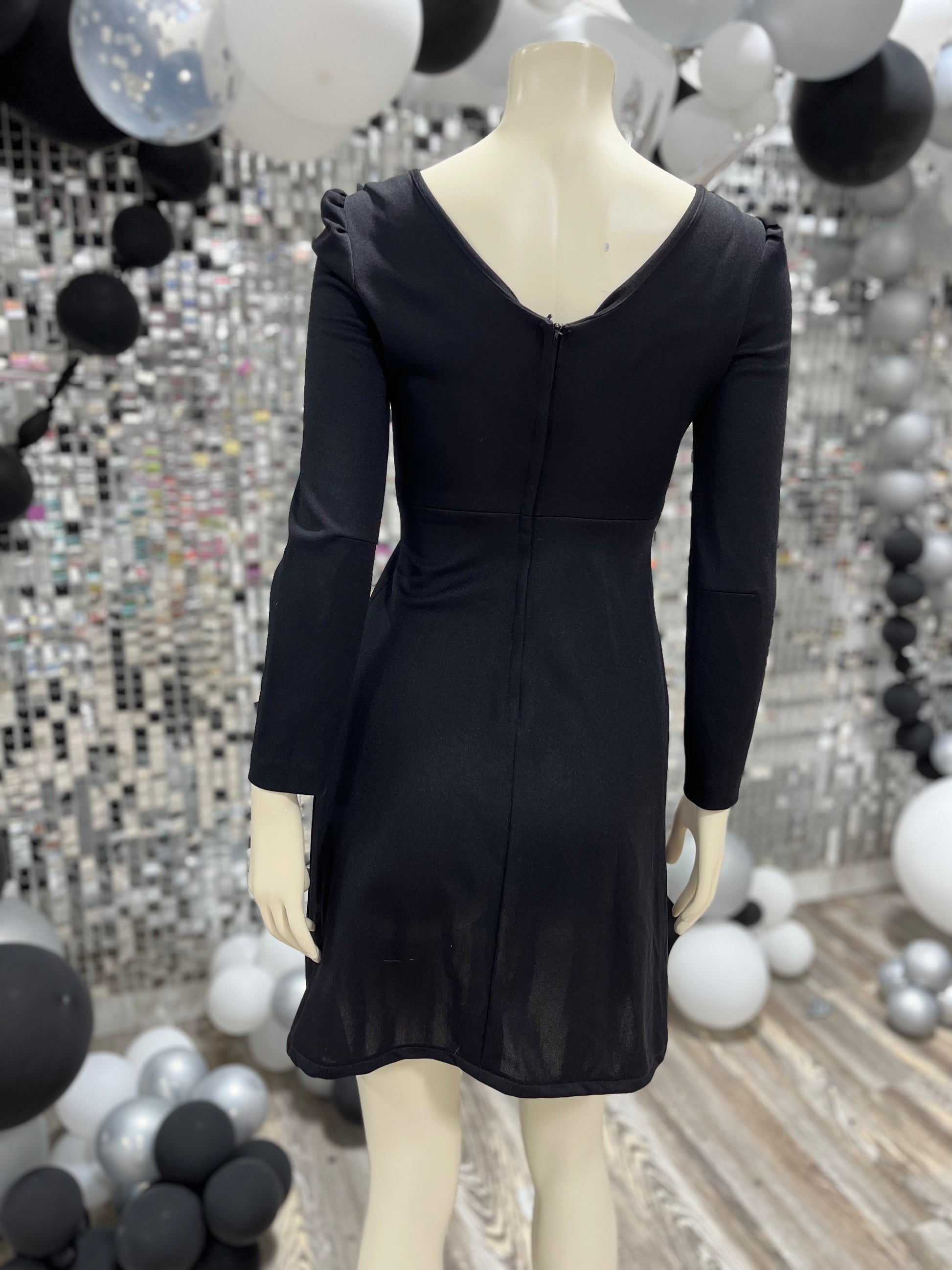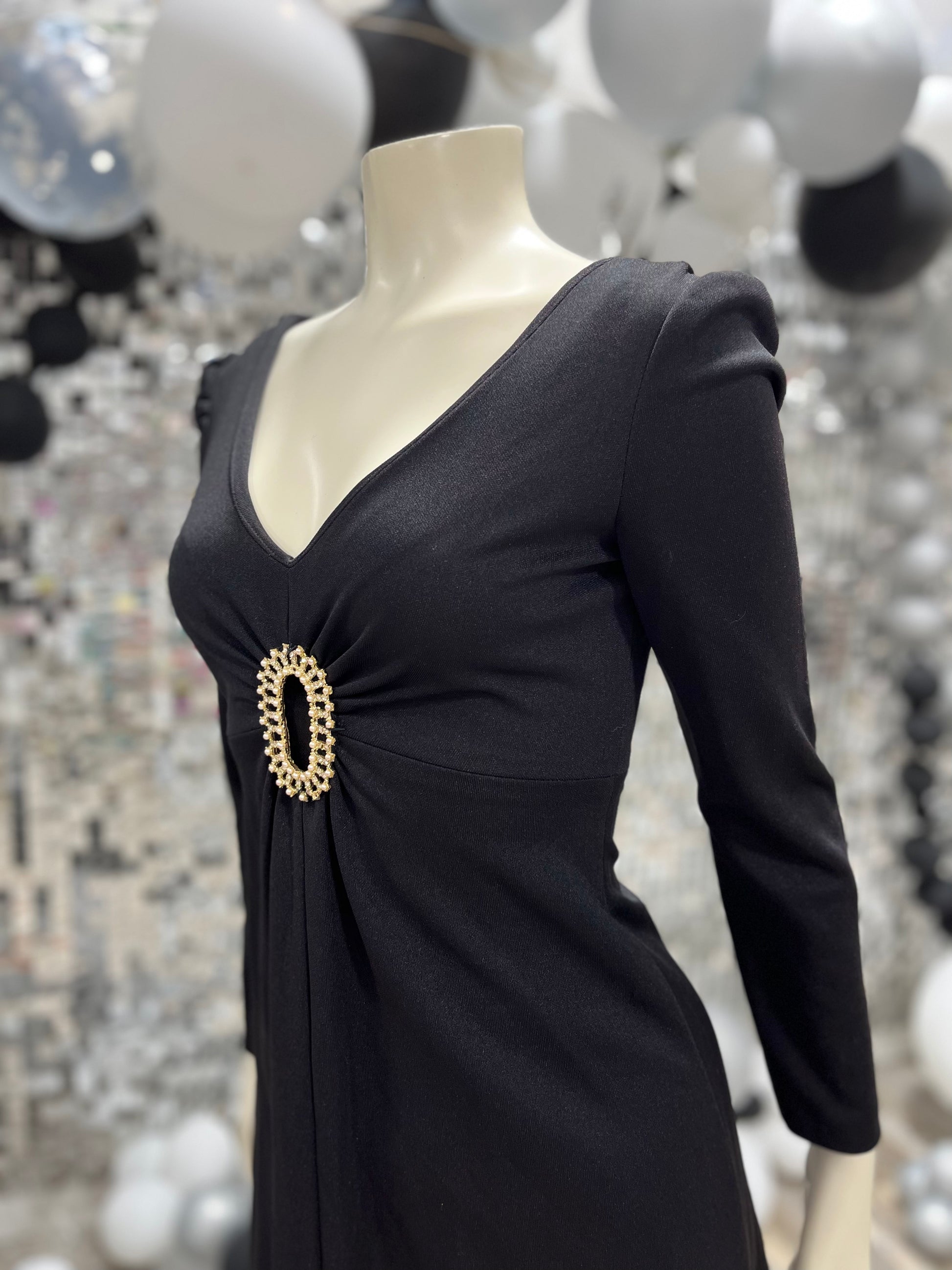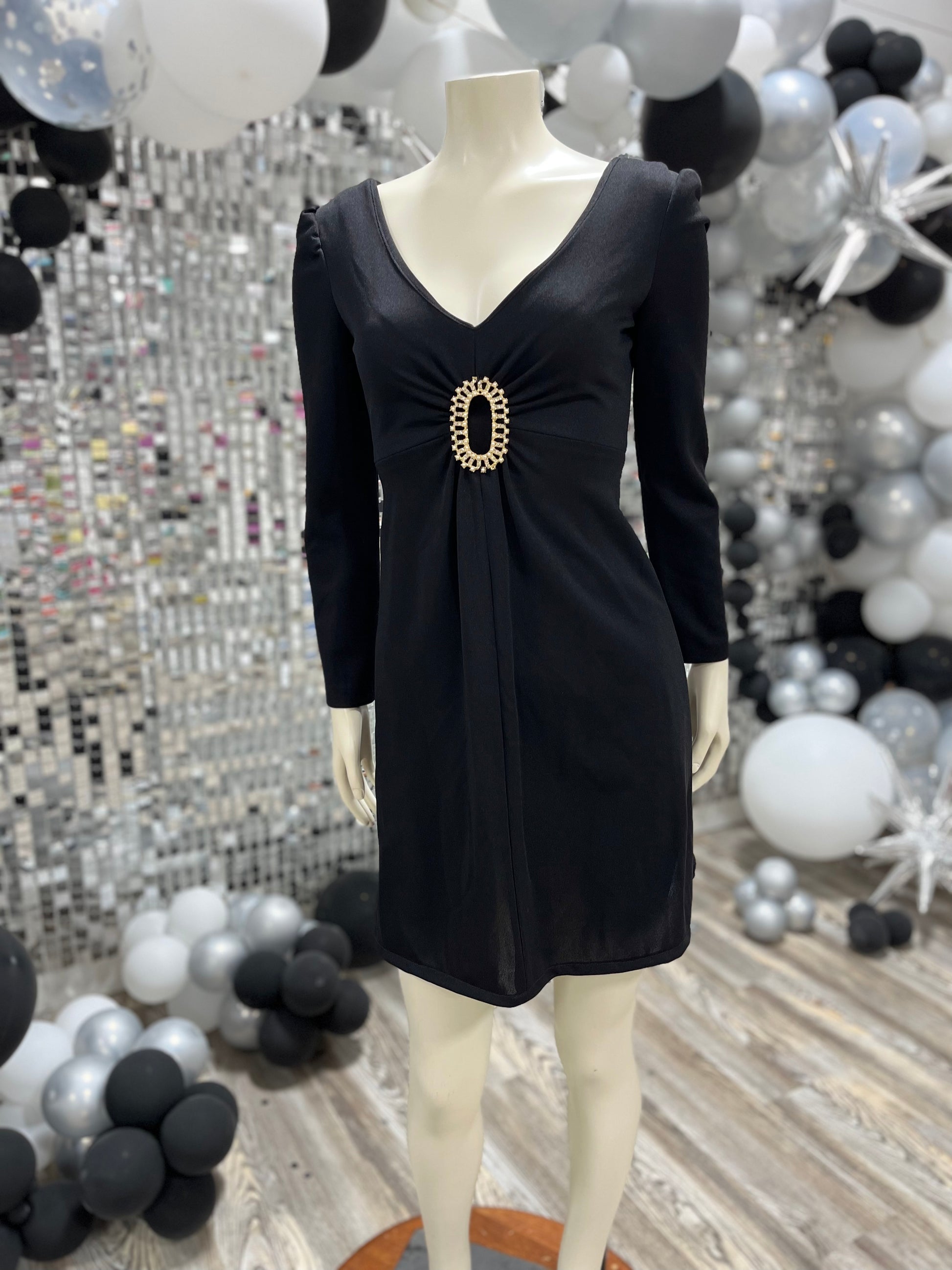 Vintage 70s Medallion Black Mini Party Cocktail Dress XS/S