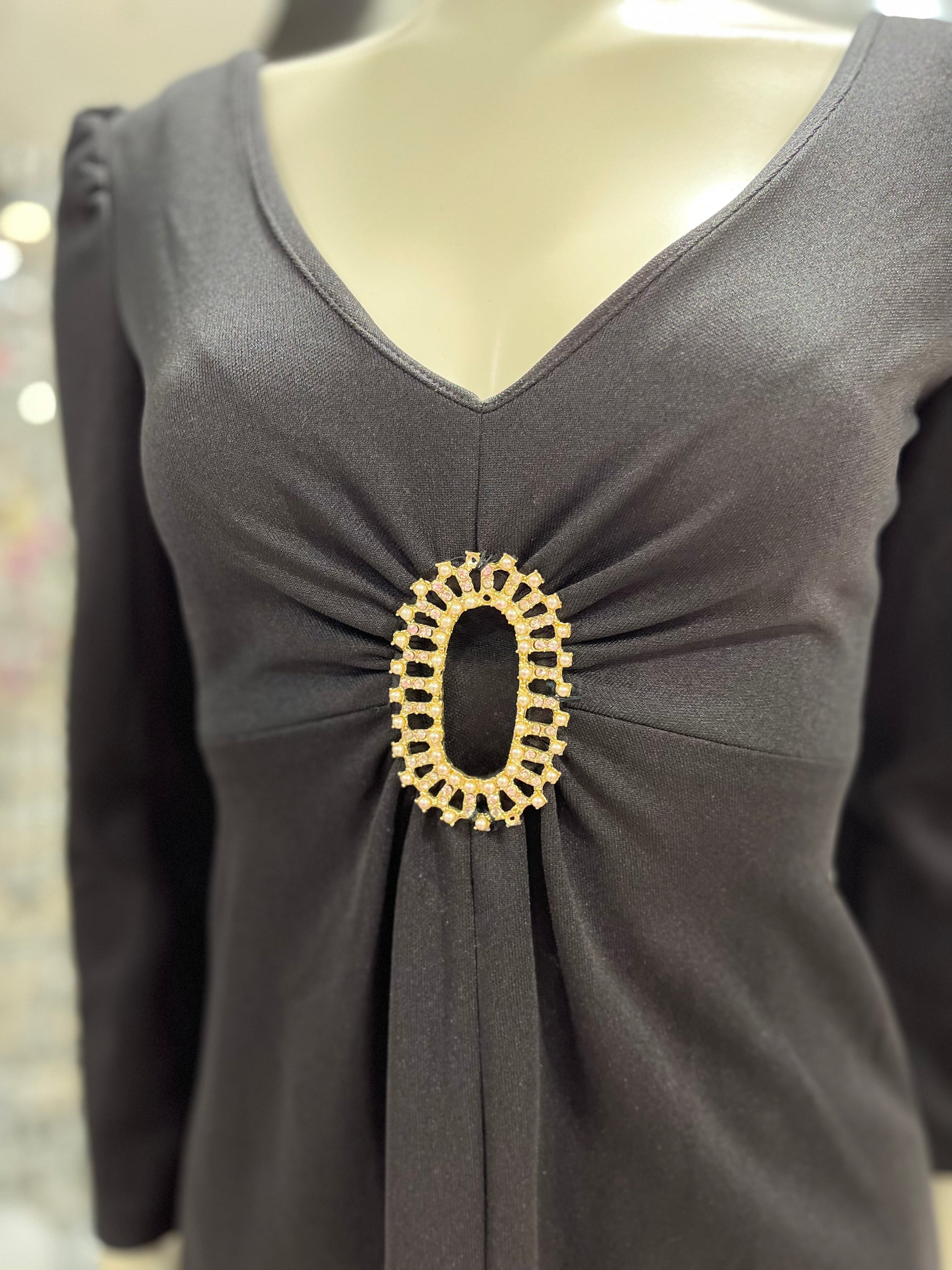 Vintage 70s Medallion Black Mini Party Cocktail Dress