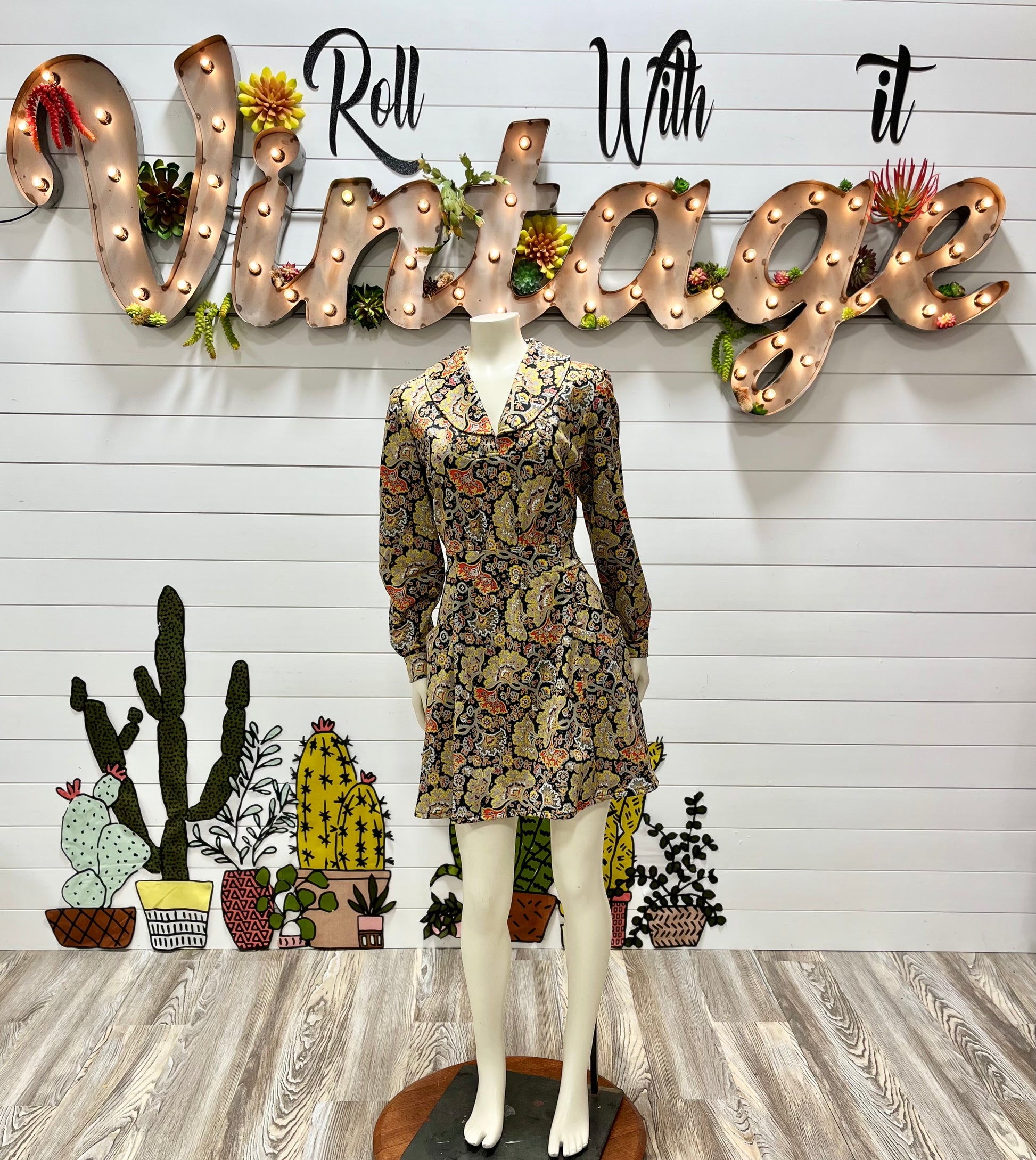70s Psychedelic Round Collar Button Cuff Mini Dress
