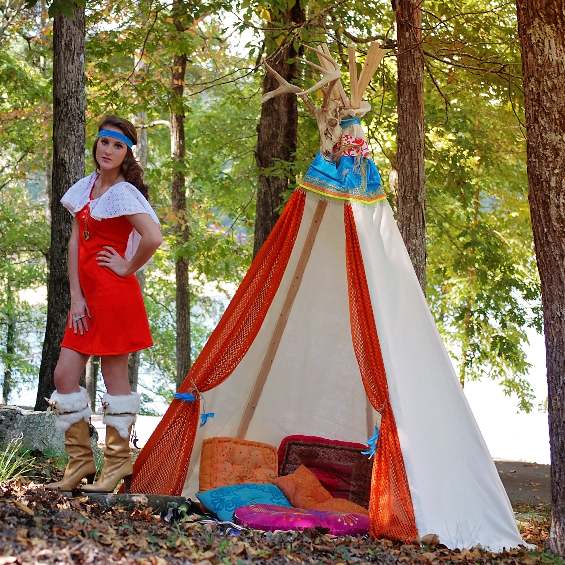 Vintage 60s 70s Red Asymmetrical Shawl Cape Lace Empire Mini Dress