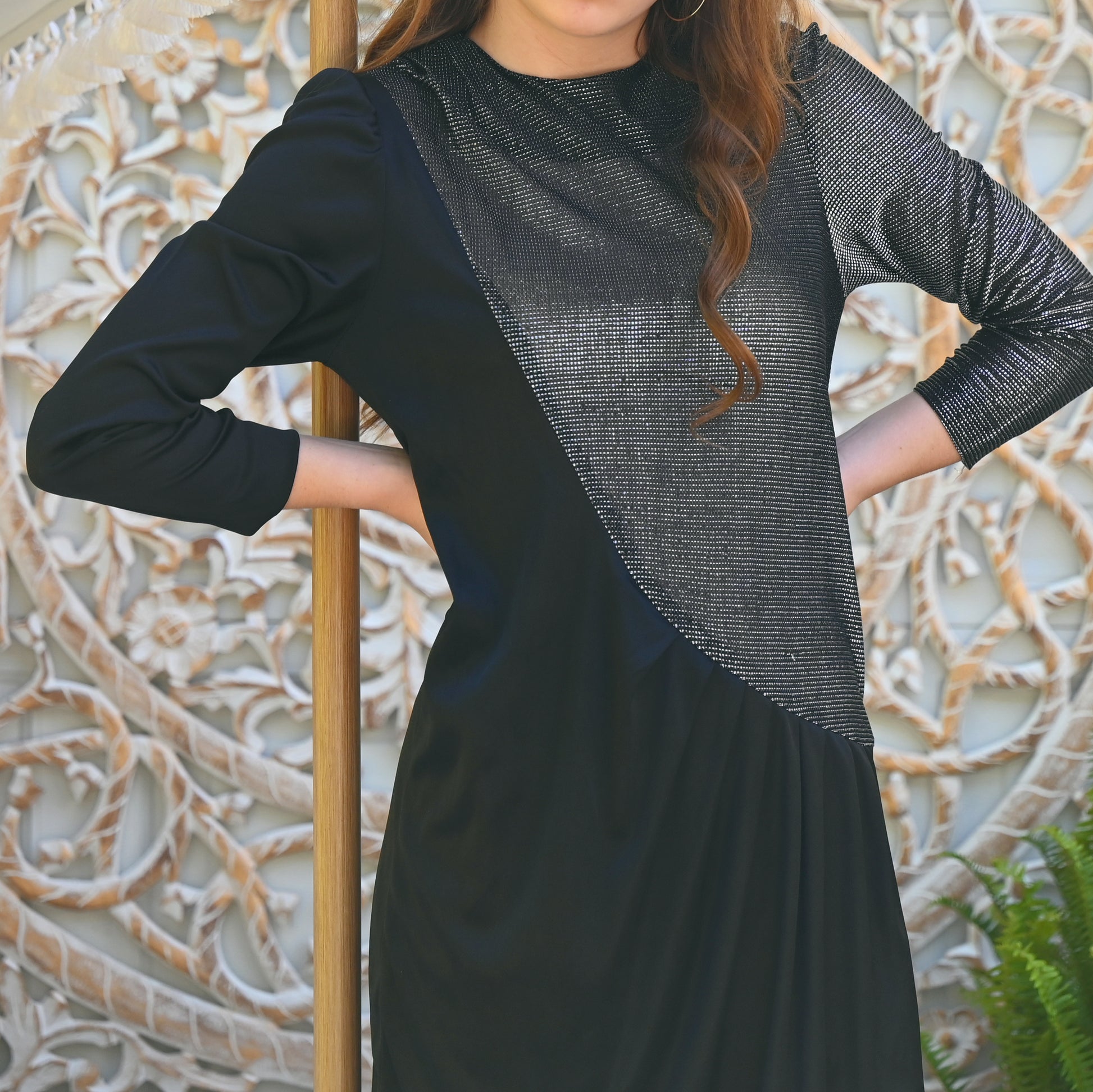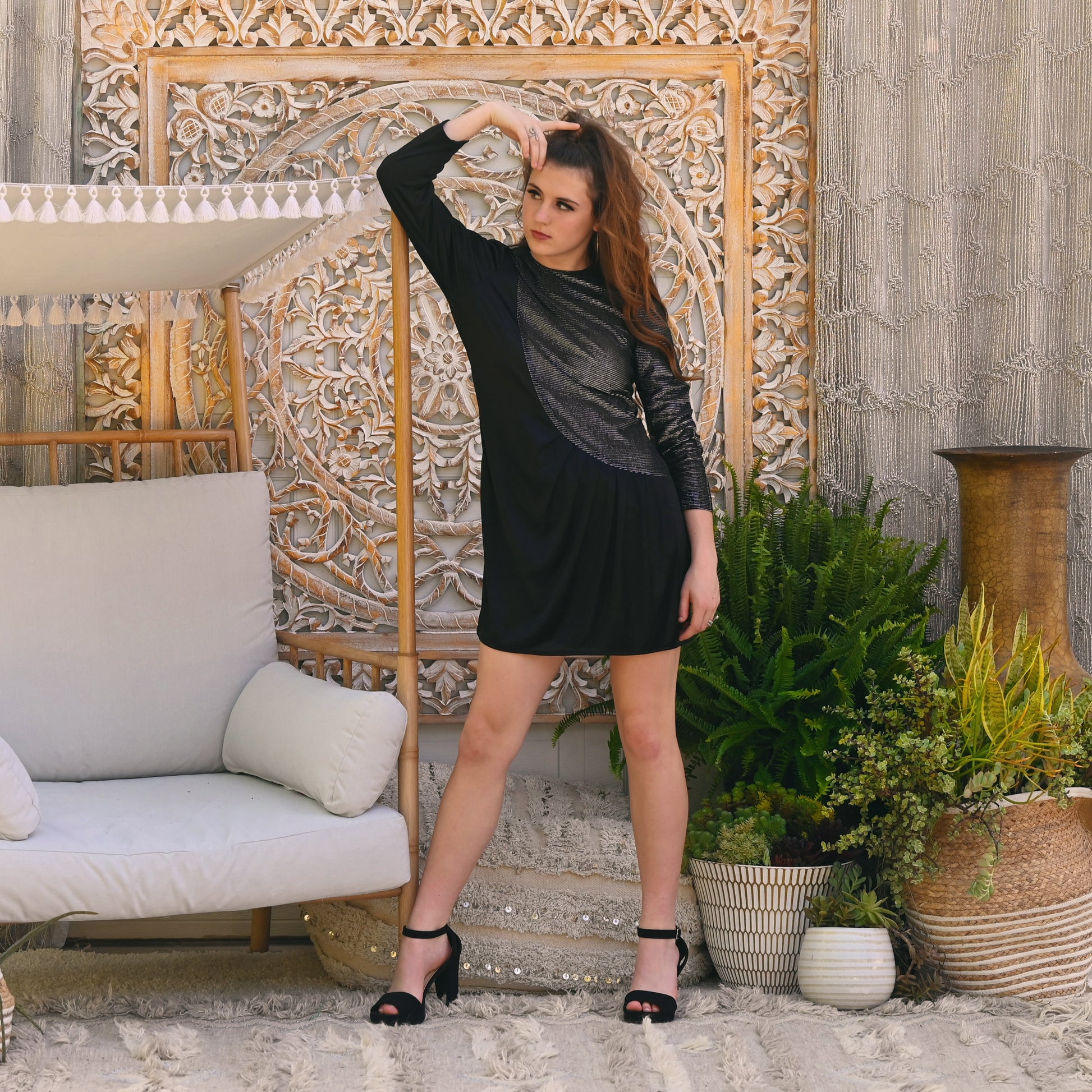 Vintage 70s Silver Metallic Mini Formal Party Dress M