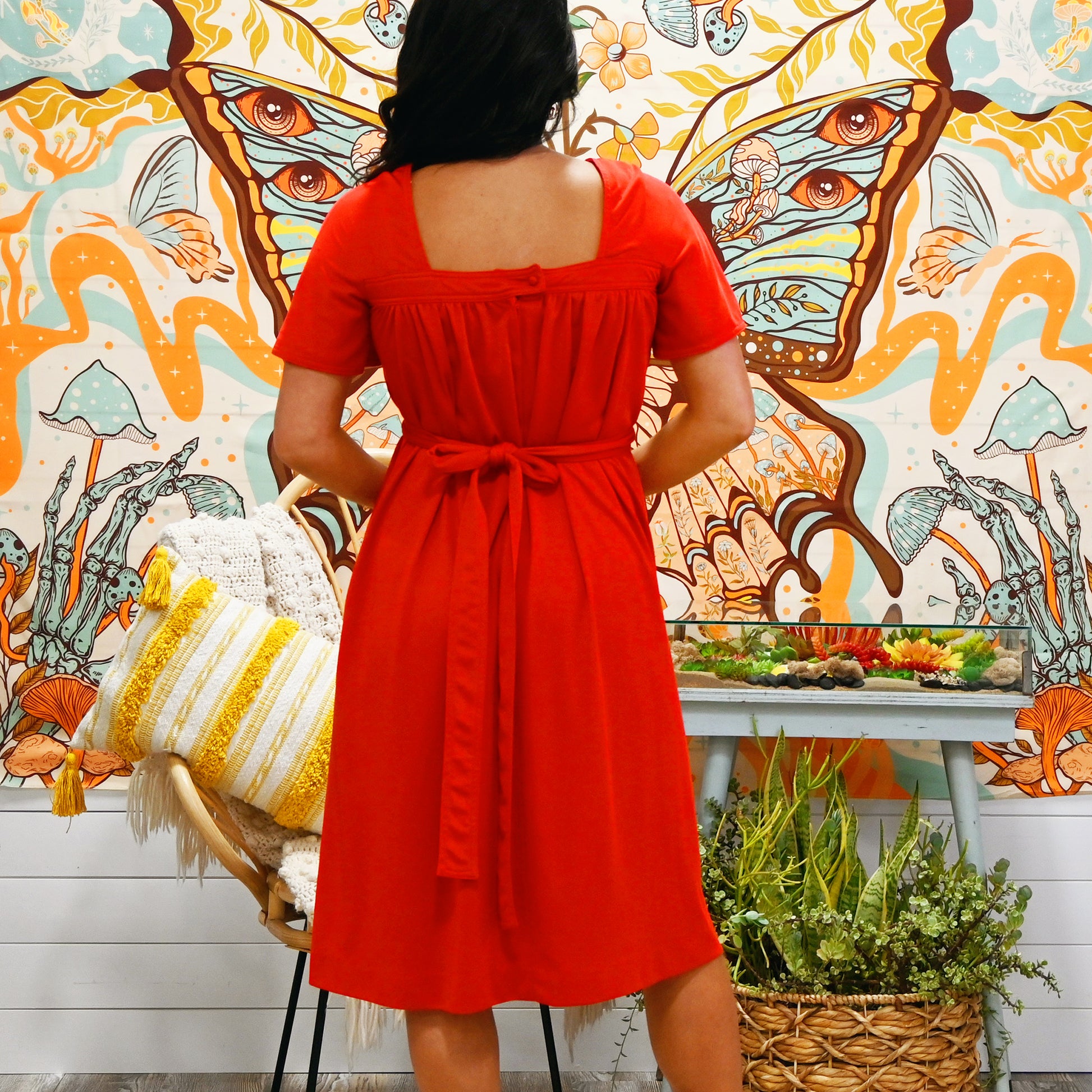 Vintage 70s Slinky Flutter Sleeve Cummerbund Waist Midi Dress M