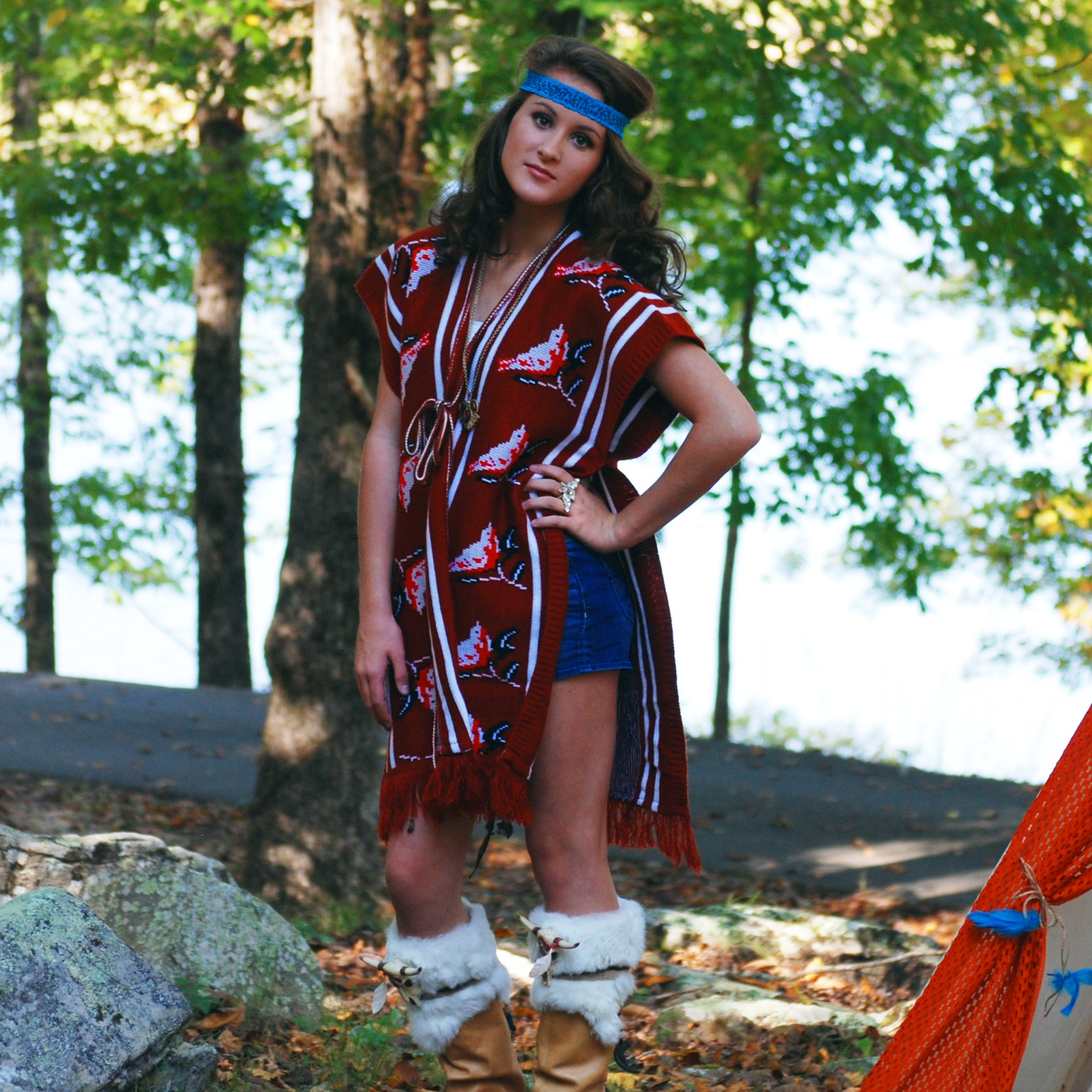 Vintage 70's Vest Woven Ethnic Bird Knit Fringe Poncho One Size