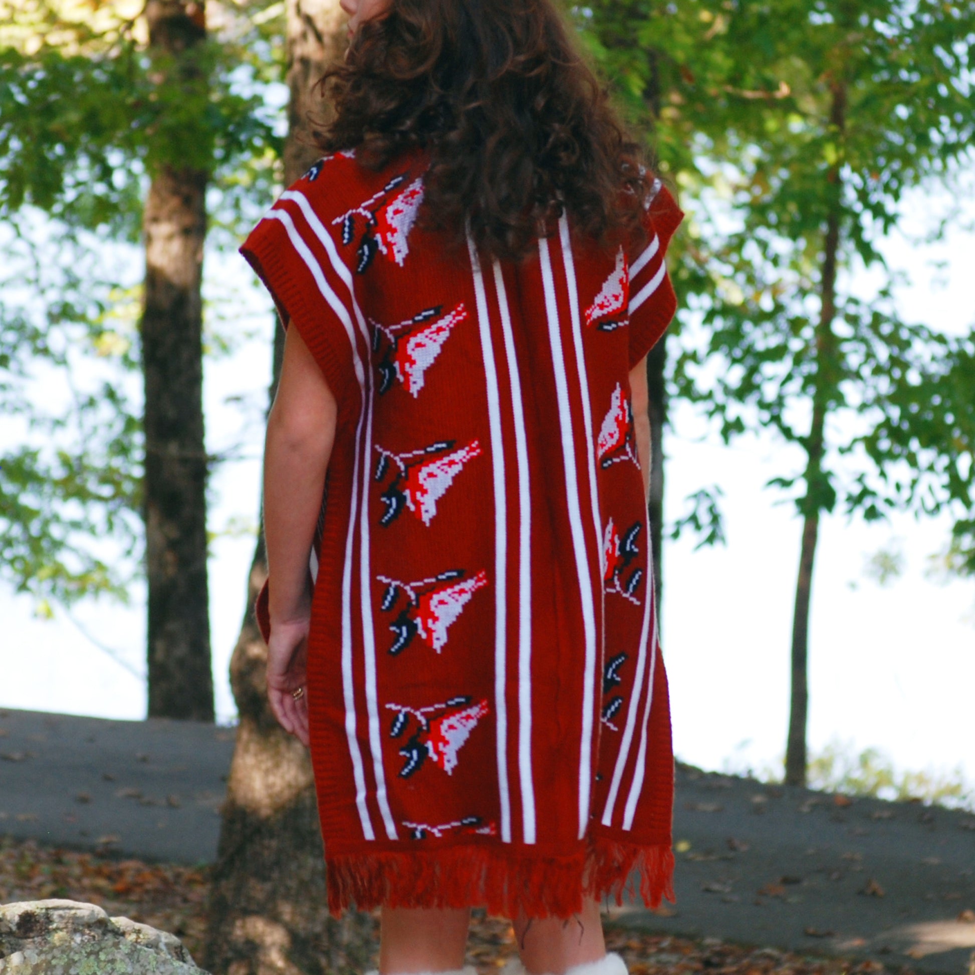 Vintage 70's Vest Woven Ethnic Bird Knit Fringe Poncho
