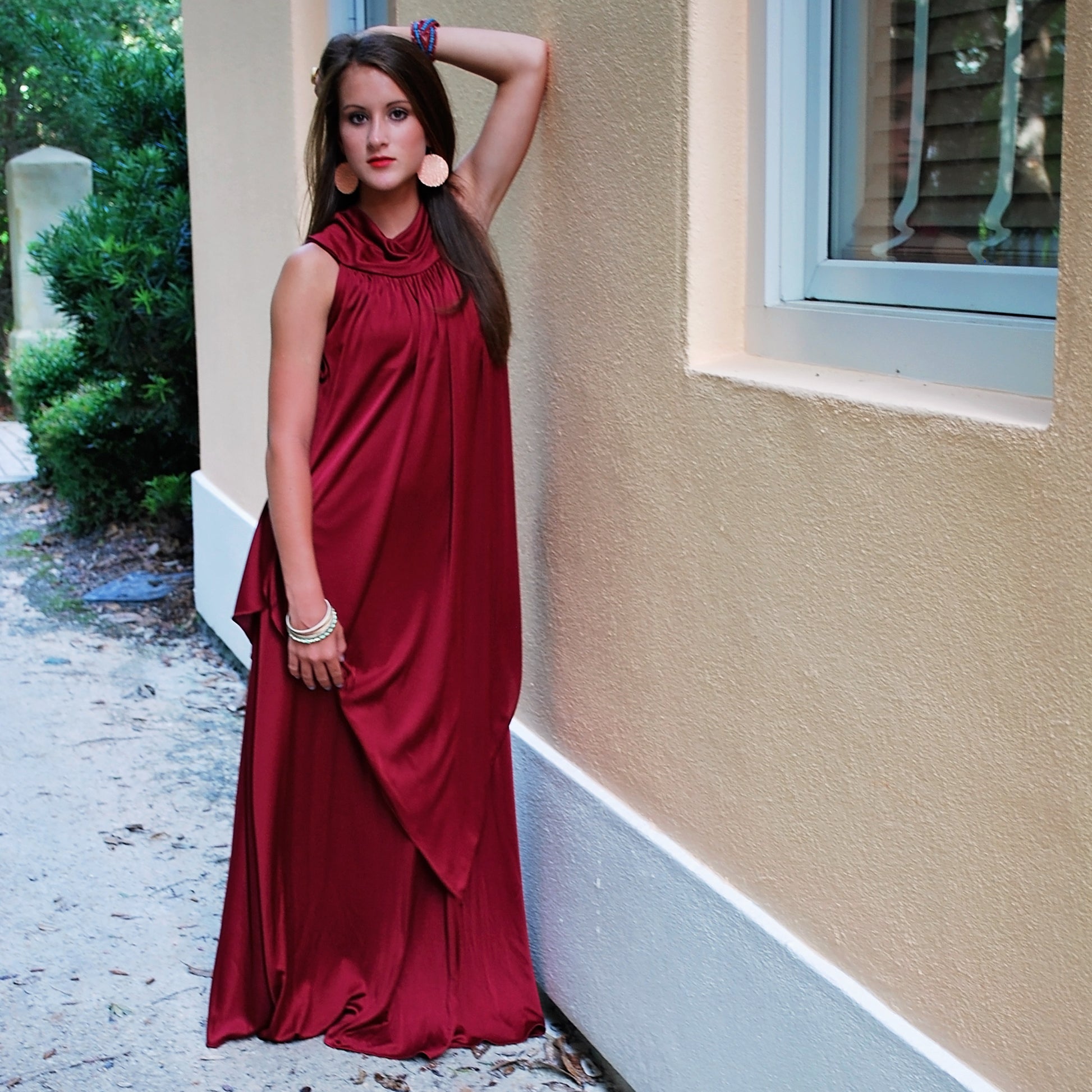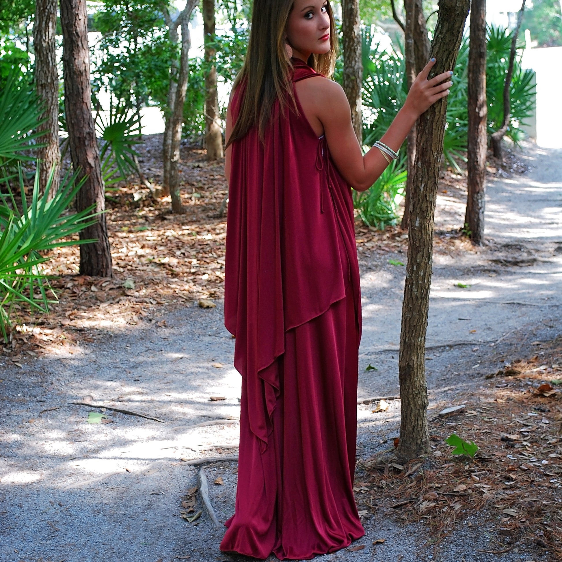 Vintage 70s Wine Slinky Disco Hanky Hem Empire Maxi Dress