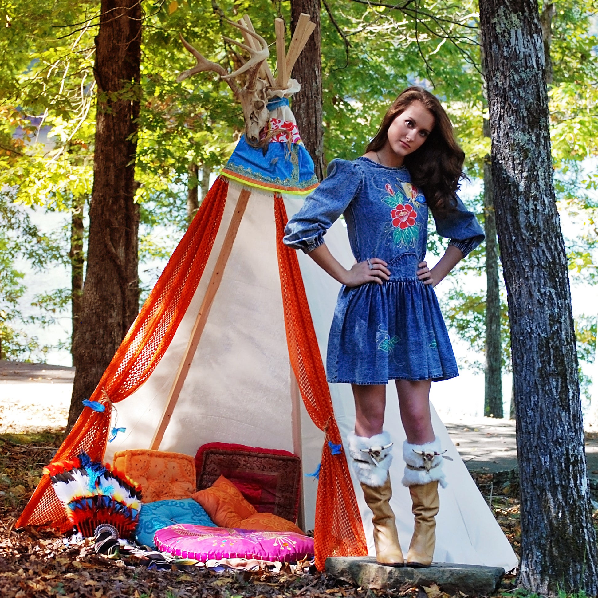 Vintage 80s Denim Puff Sleeve Hand Painted Butterfly Mini Dress