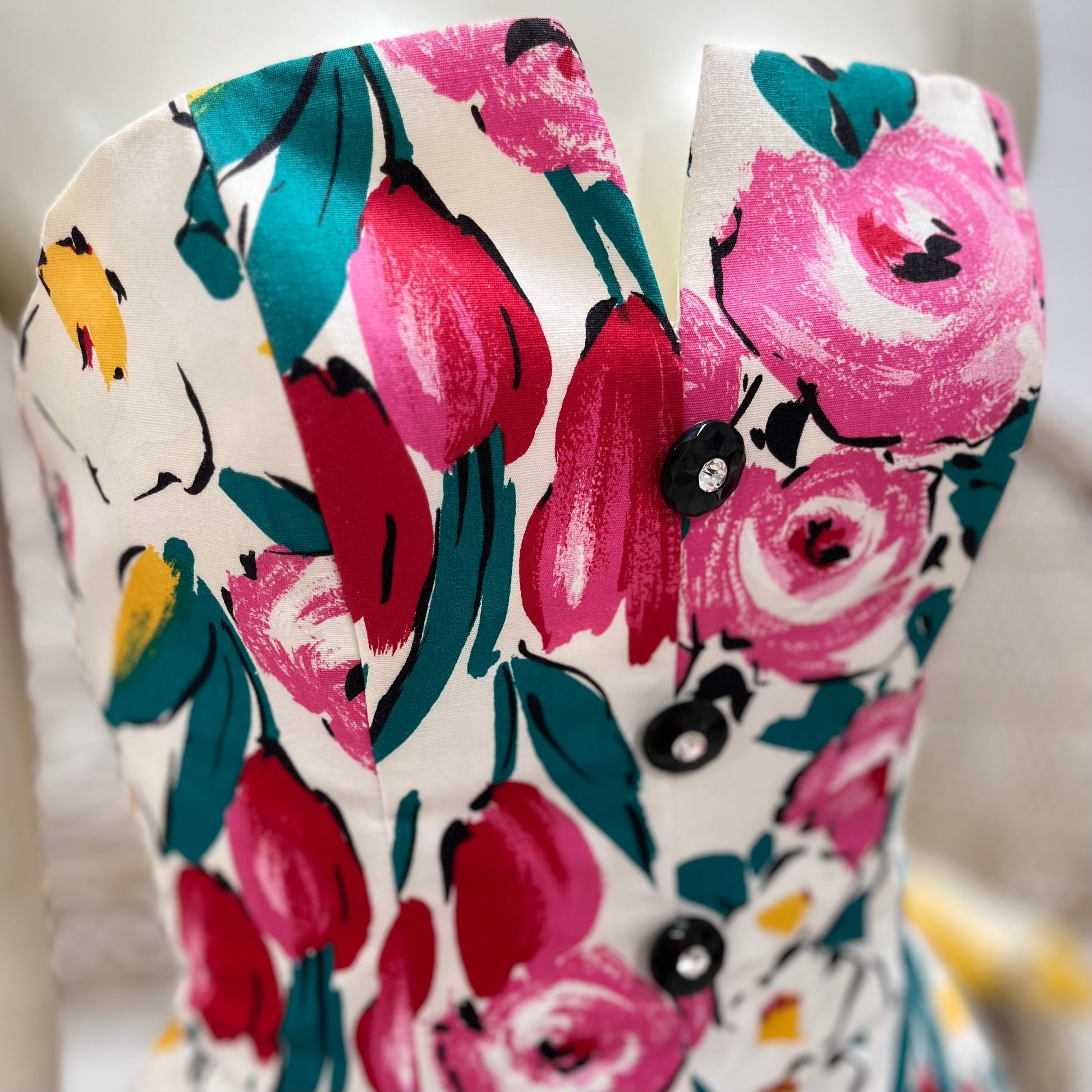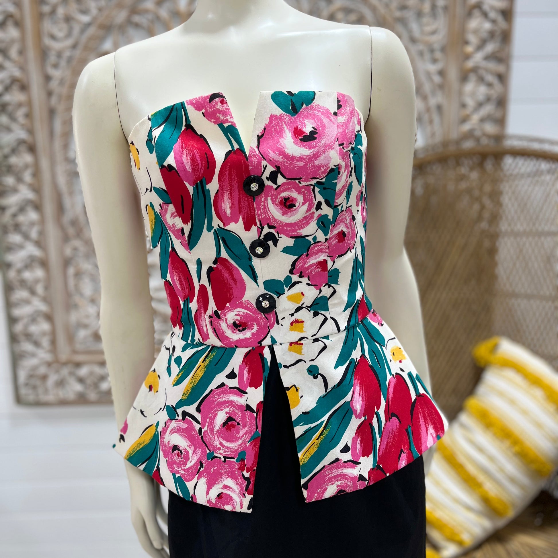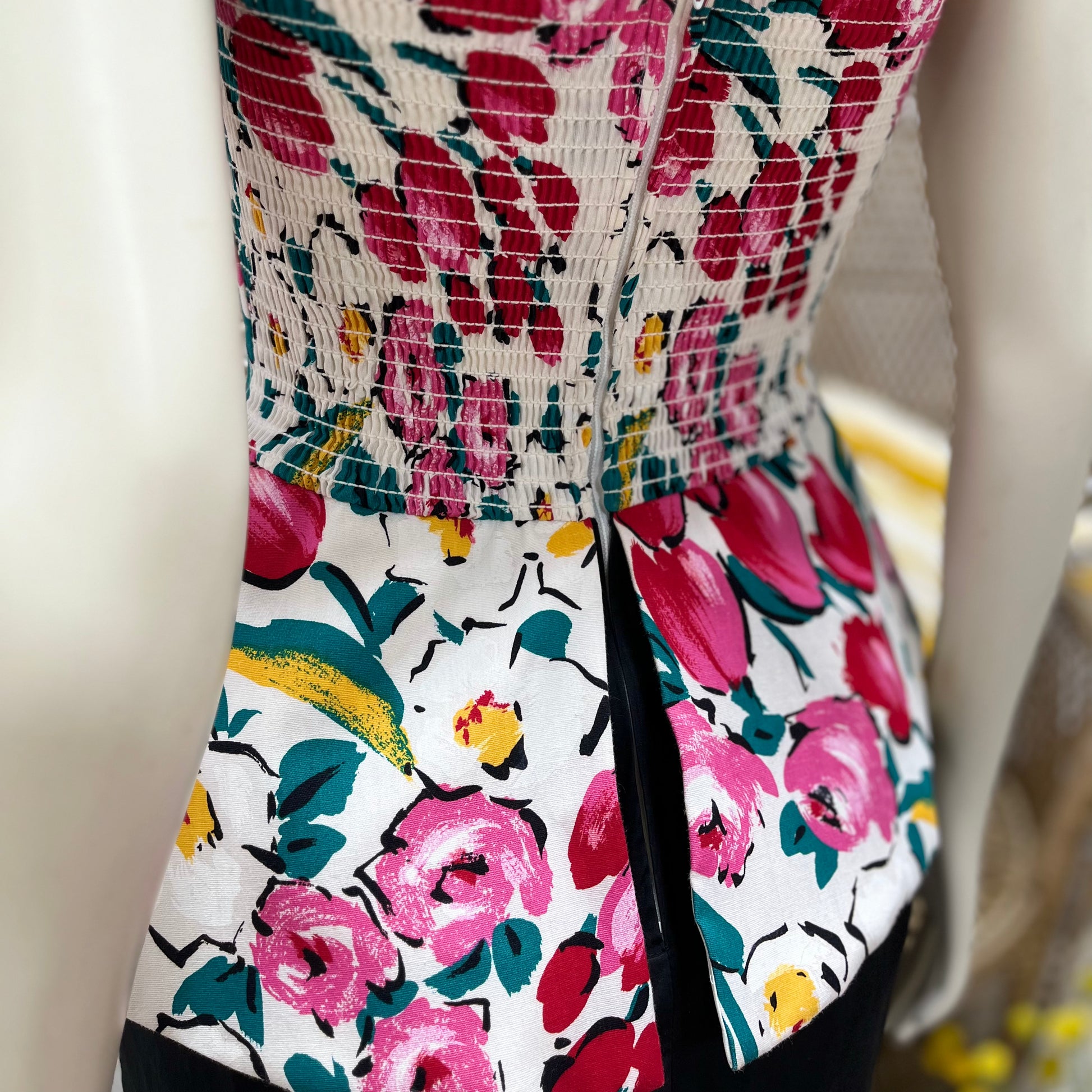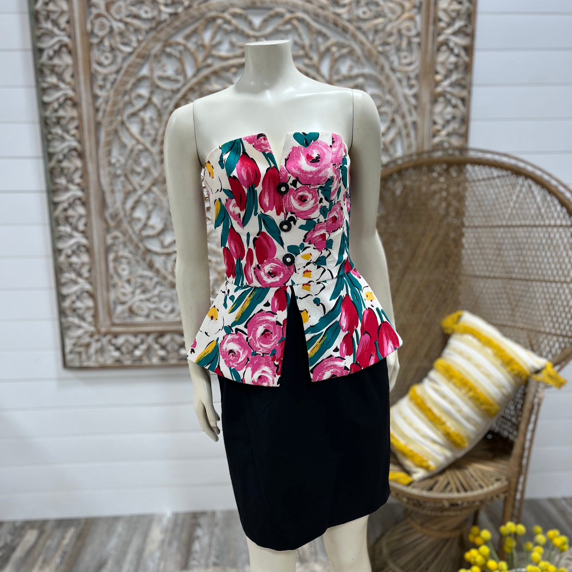 Vintage 80s Elegant Floral Peplum Cocktail Party Mini Dress