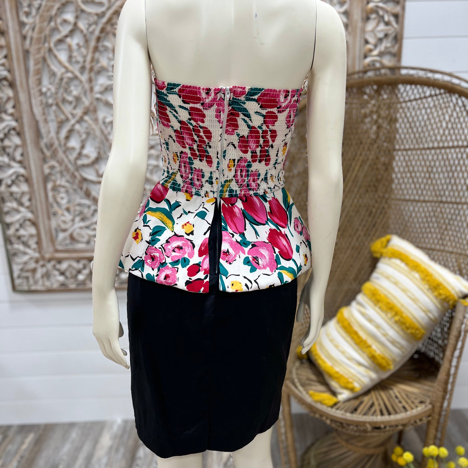 Vintage 80s Elegant Floral Peplum Cocktail Party Mini Dress S/M