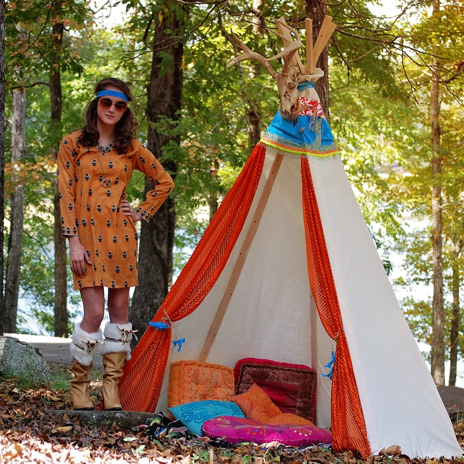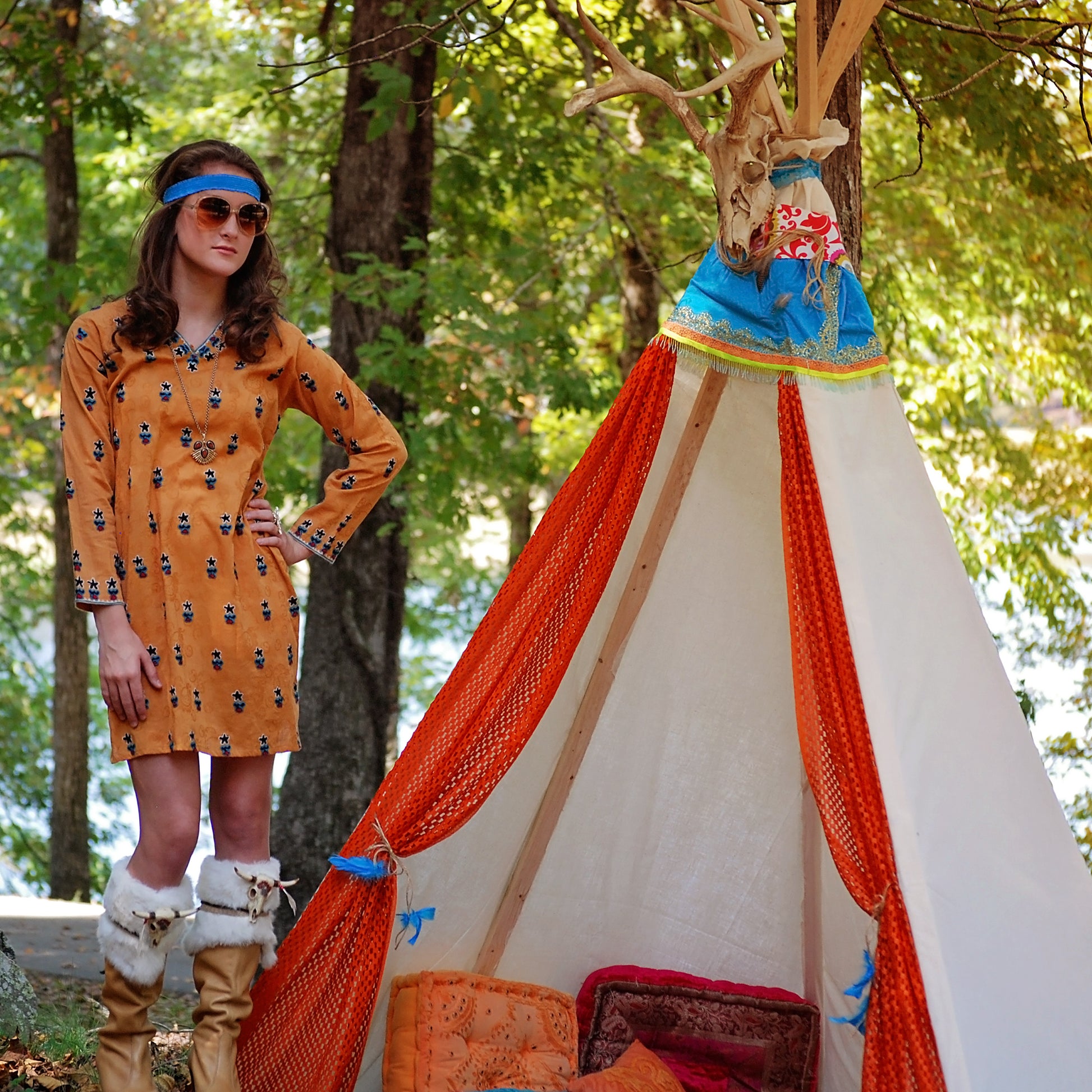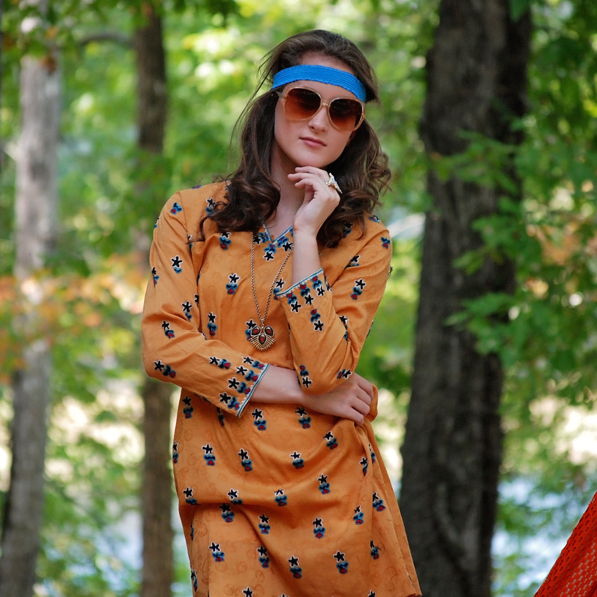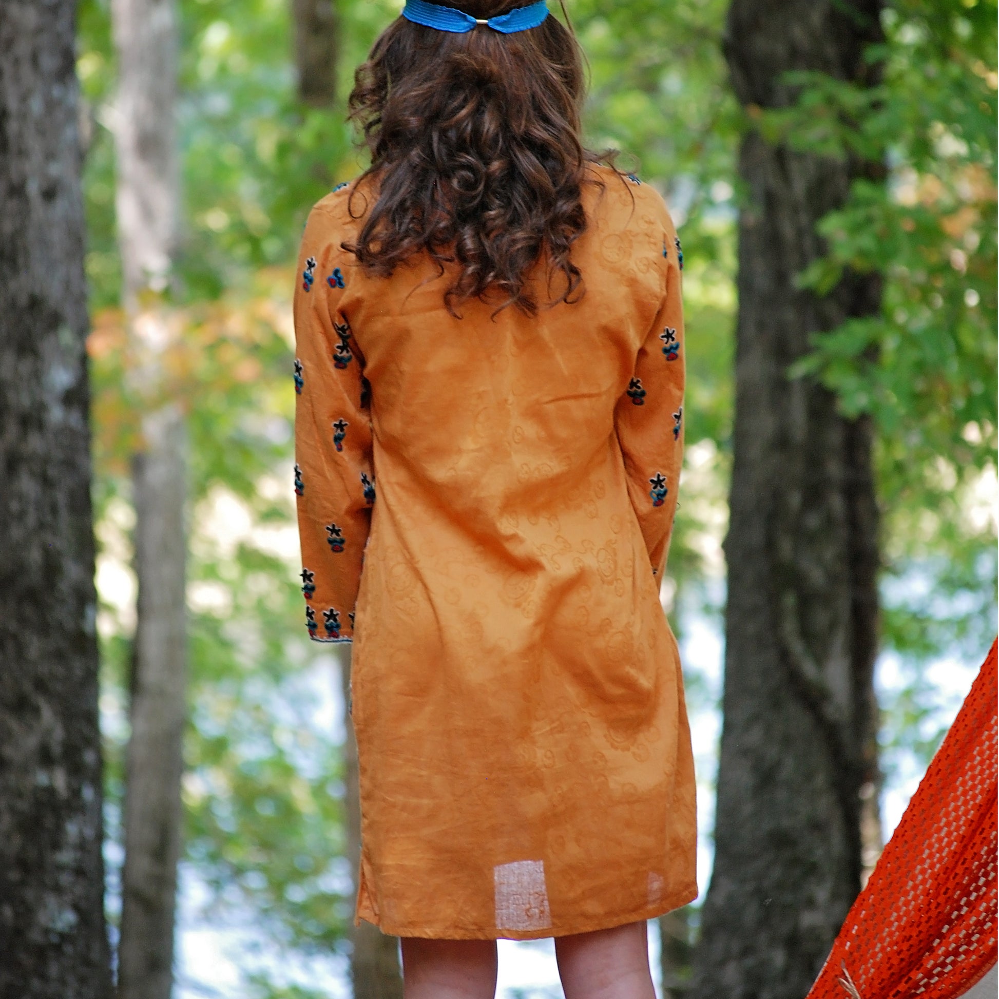 Vintage 80s Golden Embroidered Ethnic Tunic Mini Dress
