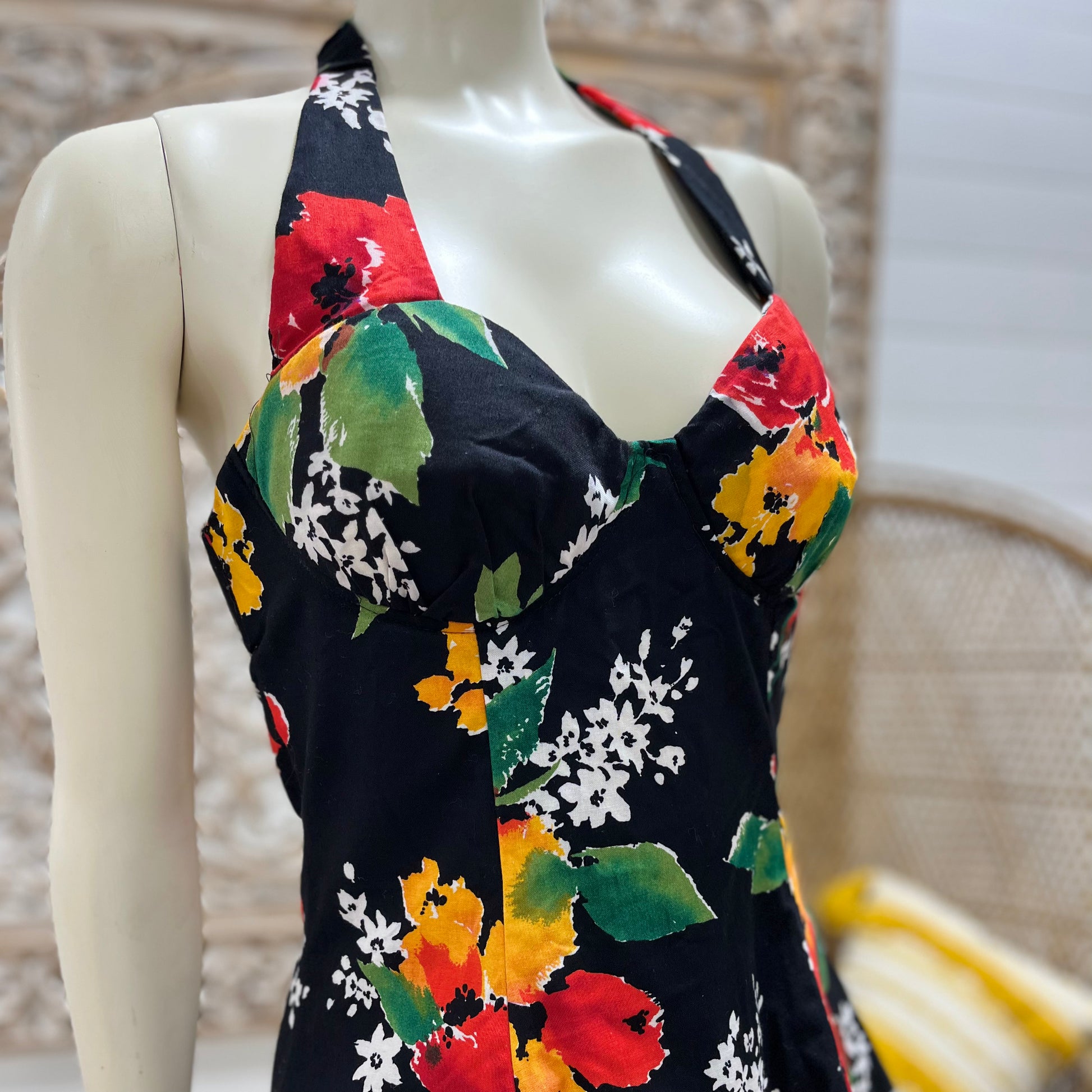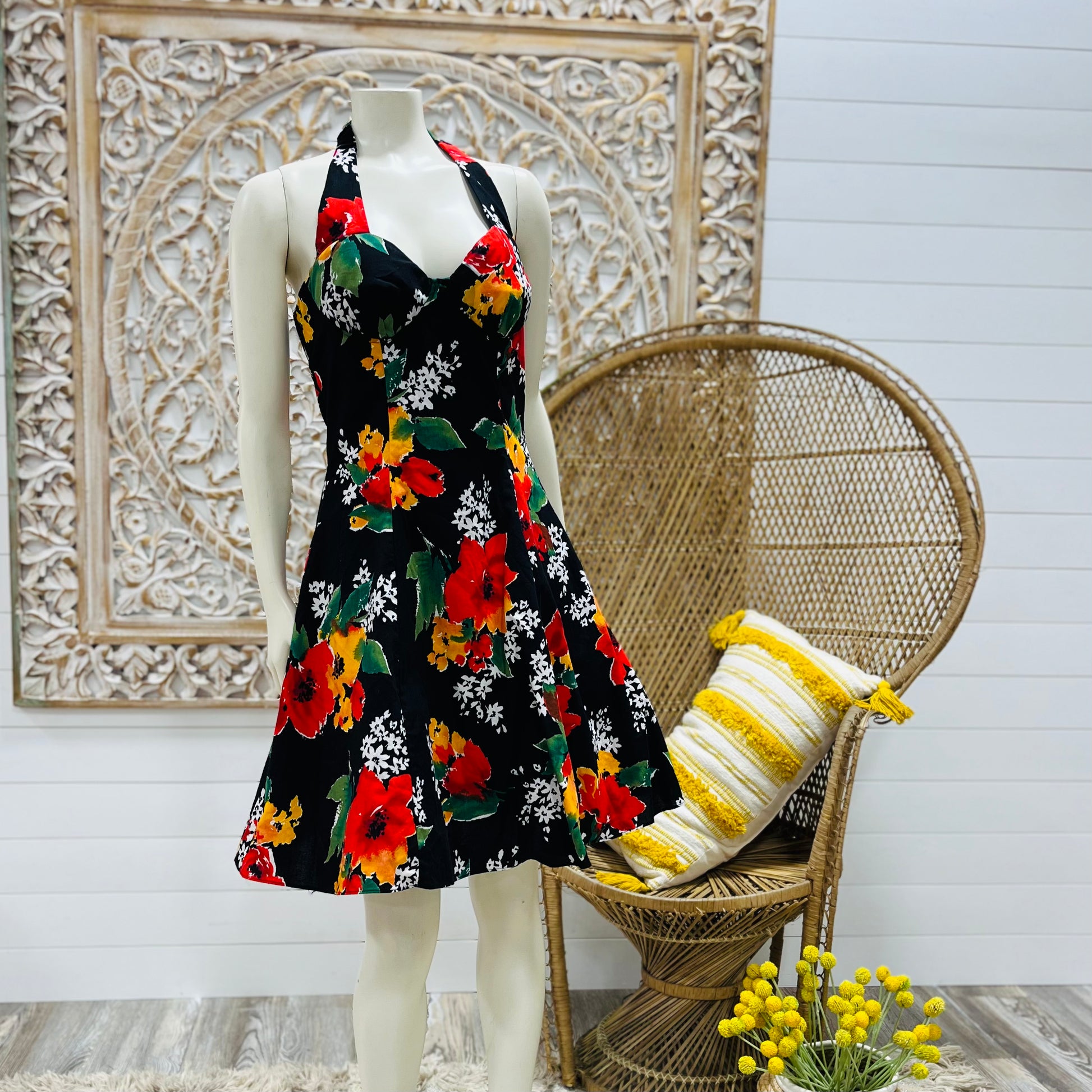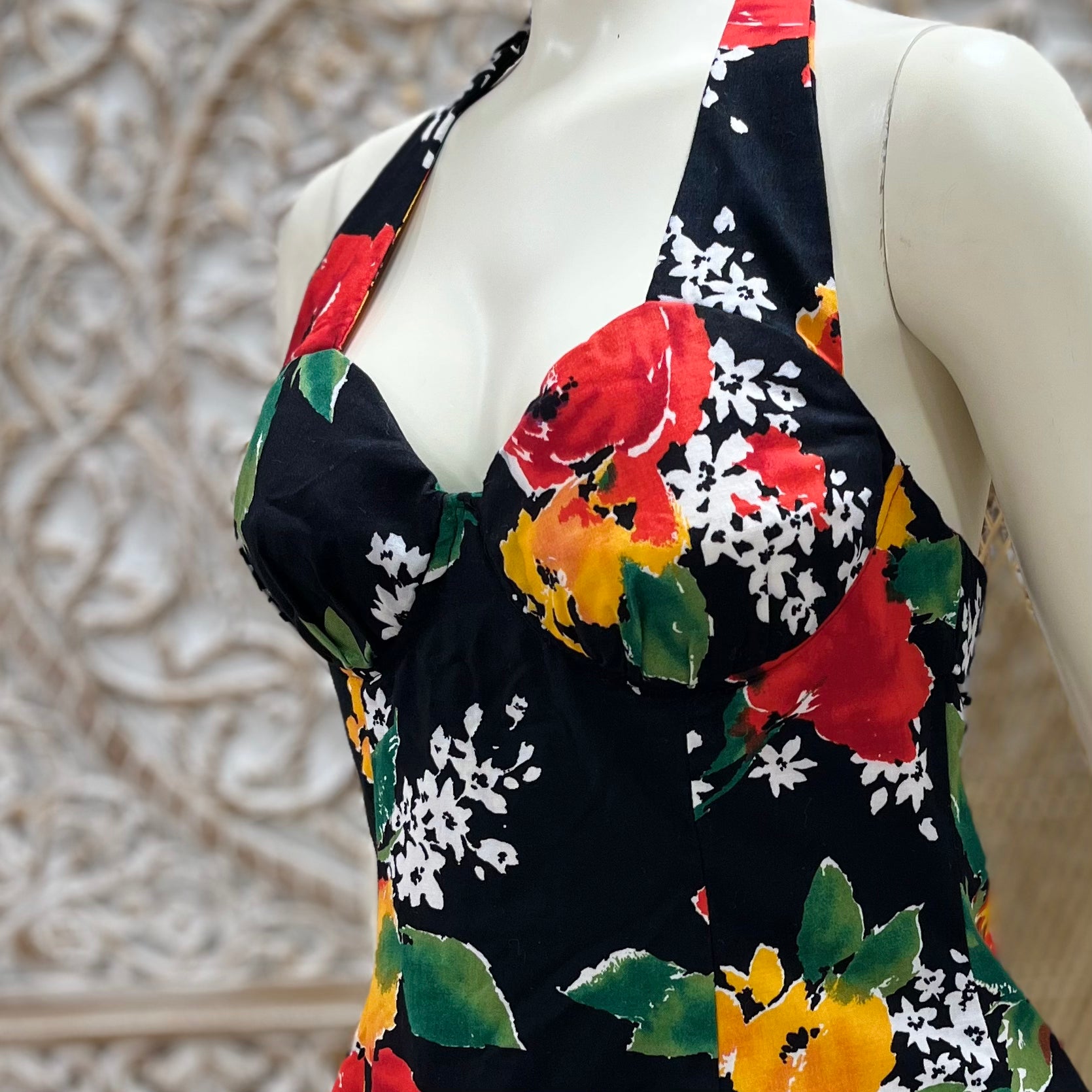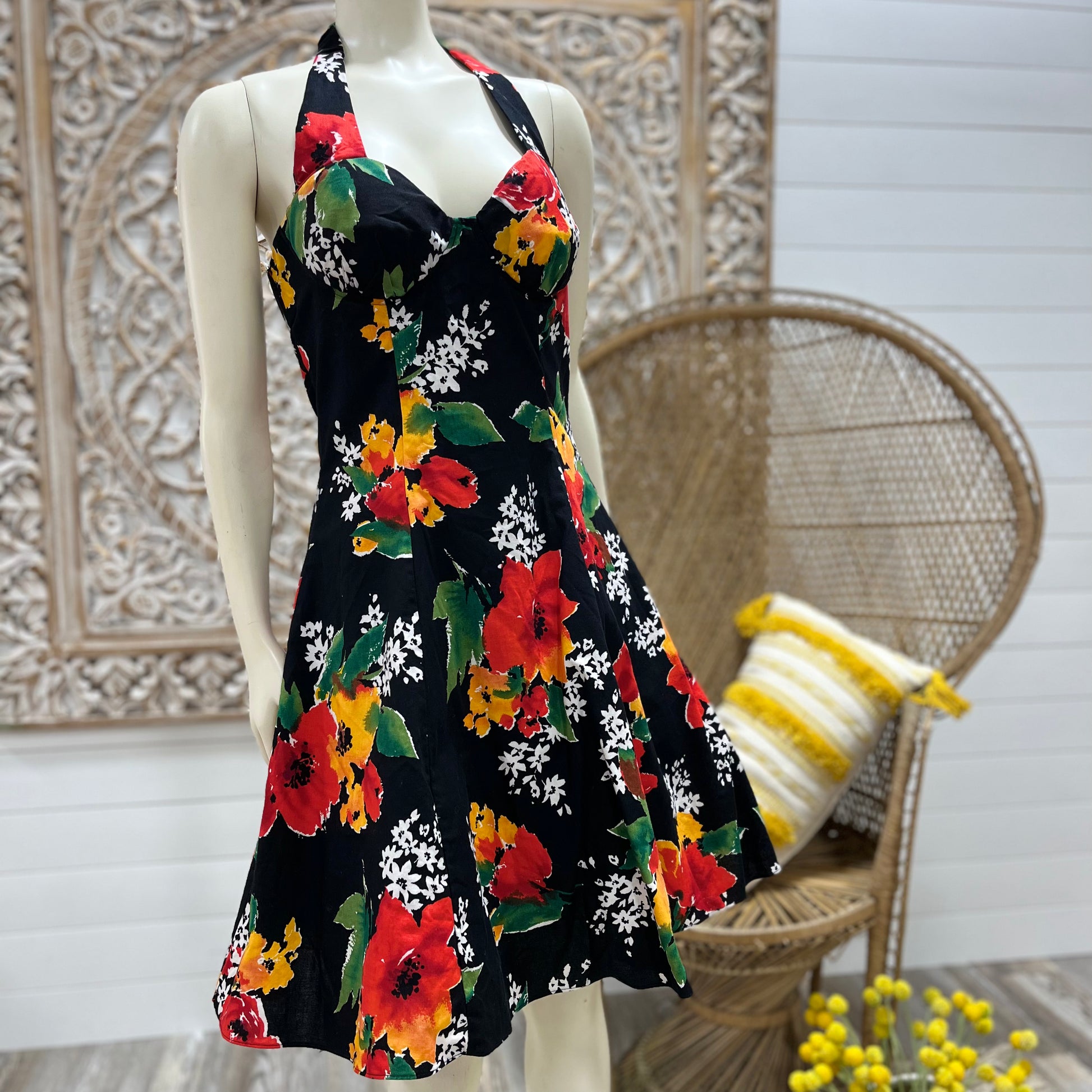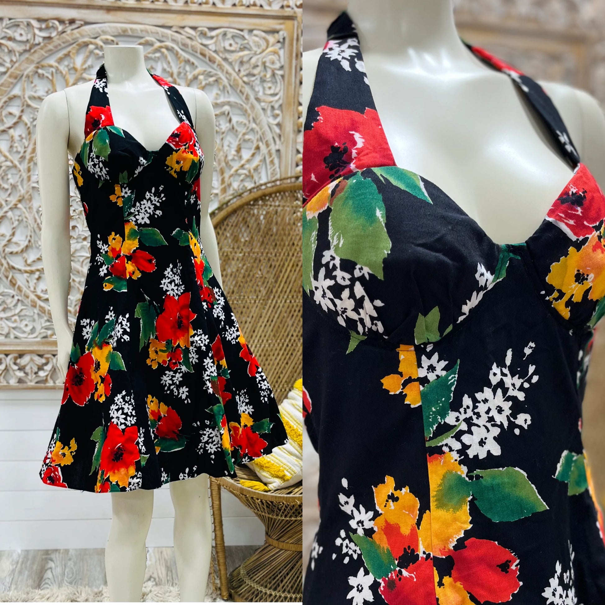 Vintage 80s does 50s Halter Floral Stand Out Mini Sun Dress M